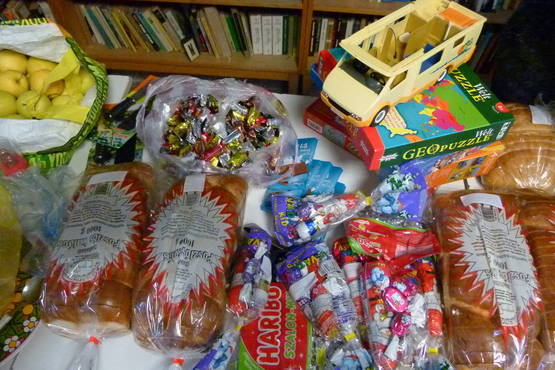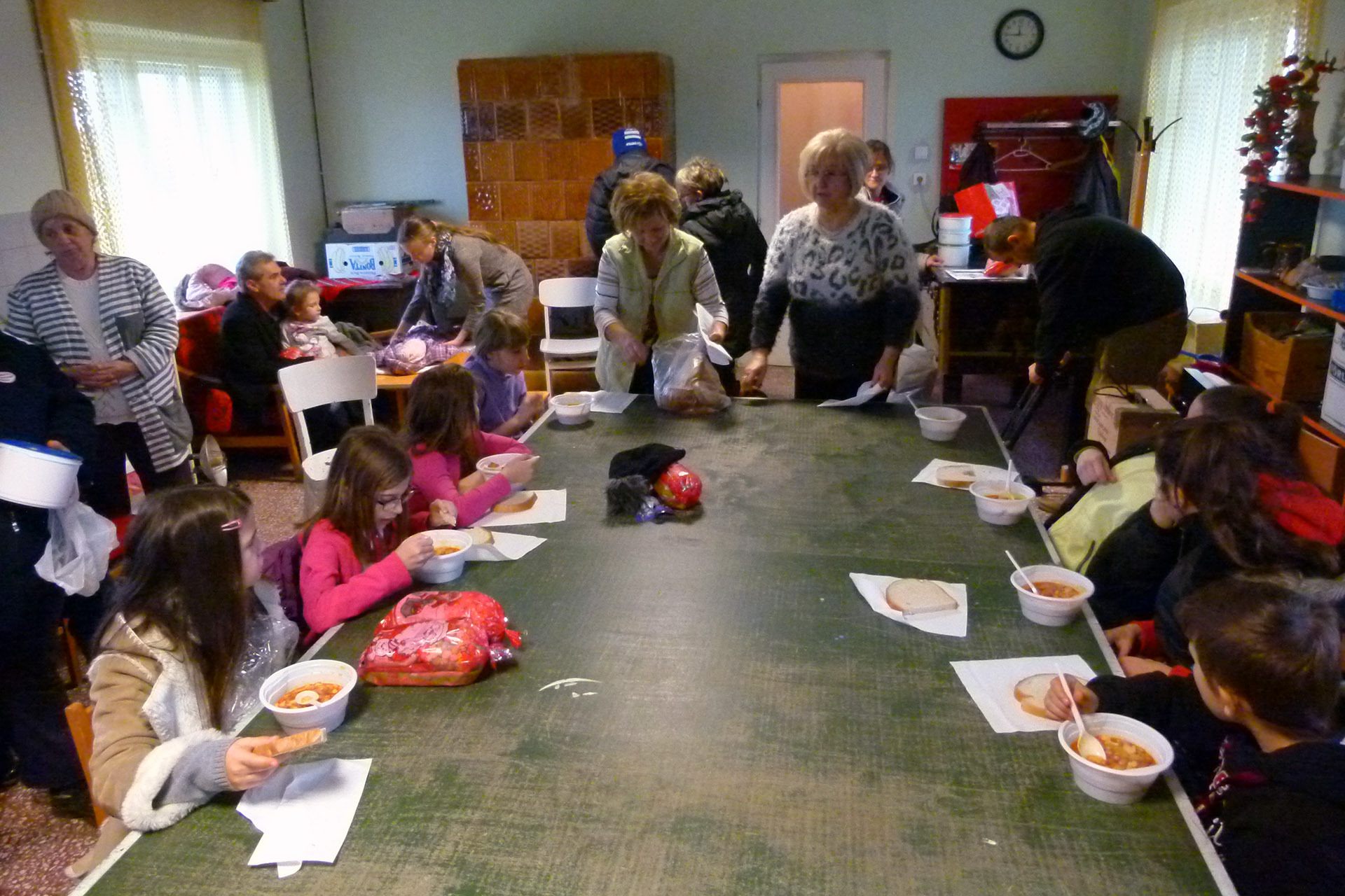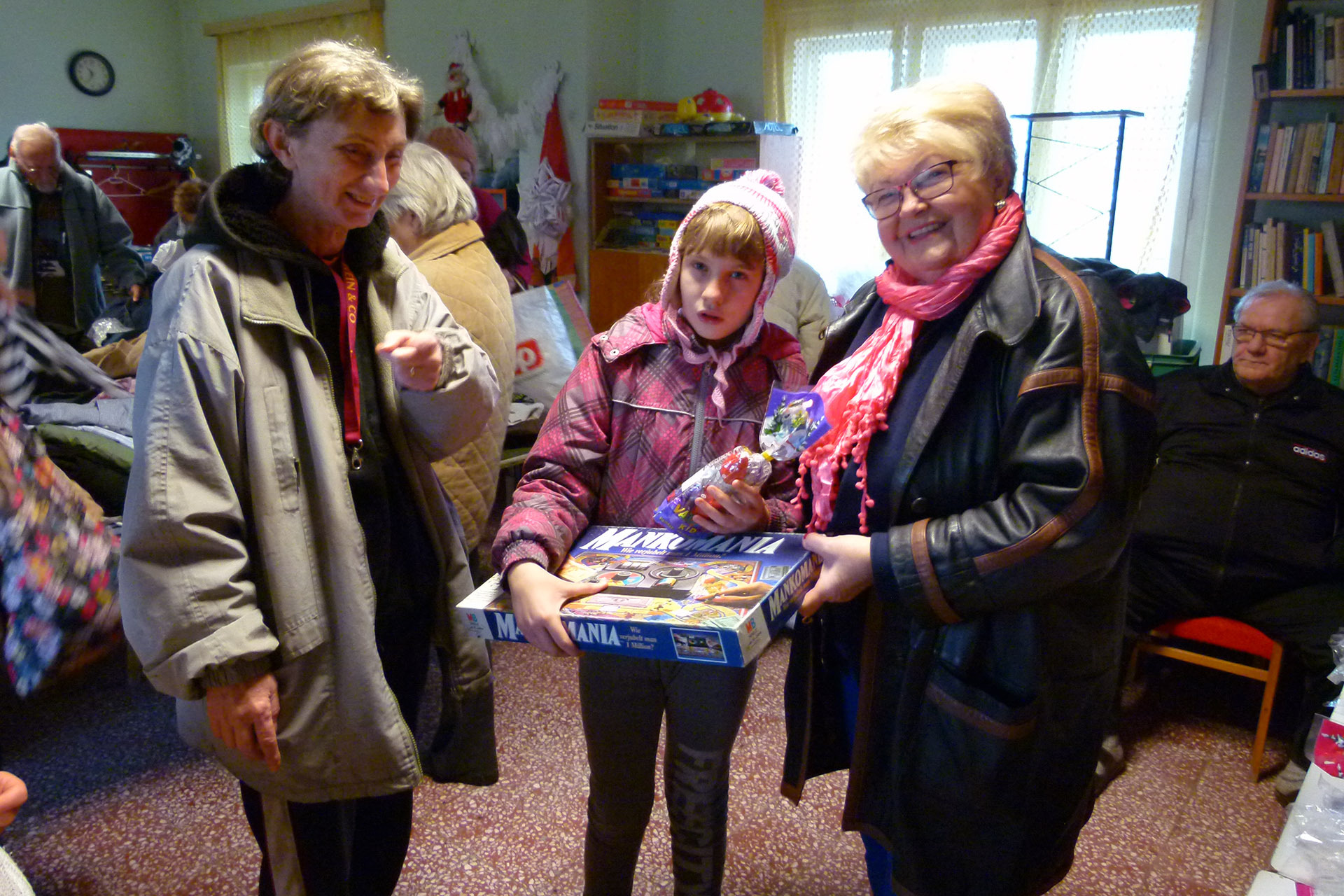 Elsőként Mikus Éva és lelkes csapata adta át adományait a megjelenteknek, akik a ruhákon túl gyümölcsöt és finom kalácsot vihettek haza. A gyermekek édességet, szaloncukrot, csomagot és játékokat vehettek át a mosolygós hölgyektől. A fiatalokat kisebb megmérettetés is várta, amelynek díjait Mikus Éva és Franz Köstner ajánlották fel.