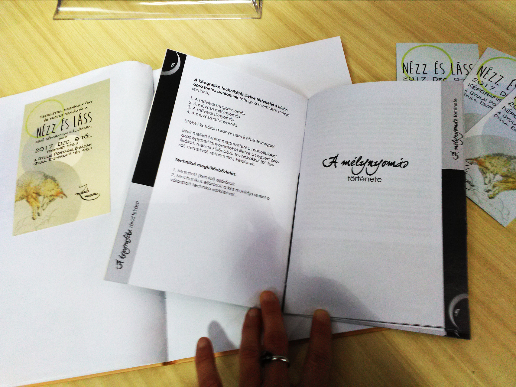 A postahivatal ügyfélfogadó terében Győri Erzsébet, Zsada egy tájékoztató jellegű publikációt is a látogatók figyelmébe ajánl: a kiadványban különböző grafikai eljárásokról olvashat az érdeklődő. Ugyanitt a művész elérhetőségei is megtalálhatók.