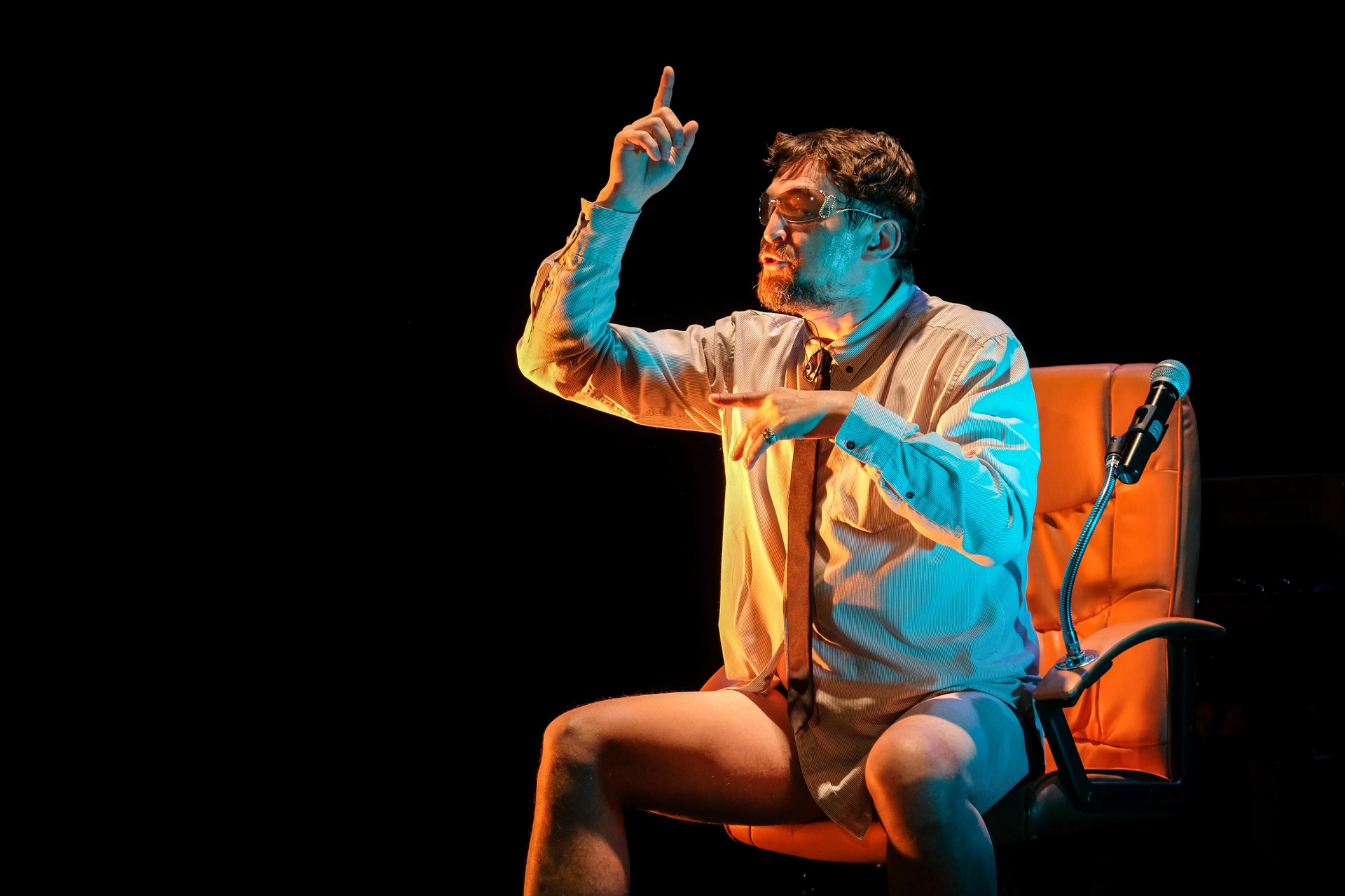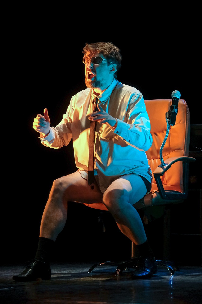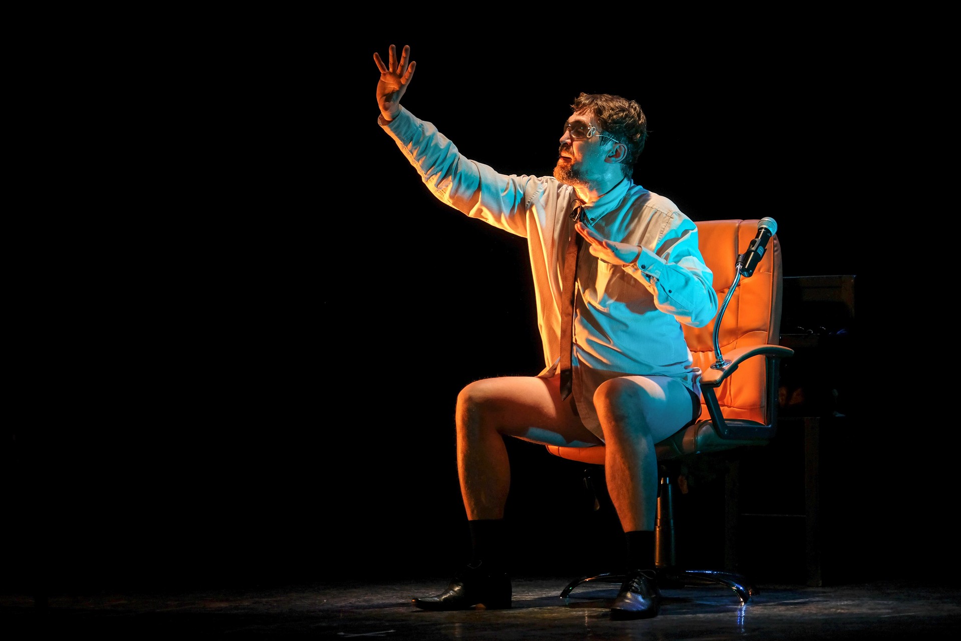 Az viszont kétségtelen, hogy a mai ifjúságot már semmivel sem lehet meglepni, sem belőni, sem kilőni, így azzal sem, ha a színház intézményében egyetlen szál bugyiban játsszák el neki a darabot. Ilyen tekintetben, mondhatnók, nemhogy újszerűen, inkább visszafogottan jelenítették meg előtte a 21. századi ember perlekedését, háborúskodását Istennel. Harsányi Attilát ugyanis nem csak fehérneműben nézegethettük egy teljes órán át. Volt még rajta egy ing is, meg egy zokni, meg egy nyakkendő, és időnként a napszemüvegét is felvette, hogy hitelesebb legyen az alakítása. Az Y generáció ezen jóízűen nevetett, az idősebb korosztály pedig nem tudta, mit kezdjen vele: méltányolja, kacagja ki, vagy inkább forduljon el.