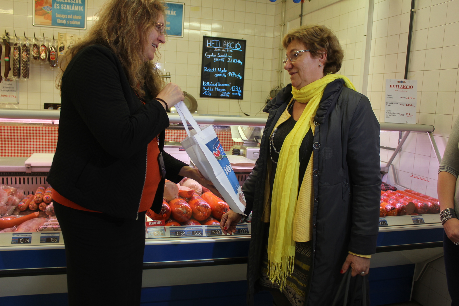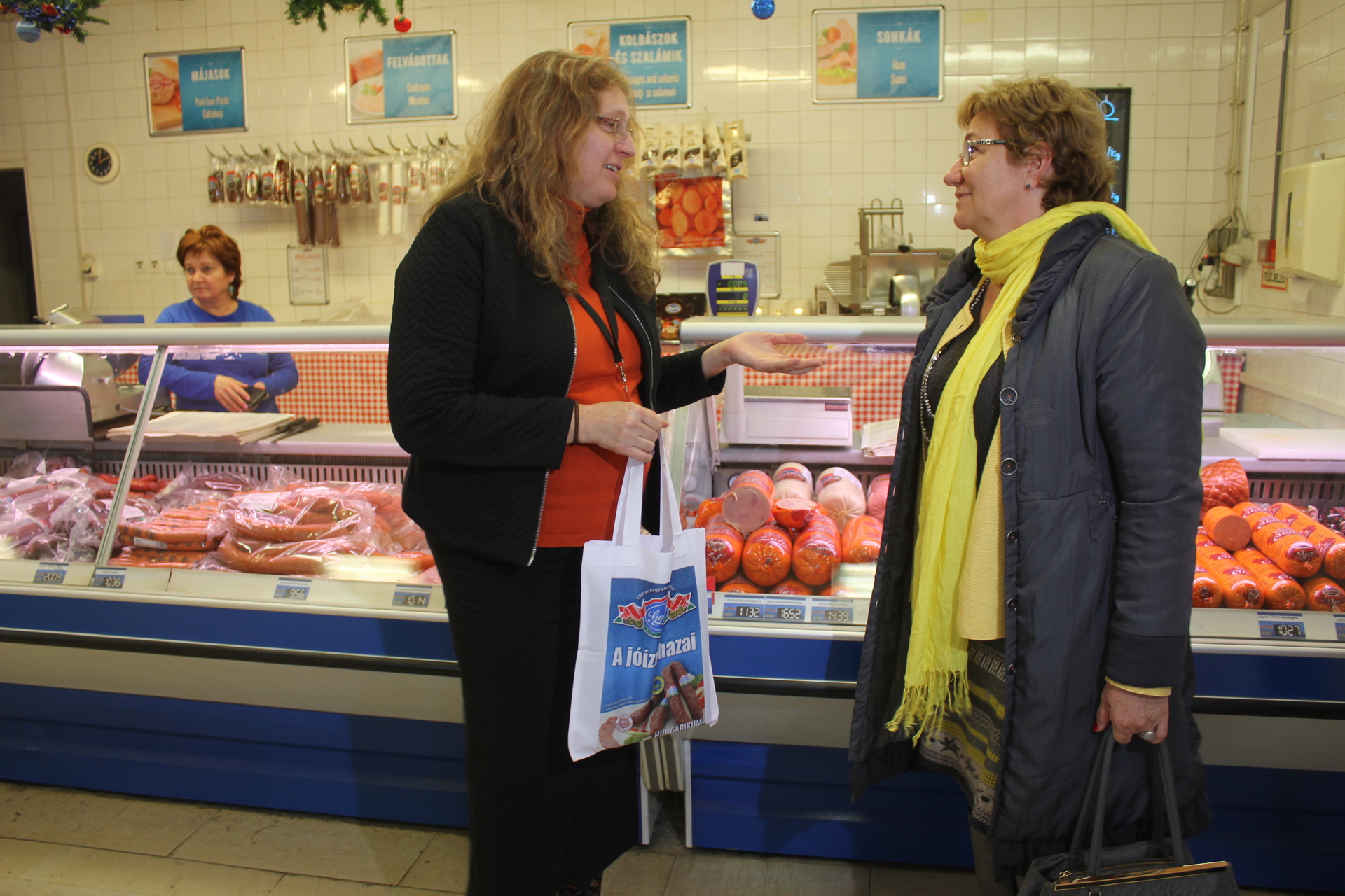 Ezúttal a Fáskerti Panzió kollektívája küldte a legtöbb látogatót az üzletbe, így őket hívták meg az Béke sugárúti boltba, és ajándékozták meg a Gyulai Kolbász Kódex csomaggal.