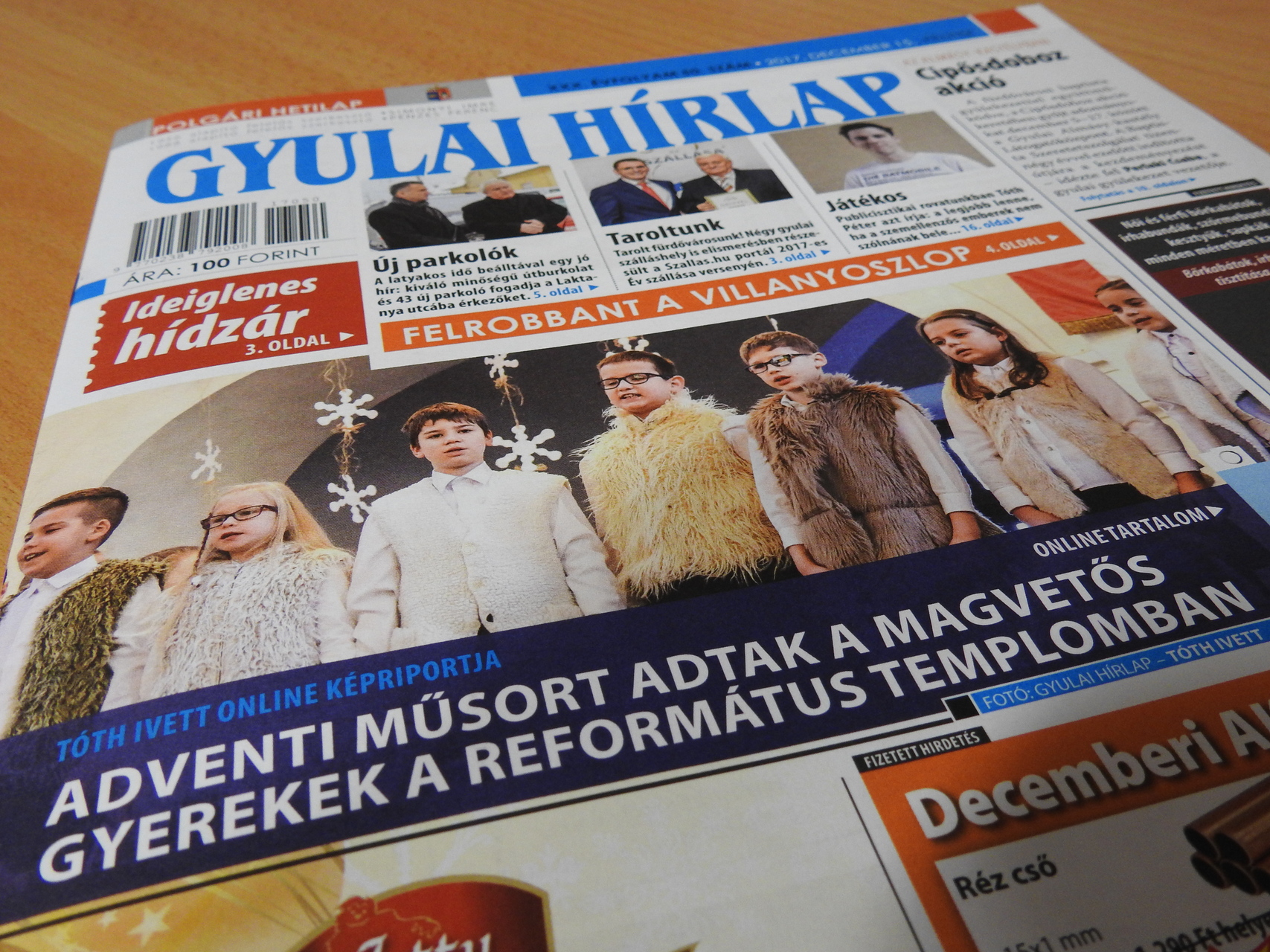 A Gyulai Hírlapot saját kézbesítőink viszik el az önök által megadott lakcímre hétről hétre. Előfizetőink már szerdán este kézbe vehetik és olvashatják a friss Gyulait! Az előfizetésnek más előnye is van, arról nem is beszélve, hogy előfizetve 33 forinttal olcsóbb egy lapszám. A Gyulai Hírlapra egy kerek esztendőre csupán 3500 forintért fizethet elő. Lapunk ajándéknak sem utolsó! Ha az előfizetéssel kapcsolatosan kérdése lenne, hívja Csepregi Brigittát a 06-30-627-6889-es számon.