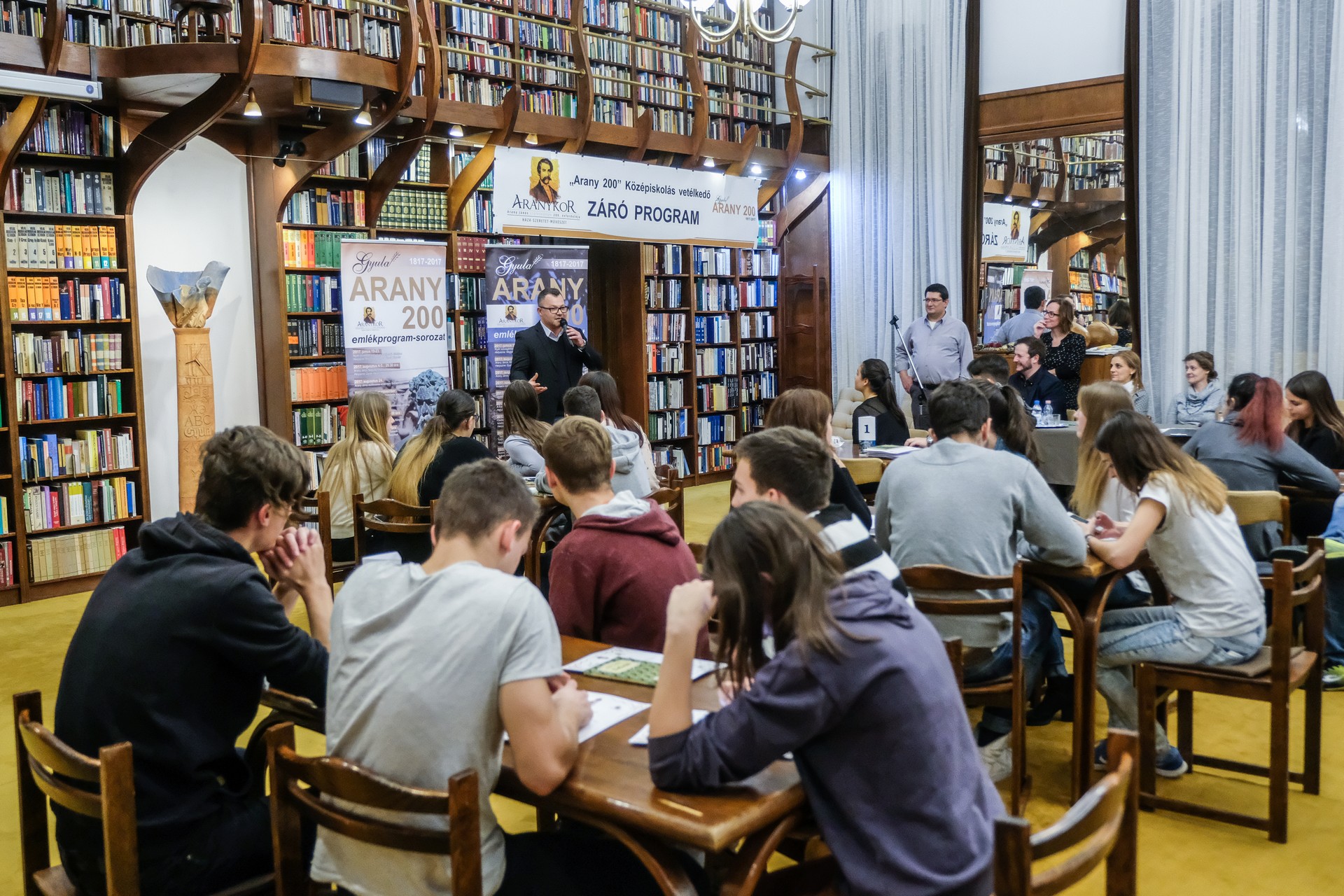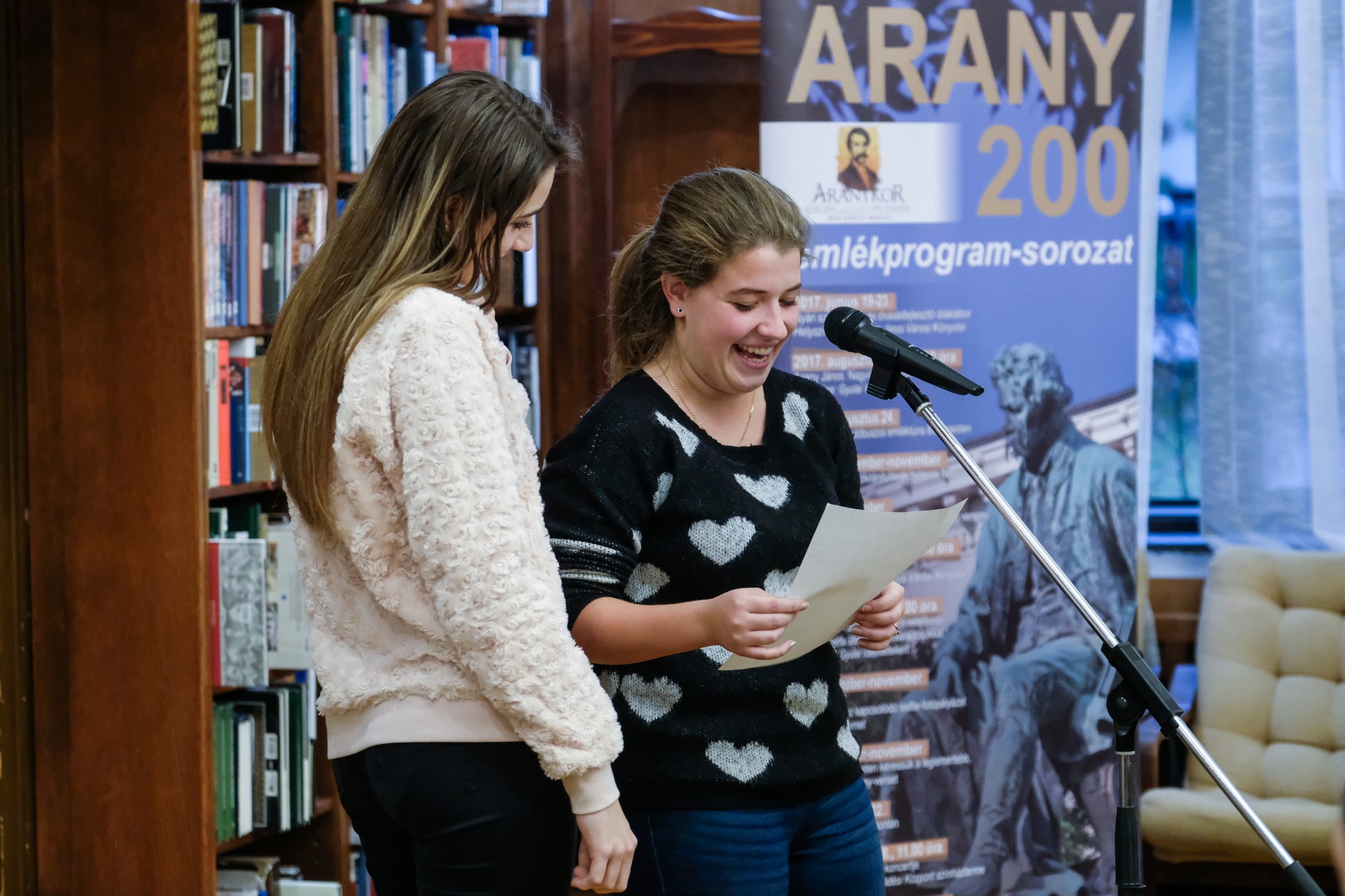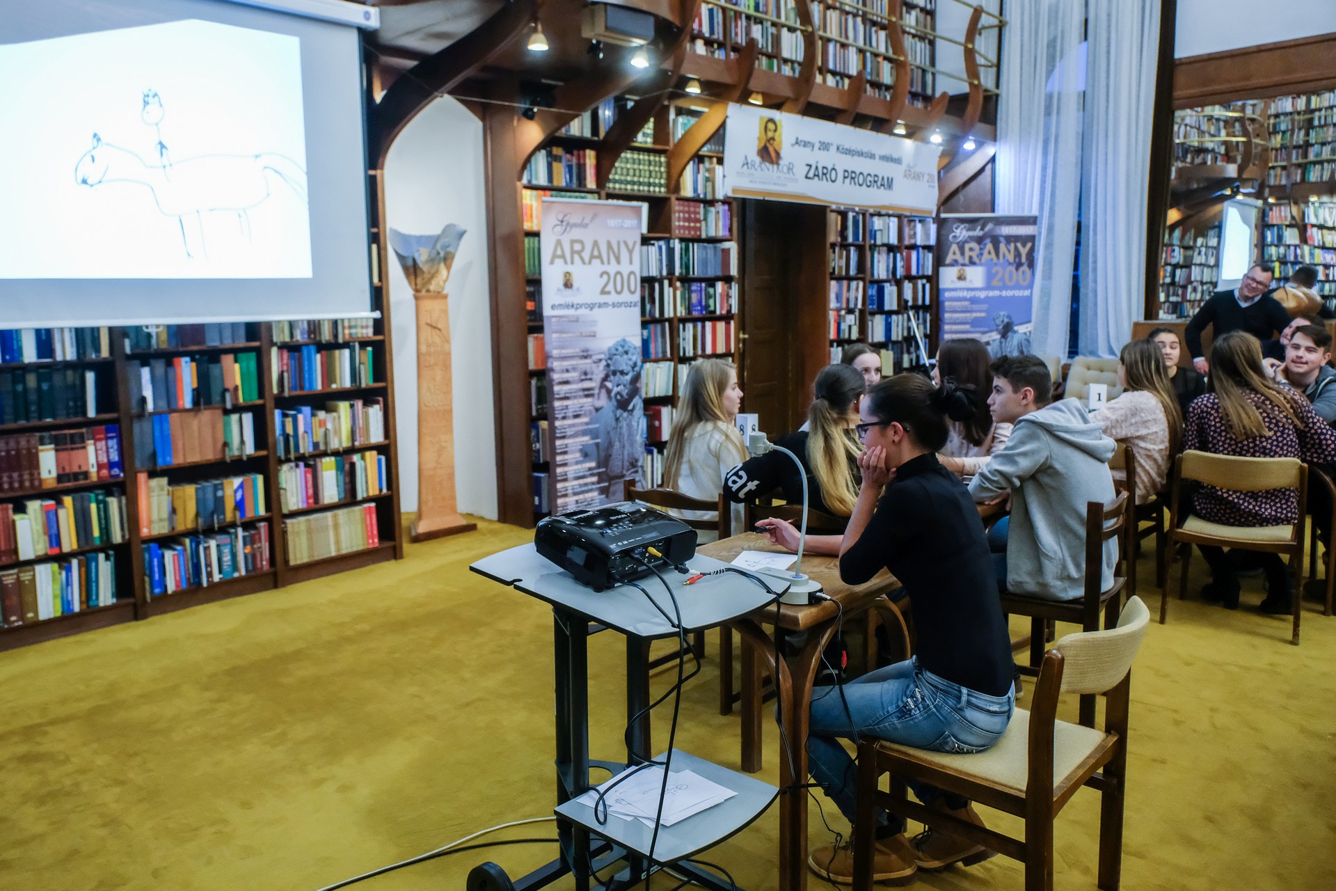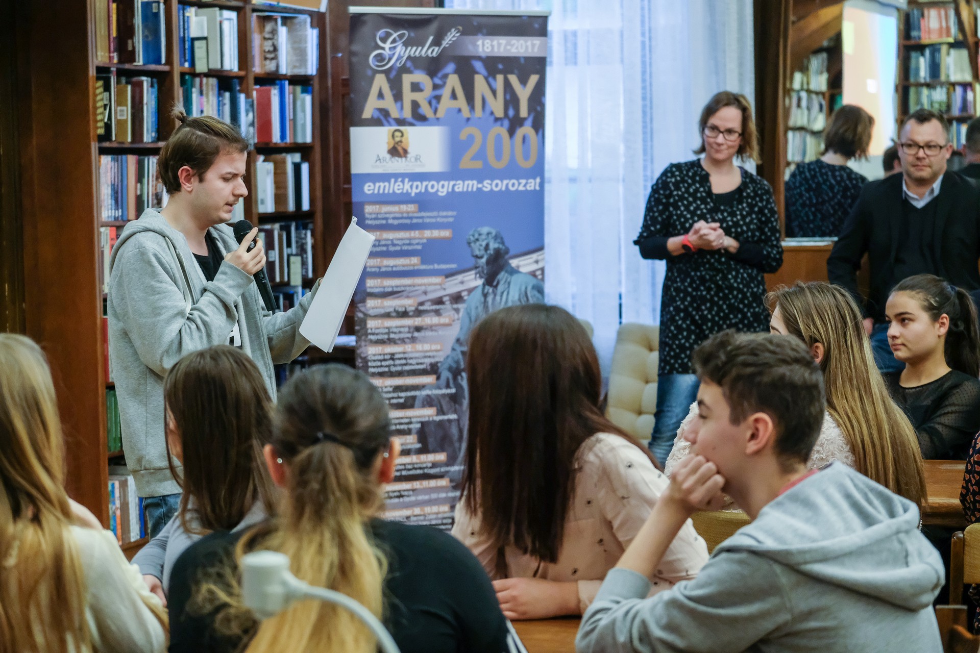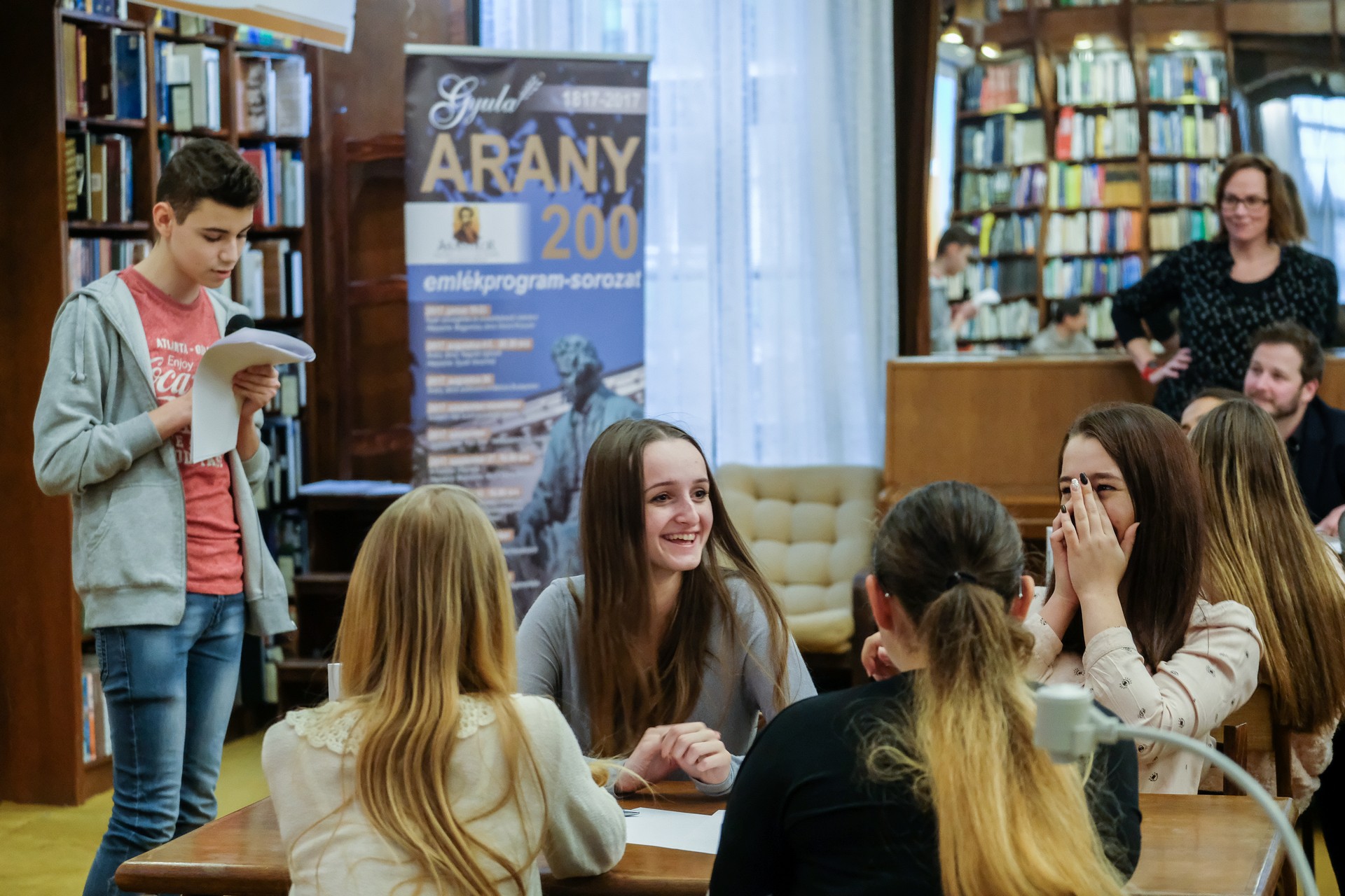 Dézsi János köszöntője után kezdetét vette az Arany János emlékére hirdetett vetélkedő, amelyen azok jártak jól, akik ügyesen tudtak improvizálni, a kreatív megoldásokban is jeleskedtek, és akár rappelni is hajlandók voltak. Schriffert-Tóth Eszter könyvtáros szórakoztató kihívásokat talált ki a fiataloknak, feladat volt például Arany János verseinek lerajzolása és a Fülemile című vers átírása különböző, ma népszerű stílusokra.