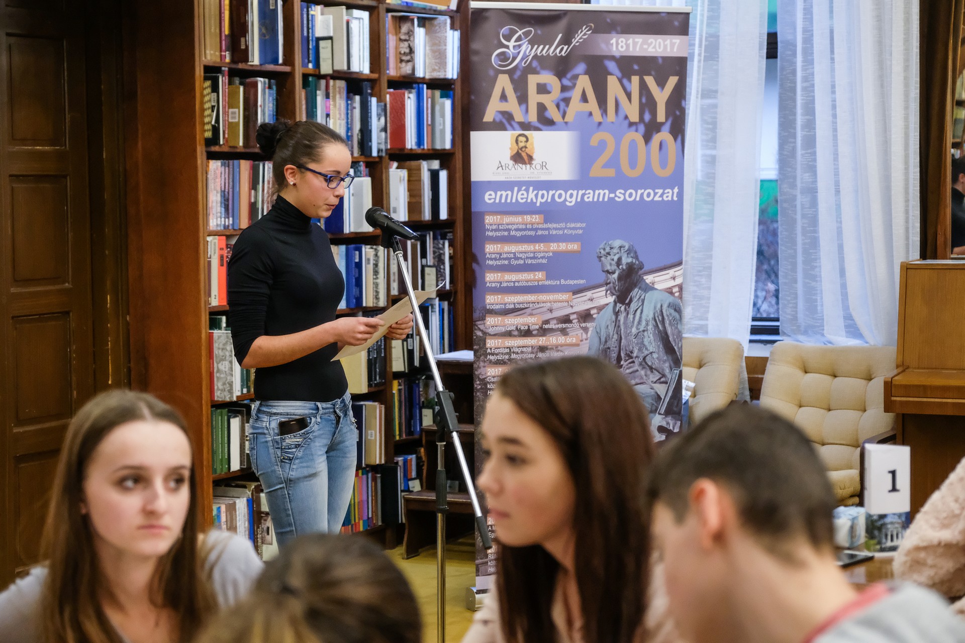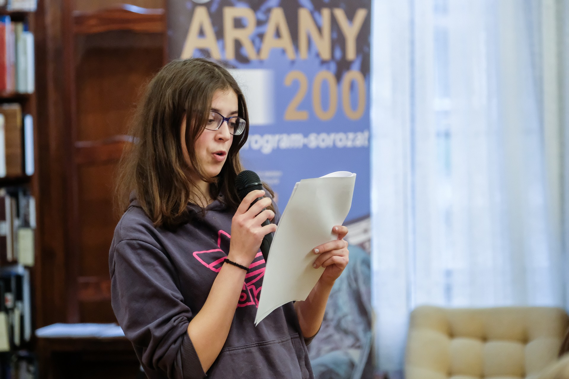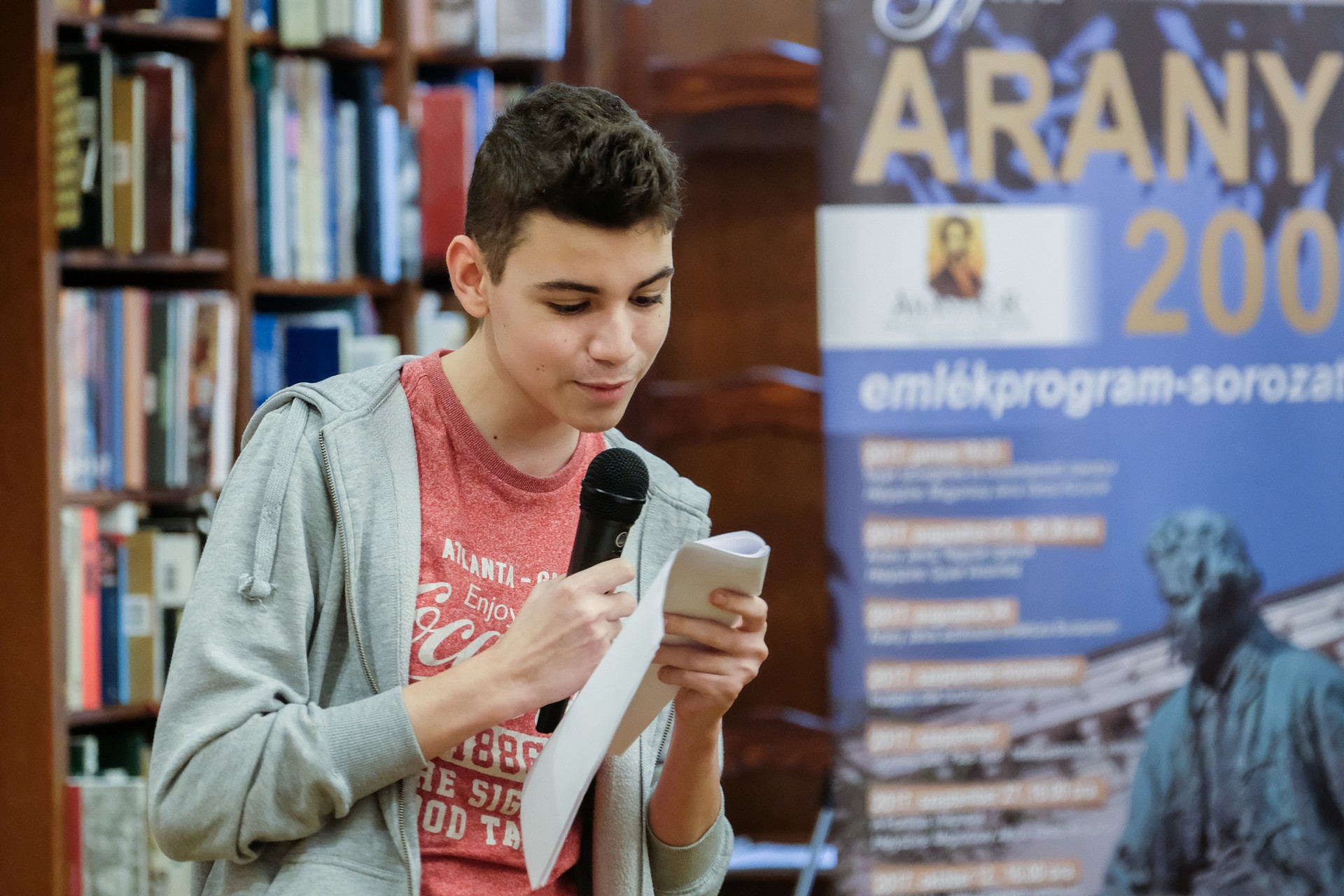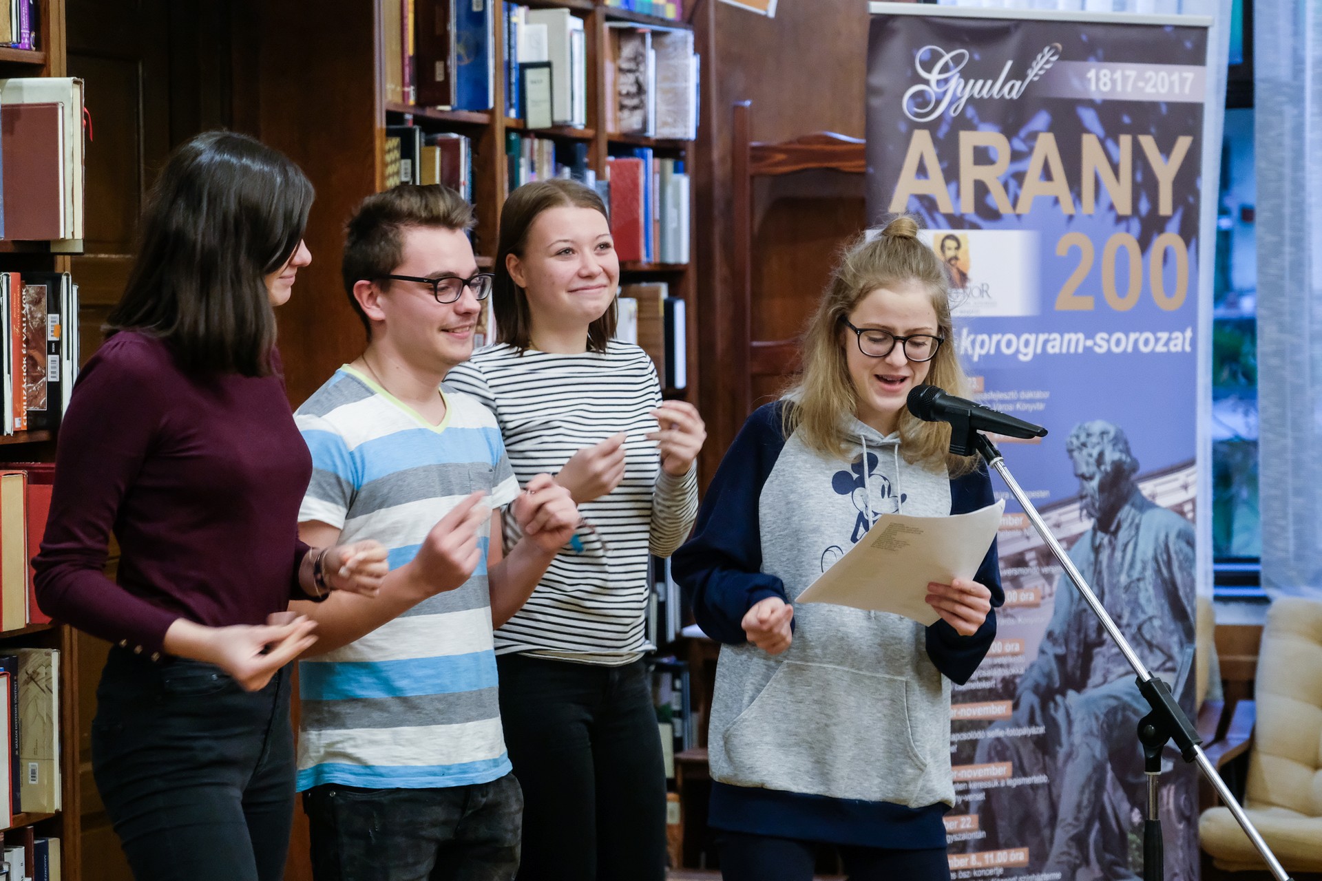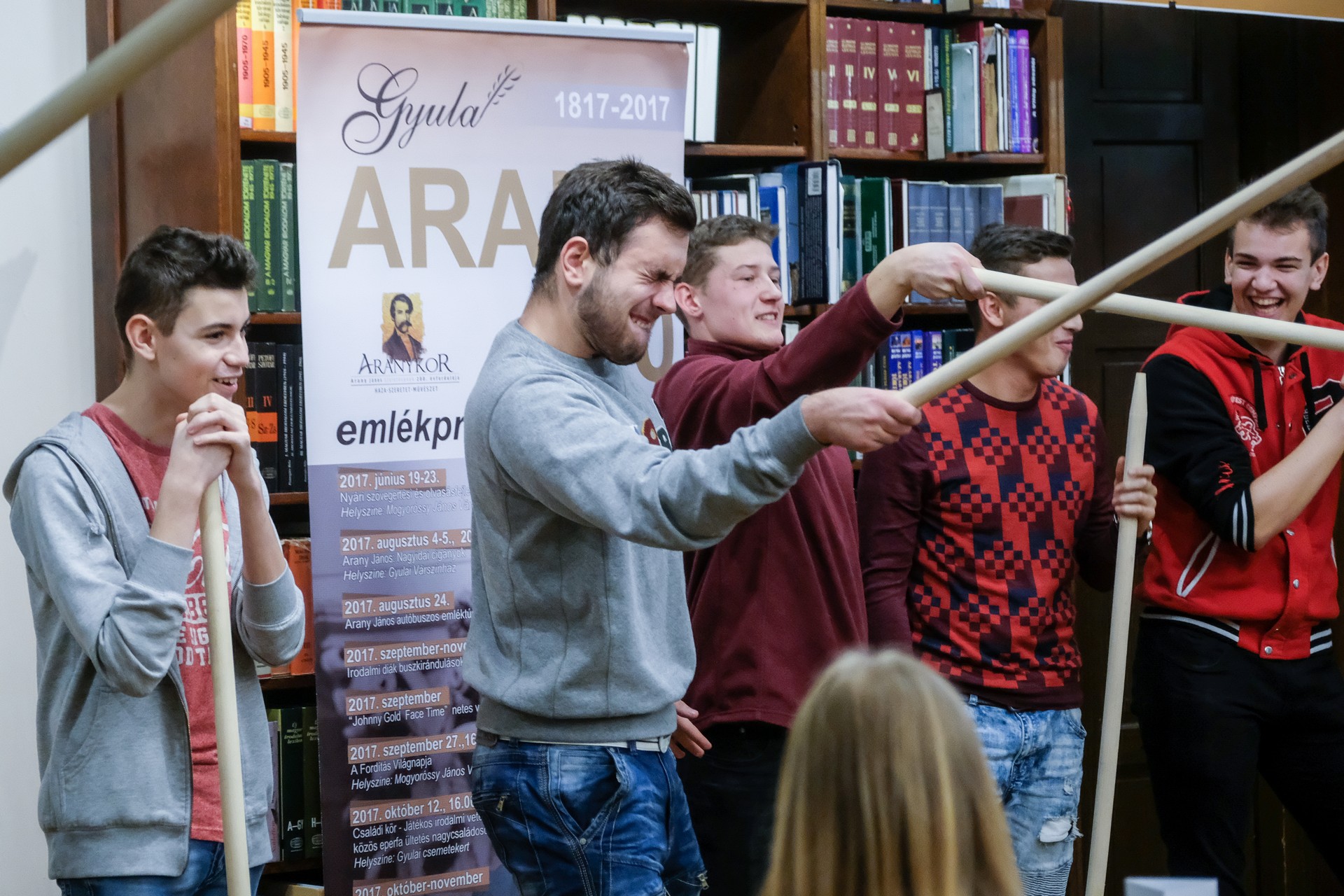 Dézsi János köszöntője után kezdetét vette az Arany János emlékére hirdetett vetélkedő, amelyen azok jártak jól, akik ügyesen tudtak improvizálni, a kreatív megoldásokban is jeleskedtek, és akár rappelni is hajlandók voltak. Schriffert-Tóth Eszter könyvtáros szórakoztató kihívásokat talált ki a fiataloknak, feladat volt például Arany János verseinek lerajzolása és a Fülemile című vers átírása különböző, ma népszerű stílusokra.