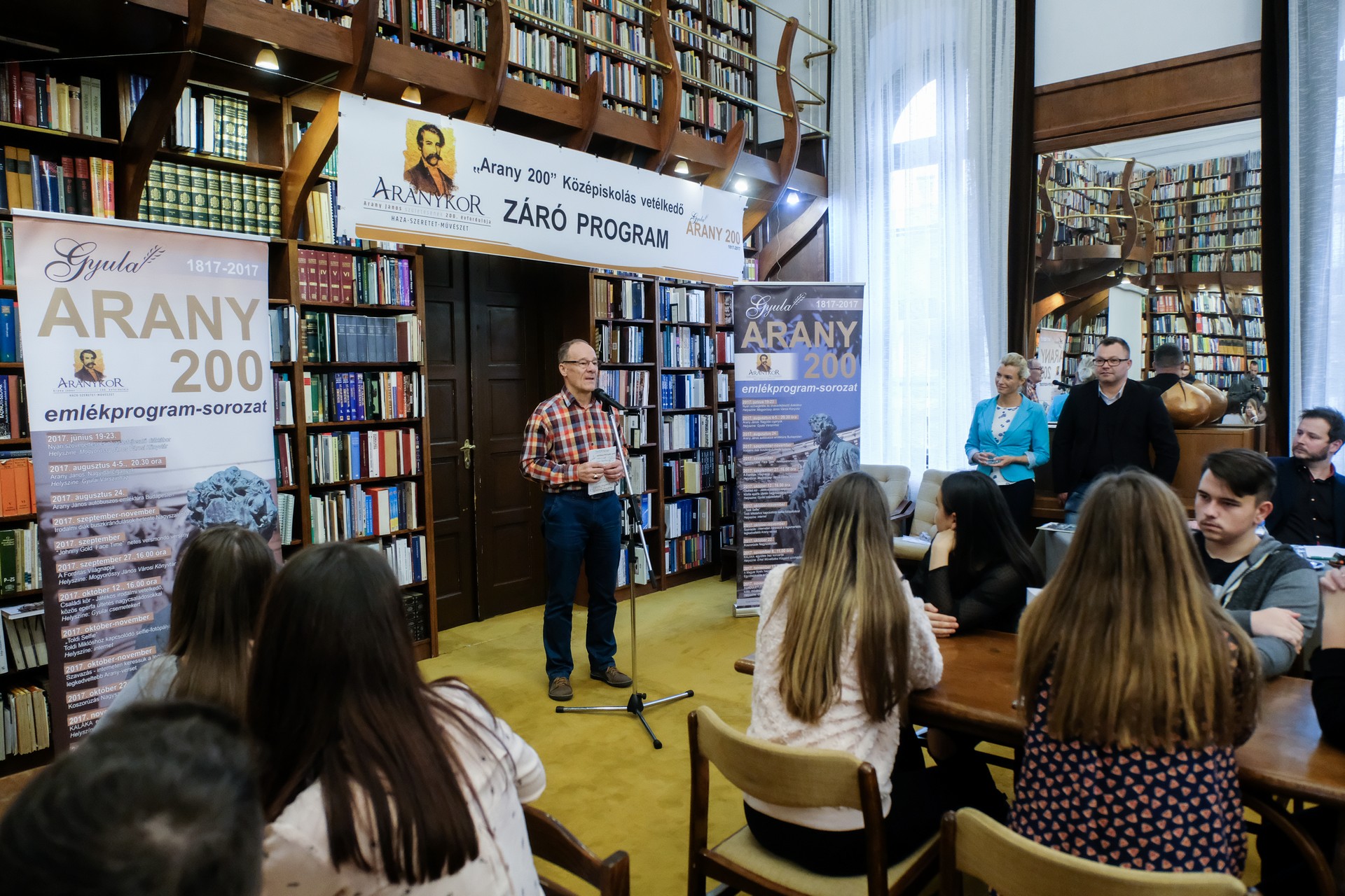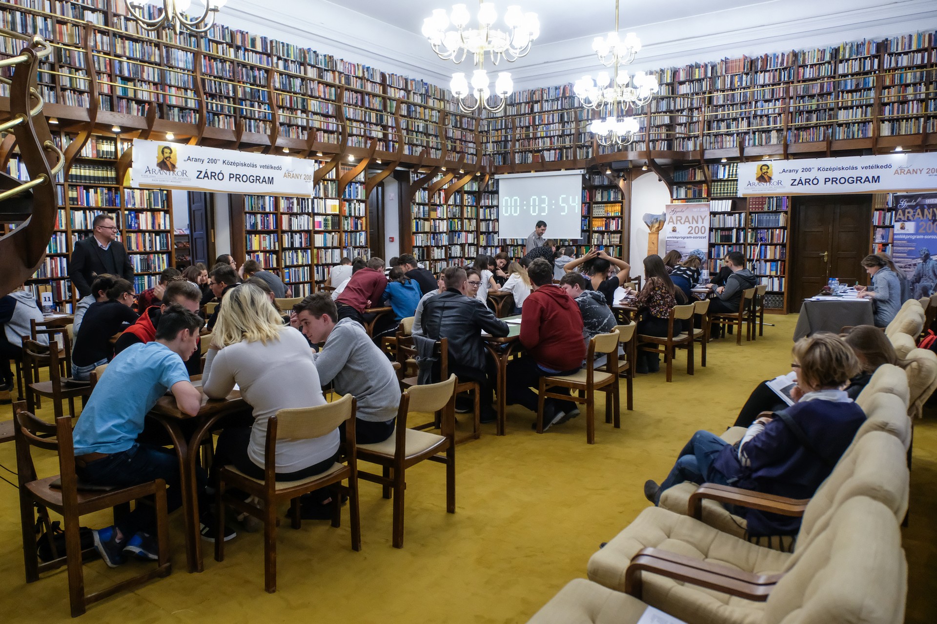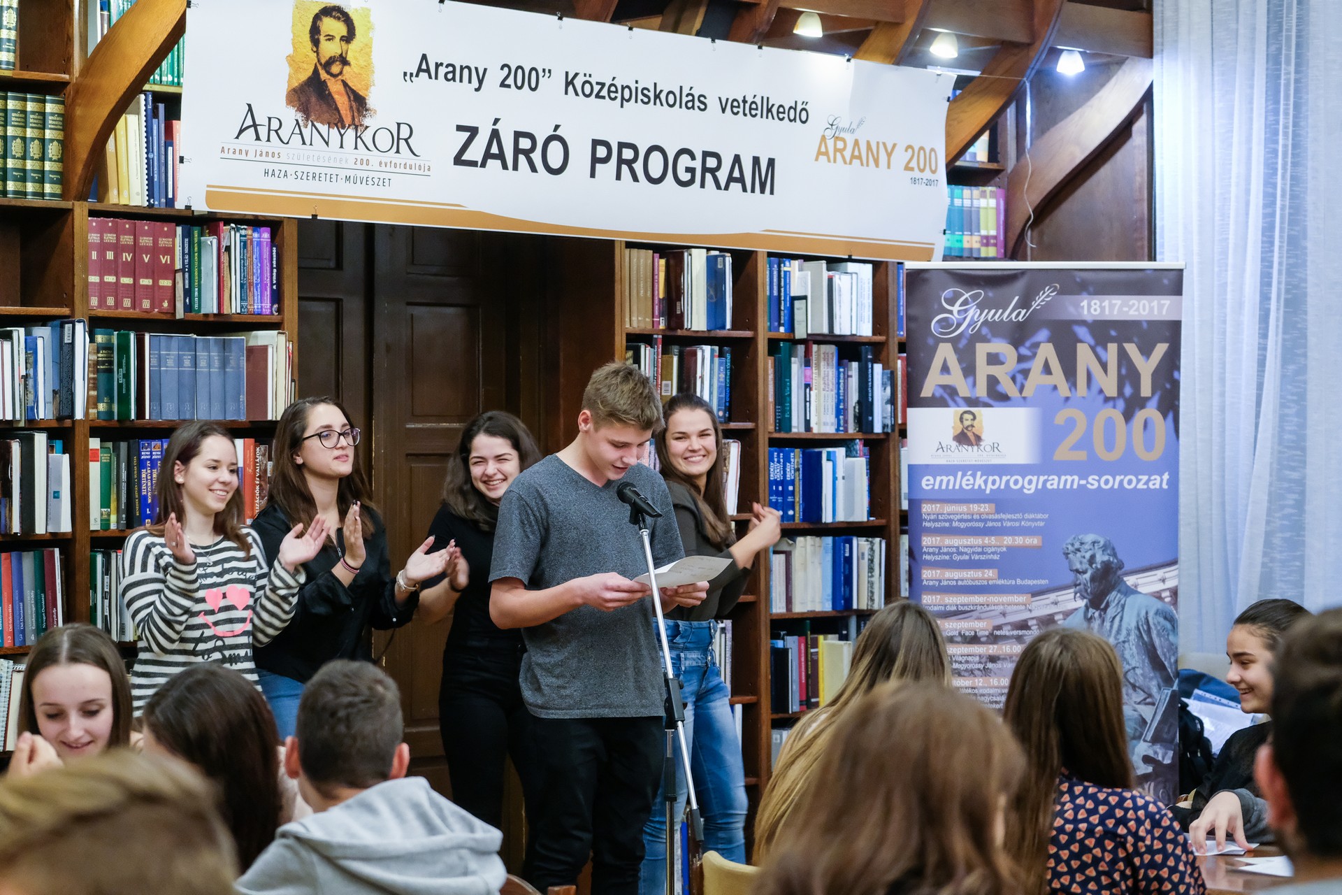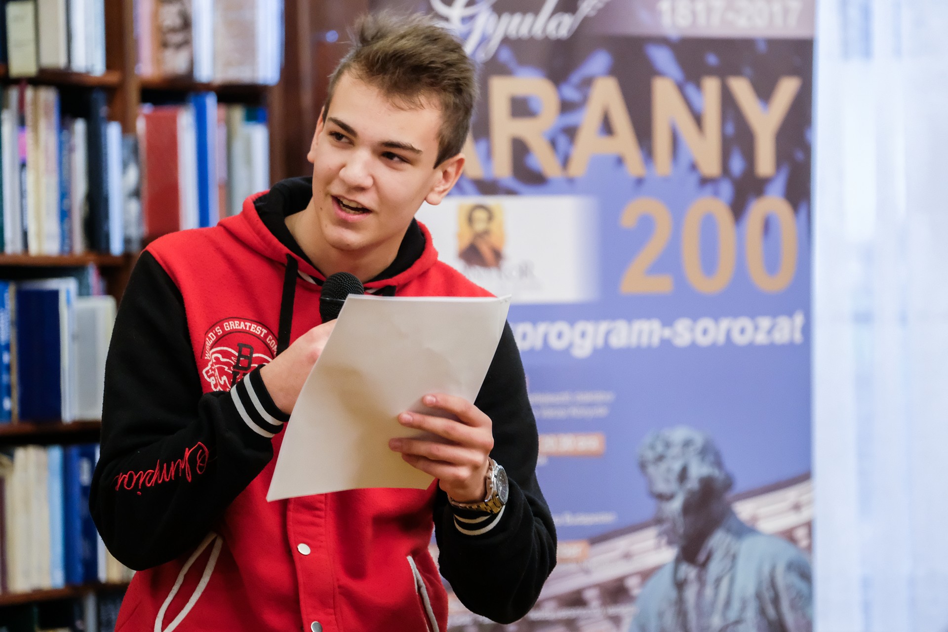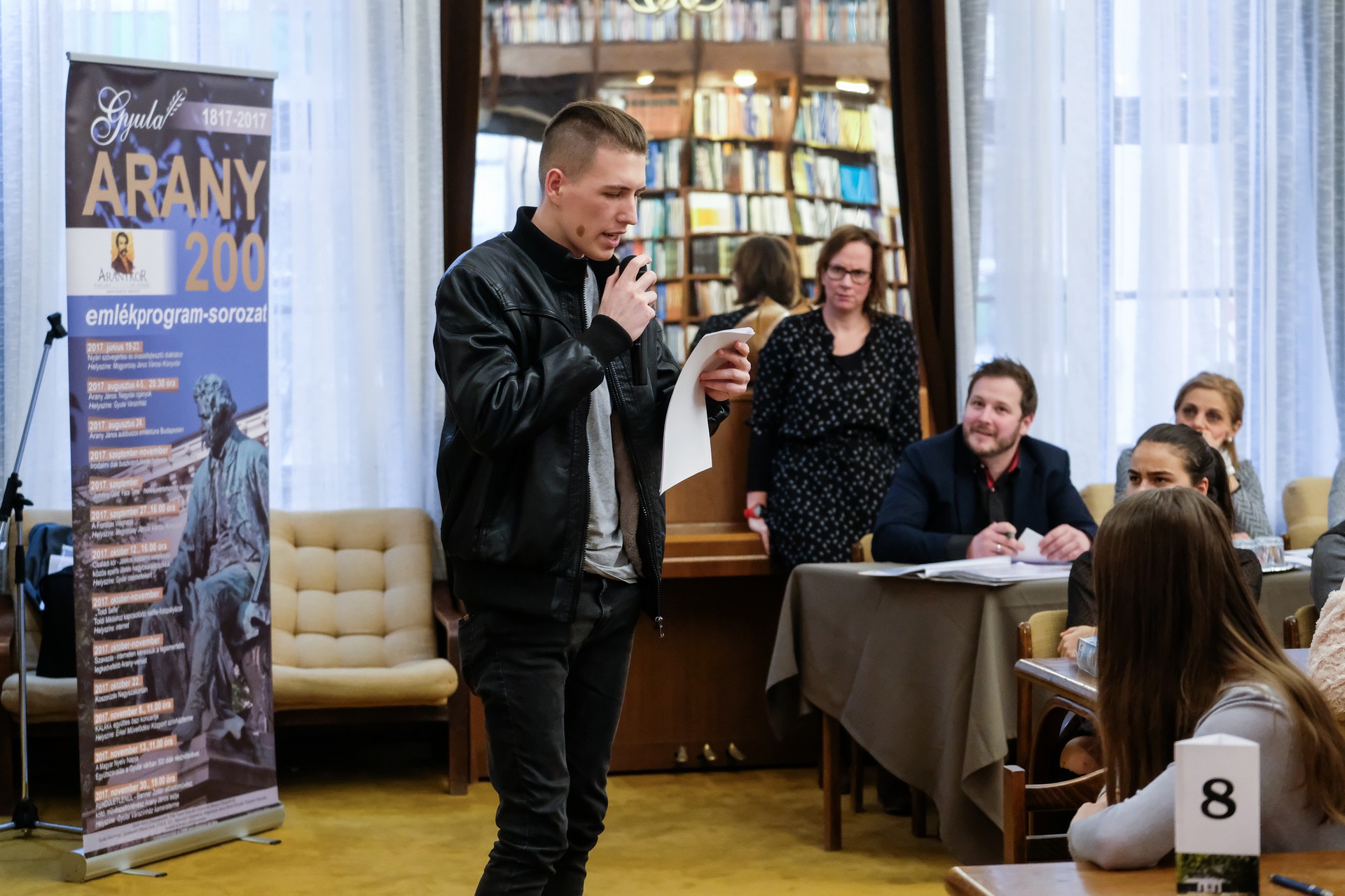 Dézsi János köszöntője után kezdetét vette az Arany János emlékére hirdetett vetélkedő, amelyen azok jártak jól, akik ügyesen tudtak improvizálni, a kreatív megoldásokban is jeleskedtek, és akár rappelni is hajlandók voltak. Schriffert-Tóth Eszter könyvtáros szórakoztató kihívásokat talált ki a fiataloknak, feladat volt például Arany János verseinek lerajzolása és a Fülemile című vers átírása különböző, ma népszerű stílusokra.