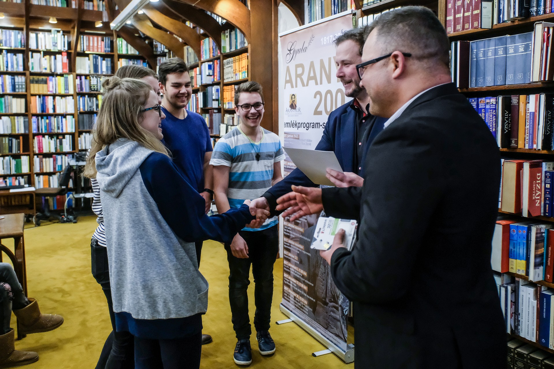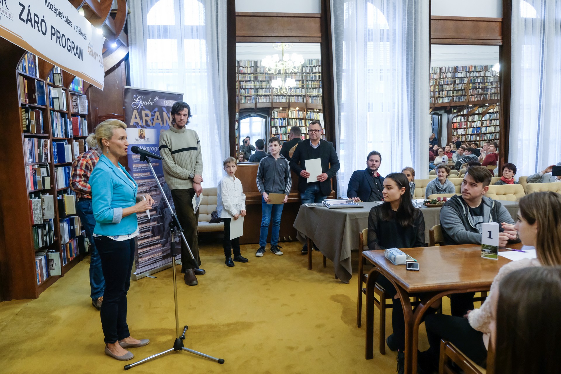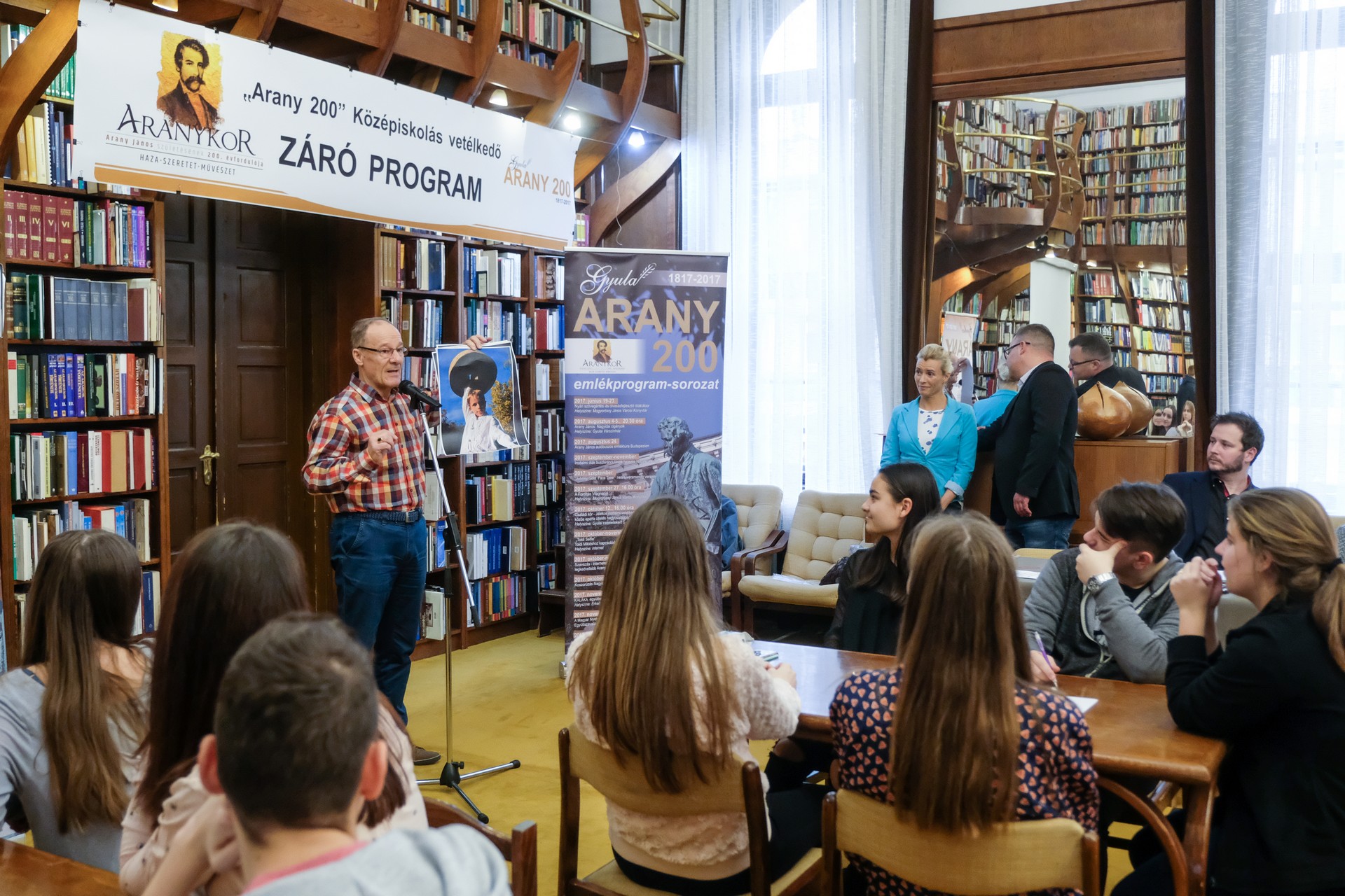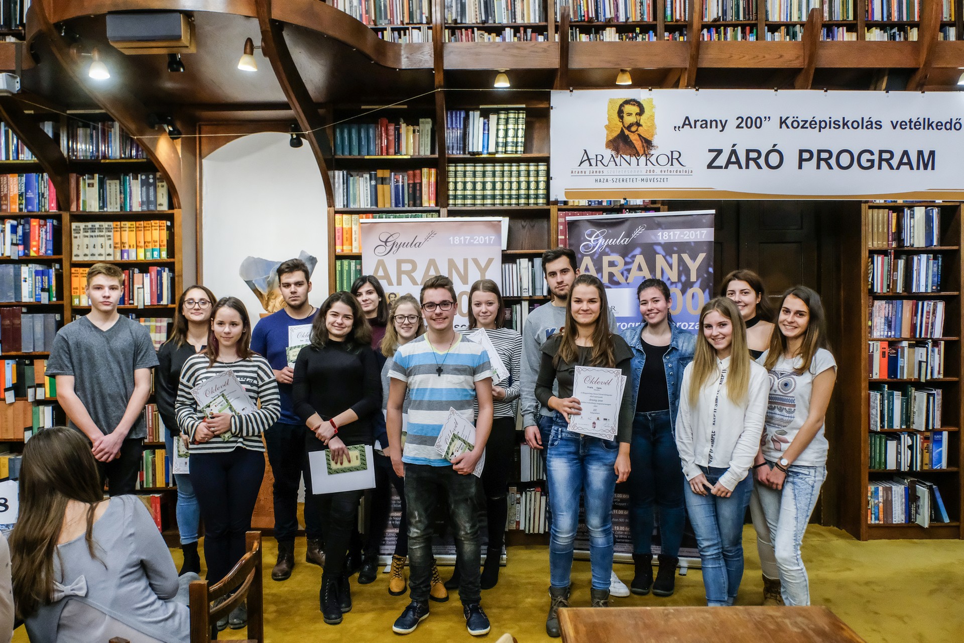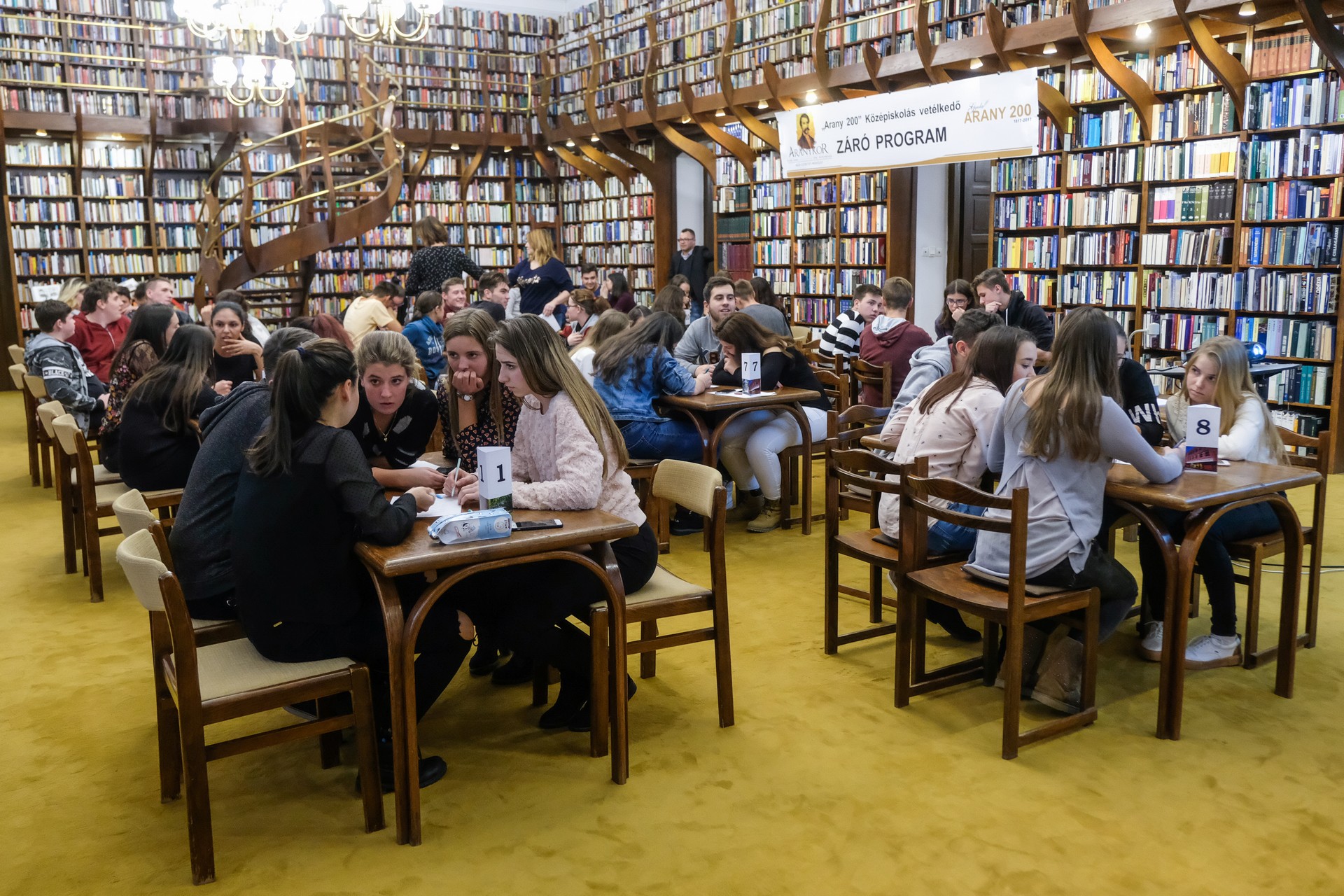 Dézsi János köszöntője után kezdetét vette az Arany János emlékére hirdetett vetélkedő, amelyen azok jártak jól, akik ügyesen tudtak improvizálni, a kreatív megoldásokban is jeleskedtek, és akár rappelni is hajlandók voltak. Schriffert-Tóth Eszter könyvtáros szórakoztató kihívásokat talált ki a fiataloknak, feladat volt például Arany János verseinek lerajzolása és a Fülemile című vers átírása különböző, ma népszerű stílusokra.