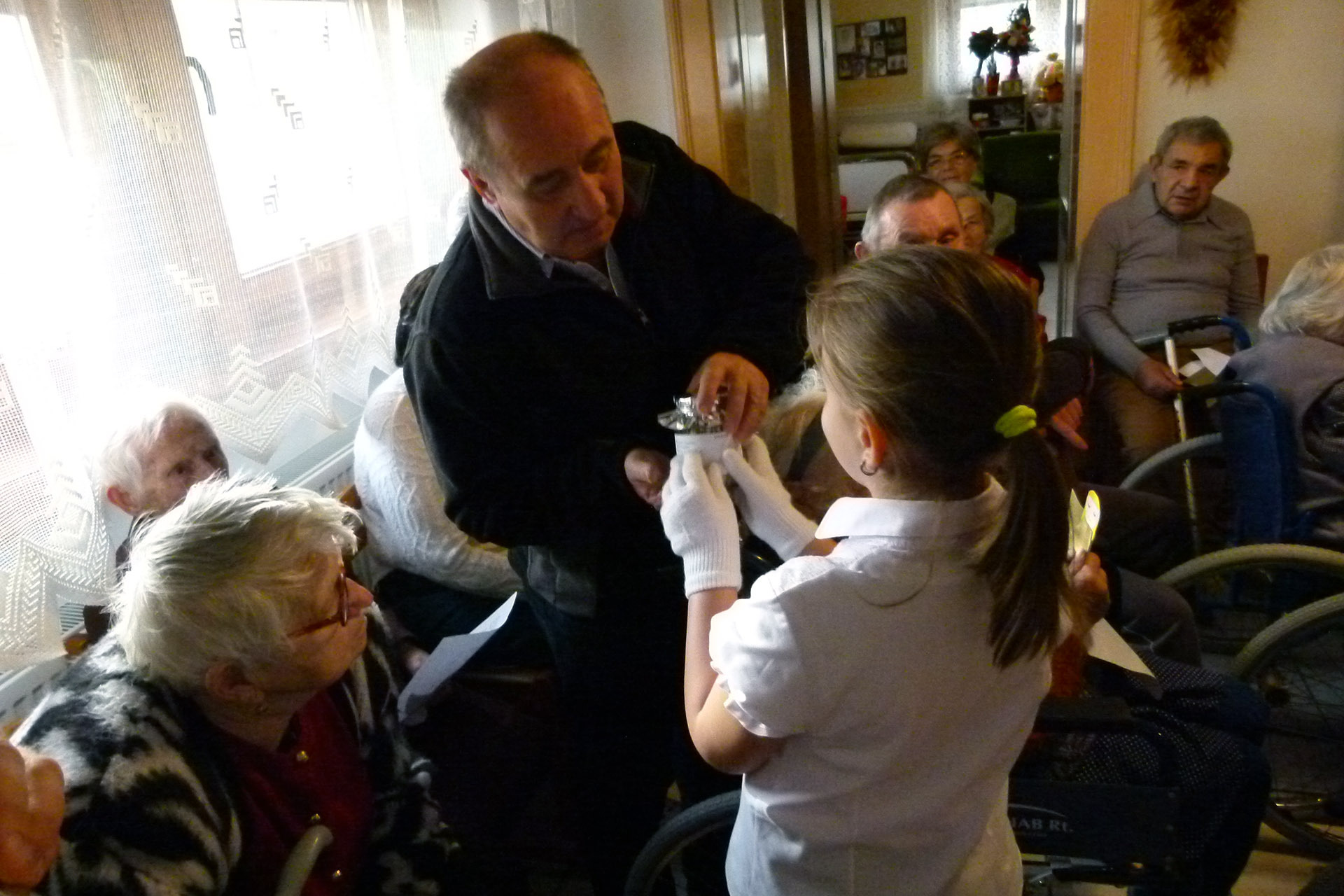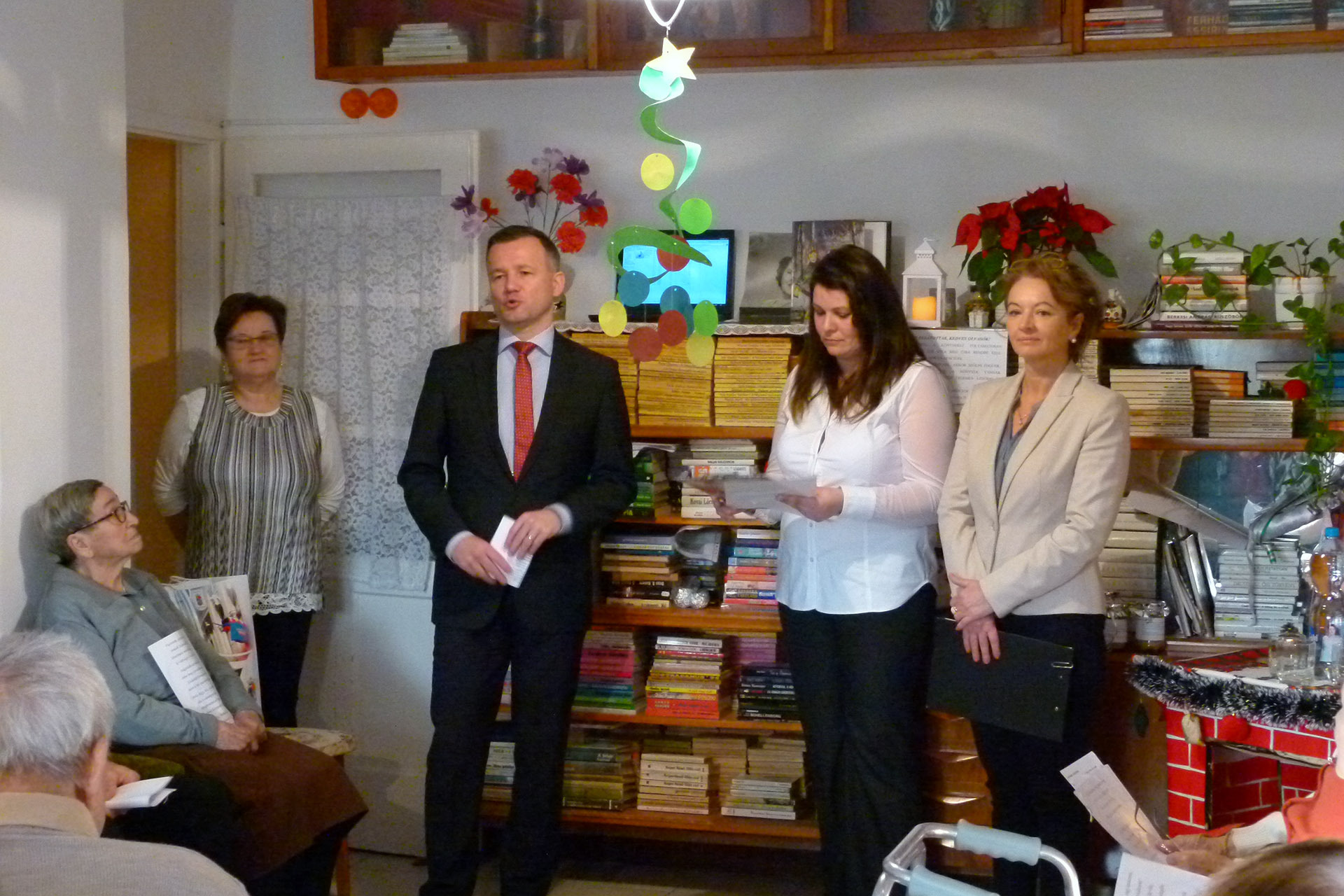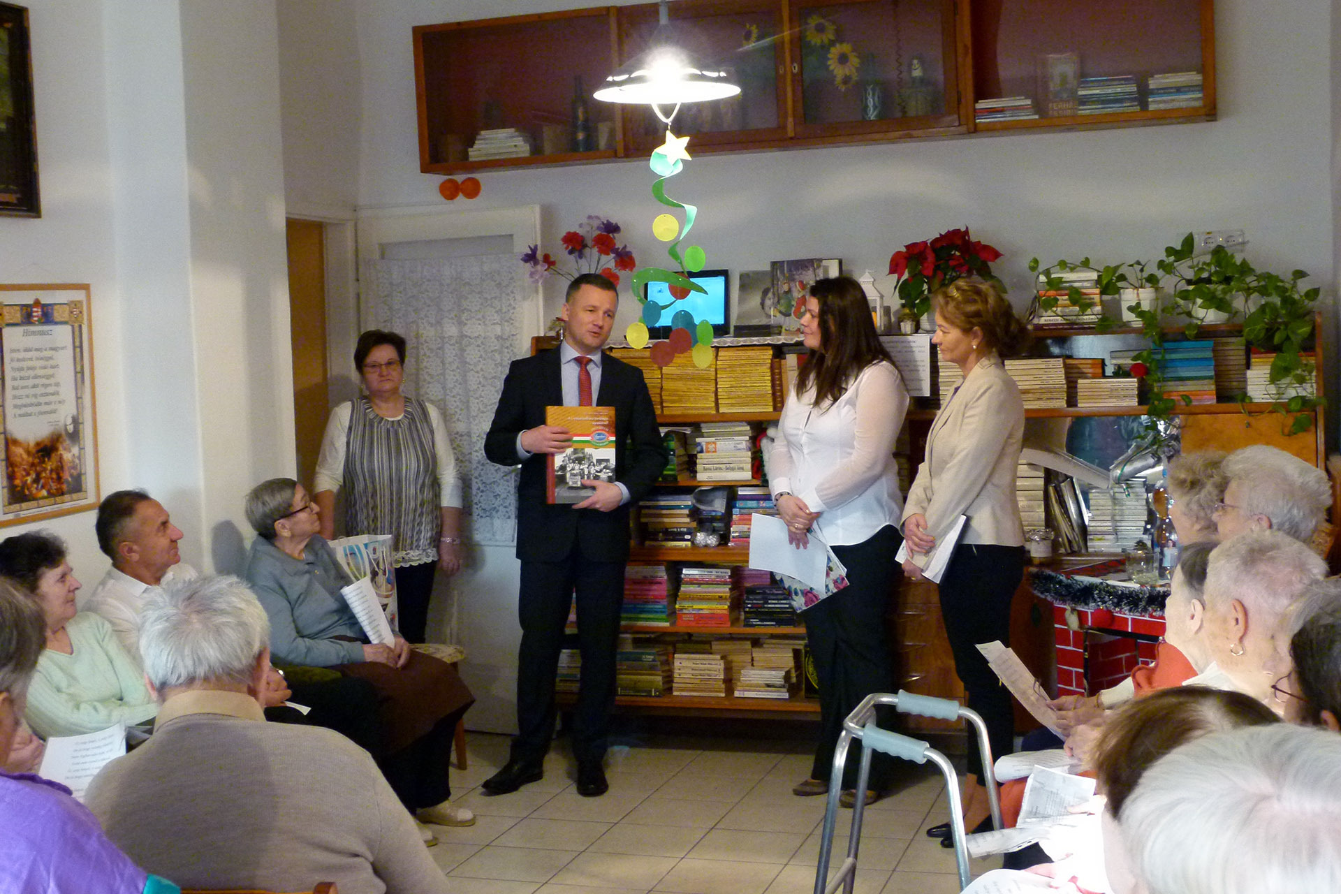 A polgármester nem érkezett üres kézzel, hiszen az intézmény tagjait is megajándékozta egy helytörténeti kötettel, amelyet szaloncukor kíséretében nyújtott át az otthon vezetőjének.