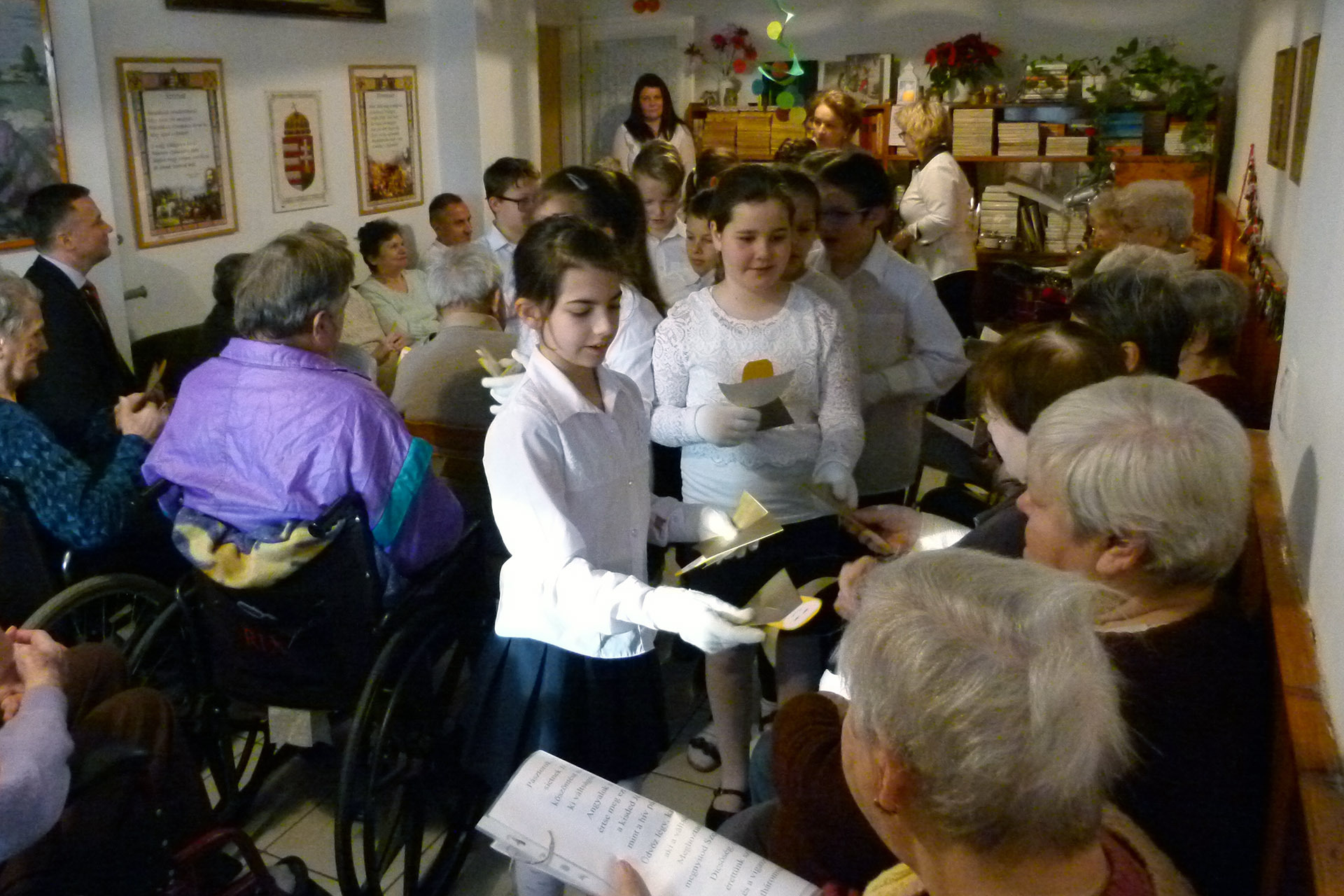 A köszöntő szavak után a Dürer Albert általános iskola harmadik osztályos tanulói adták át karácsonyi műsorukat. A diákok versekkel, dallal és előadással kedveskedtek a szépkorúaknak, akiket az ünnepség végén saját kézzel készítette ajándékokkal is megleptek.