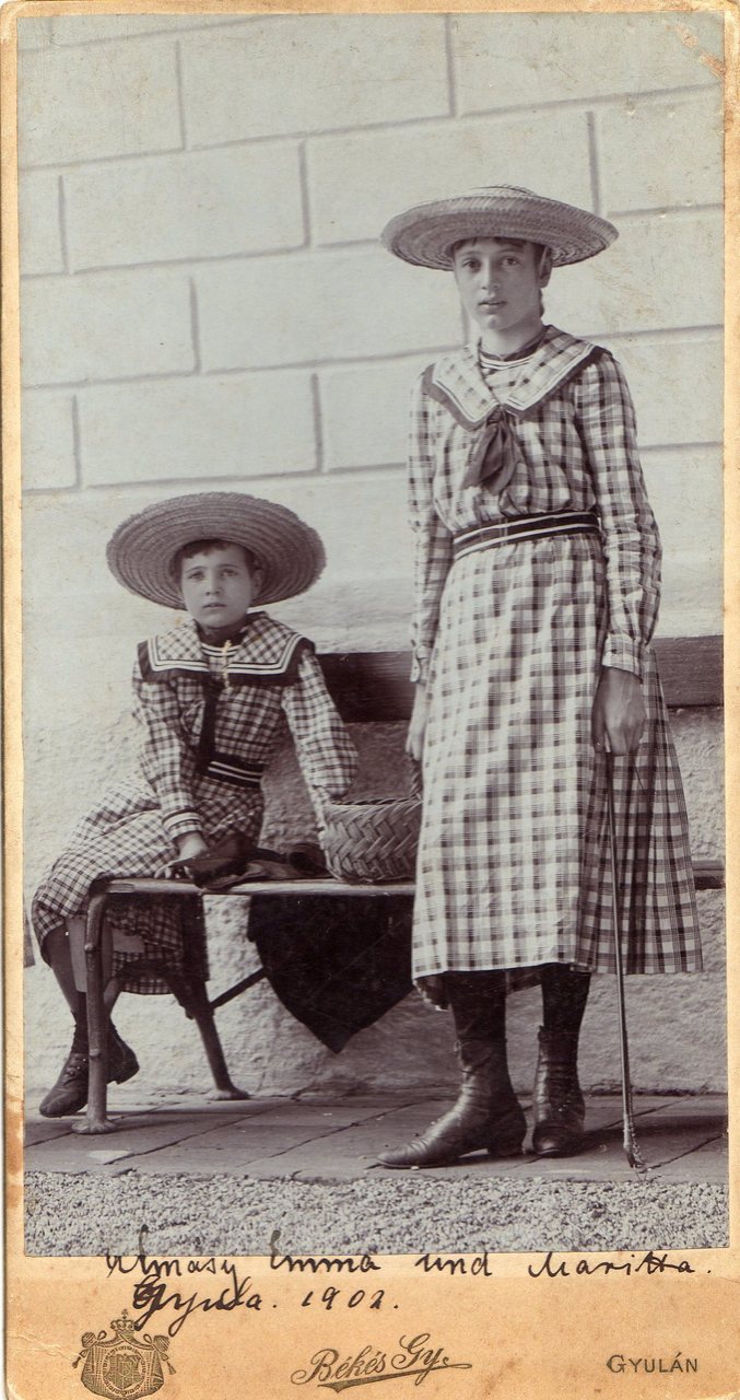 A fényképeken szintén szereplő Maritta pedig az 1894-ben született Mária Paulina lehet. Nagymamám, miután megismerkedett nagyapámmal, Imrével az uradalomban, sok levelet írt neki, főleg német nyelven. Nagyapám a kilencszázas évek elején több környékbeli uradalomban megfordult kertészként, bár leginkább az Almásyakhoz tartozó helyeken, így például Kétegyházán, Dobozon.