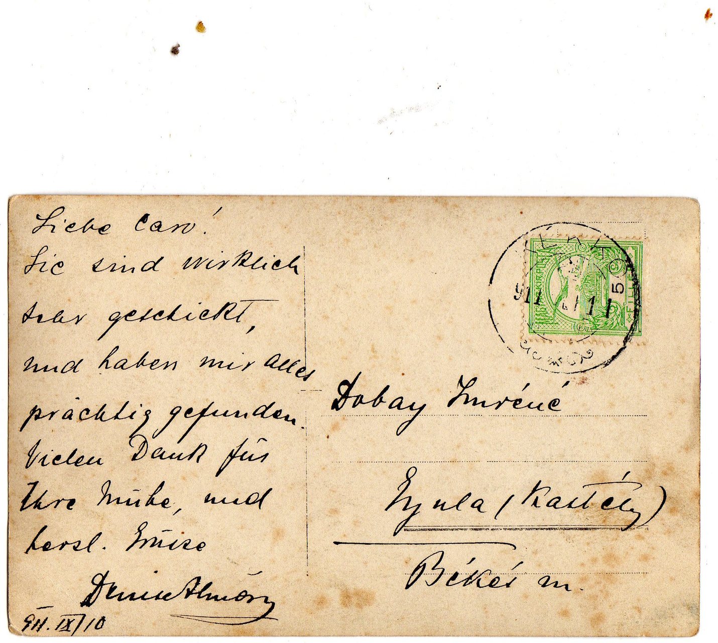 Nagymamámnak szoros kapcsolata volt a családdal, főleg a lányokkal és a grófnéval. Denise többször írt képeslapot „Karolin kisasszonynak” vagy Carónak, ahogy nagymamámat becézték. Még mama szülővárosába, Linzbe is ellátogatott, és együtt írtak az ottani rokonainkkal képeslapot Gyulára. A Lilli név az anyakönyvben nem szerepel, nagymamám Lillivel is jóban volt, ő nyilvánvalóan az 1892-ben született harmadik lány, Gabriella Emilia Josefina lehetett. Ő is többször írt üdvözletet nagymamámnak, Karolinnak, biztosan szerette őt, mert nem sokkal mama Gyulára érkezése után, 1898 karácsonyán már üdvözlőlapot küldött neki Szerdahelyről gyerekes írásával.