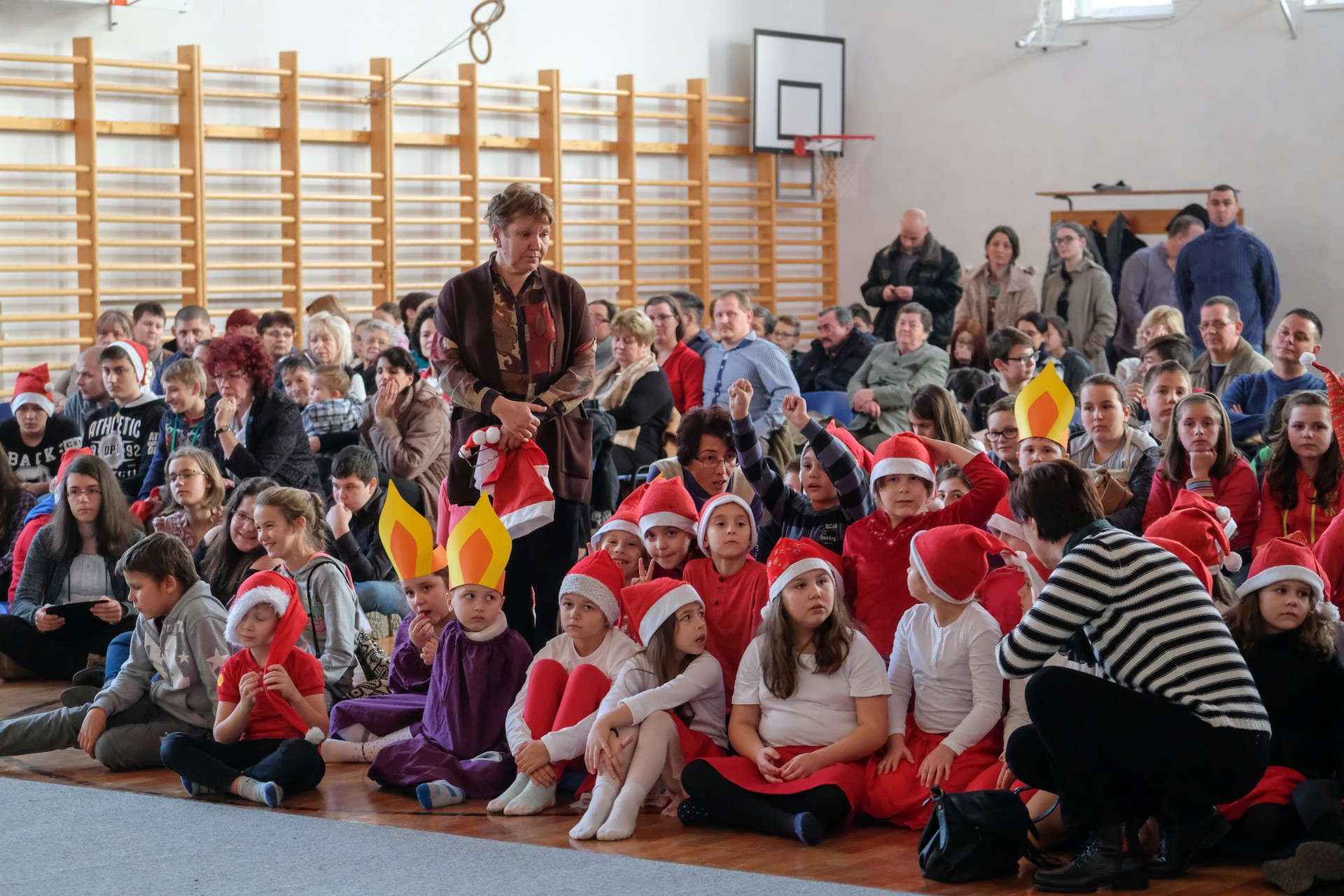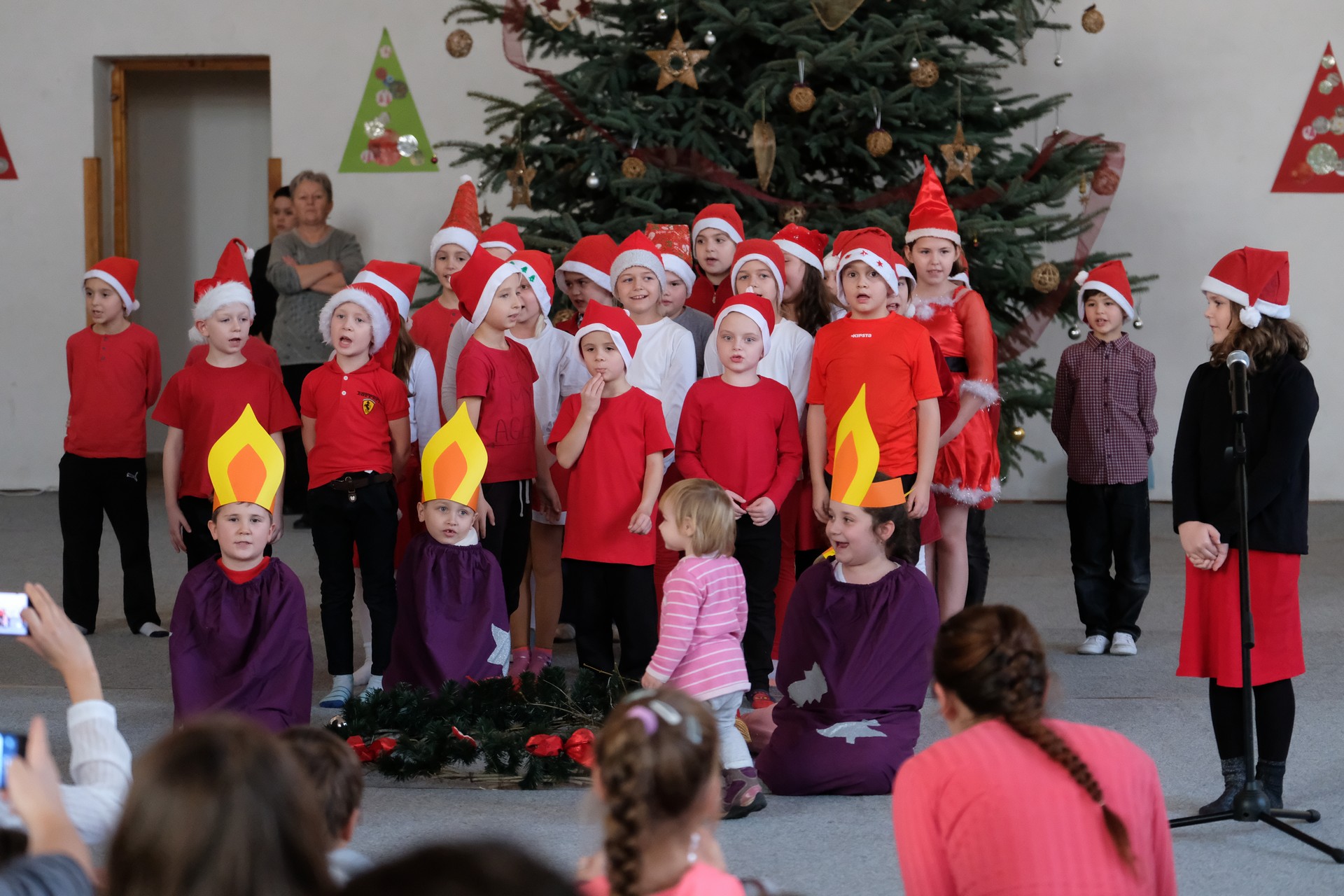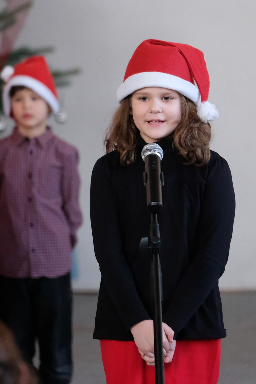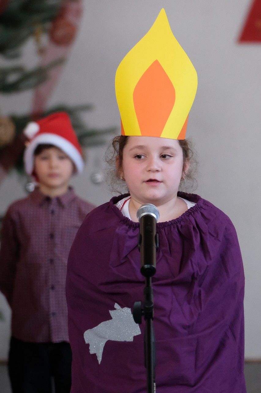 A folytatásban a manók tánca következett a 3. osztályosok előadásában, majd Aranyosi Ervin versbe foglalt karácsonyi gondolatait Serfőző Anna osztotta meg a nagyérdeművel.