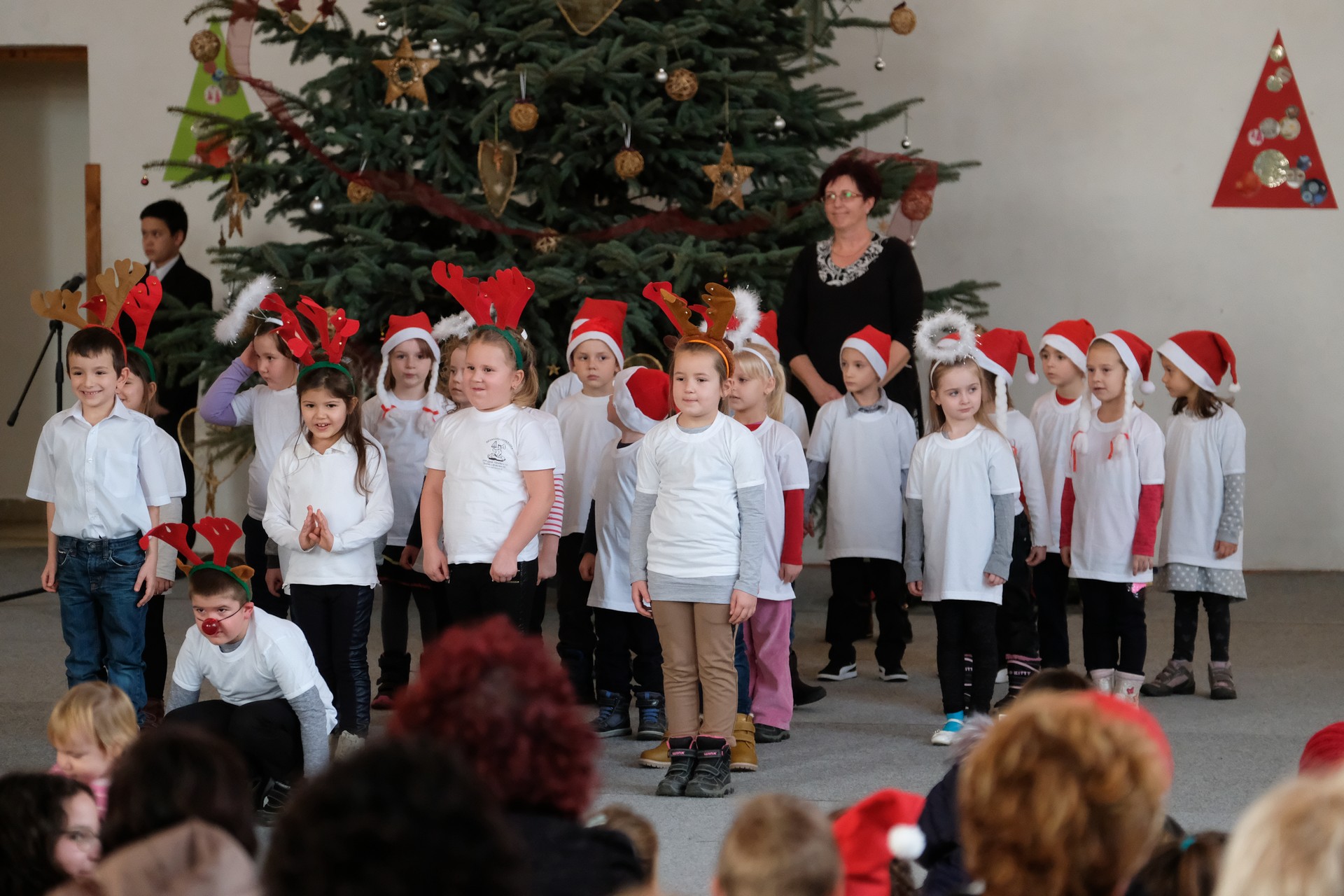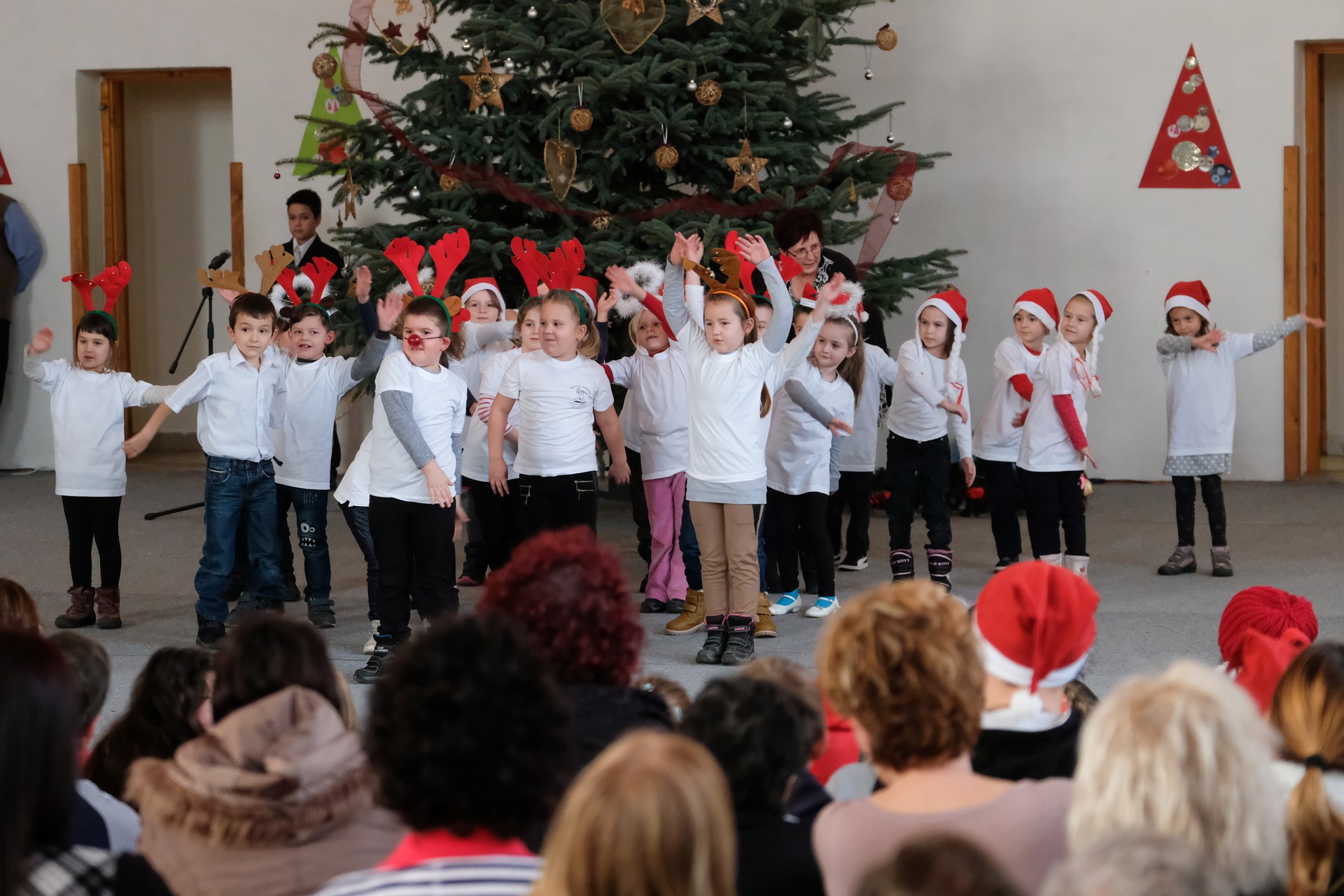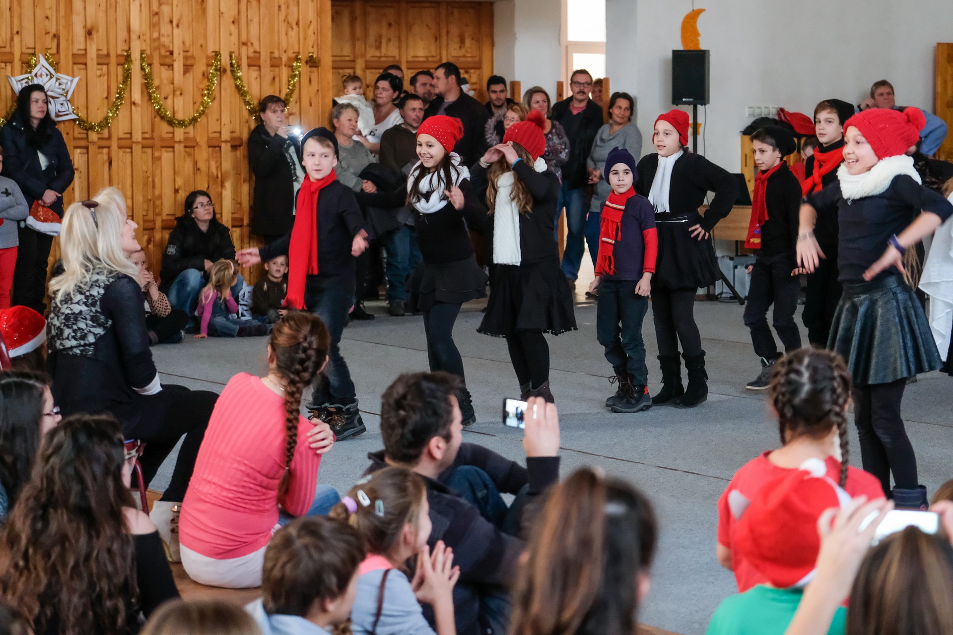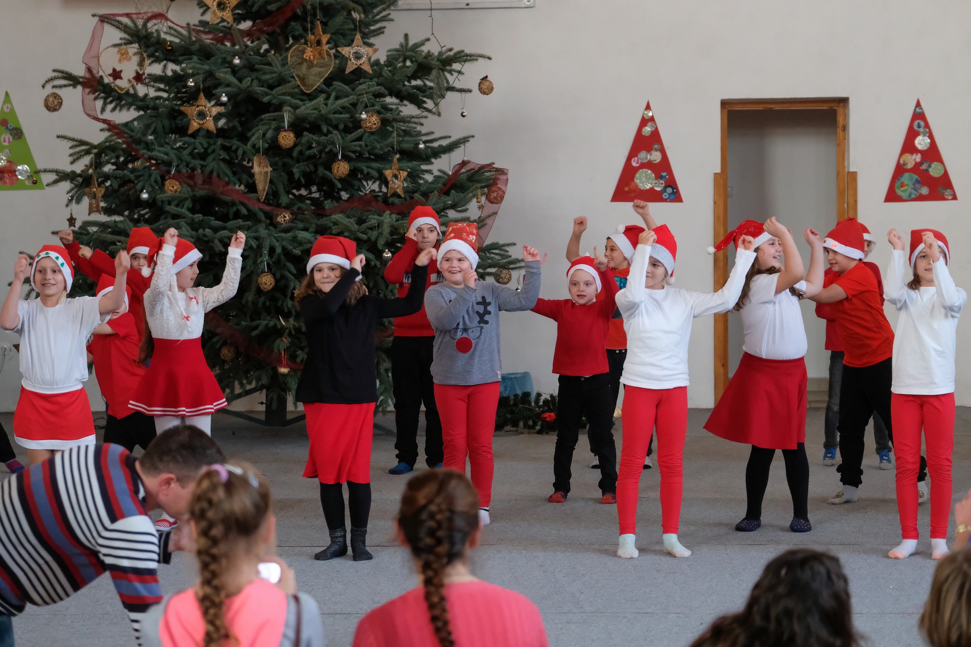A folytatásban a manók tánca következett a 3. osztályosok előadásában, majd Aranyosi Ervin versbe foglalt karácsonyi gondolatait Serfőző Anna osztotta meg a nagyérdeművel.