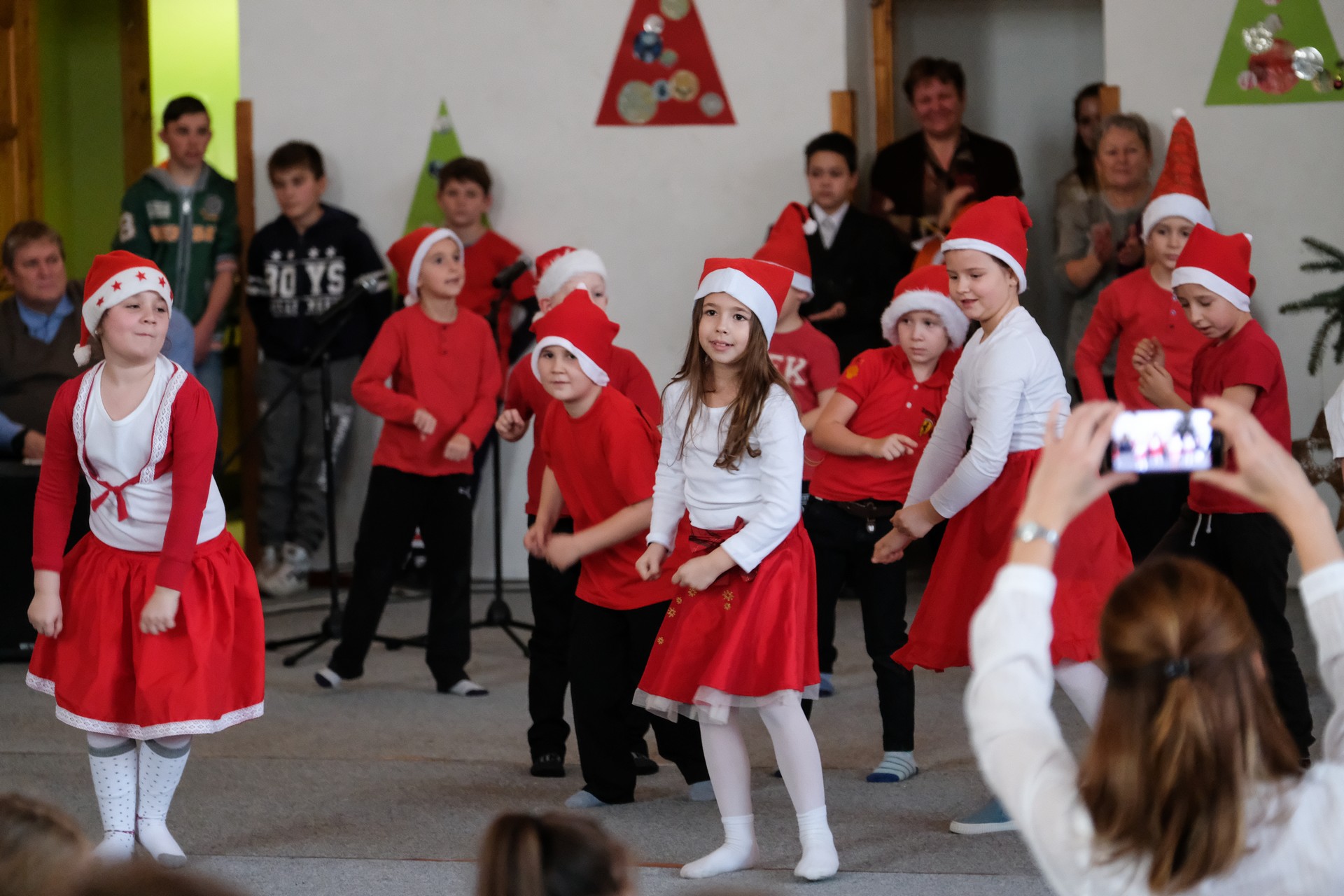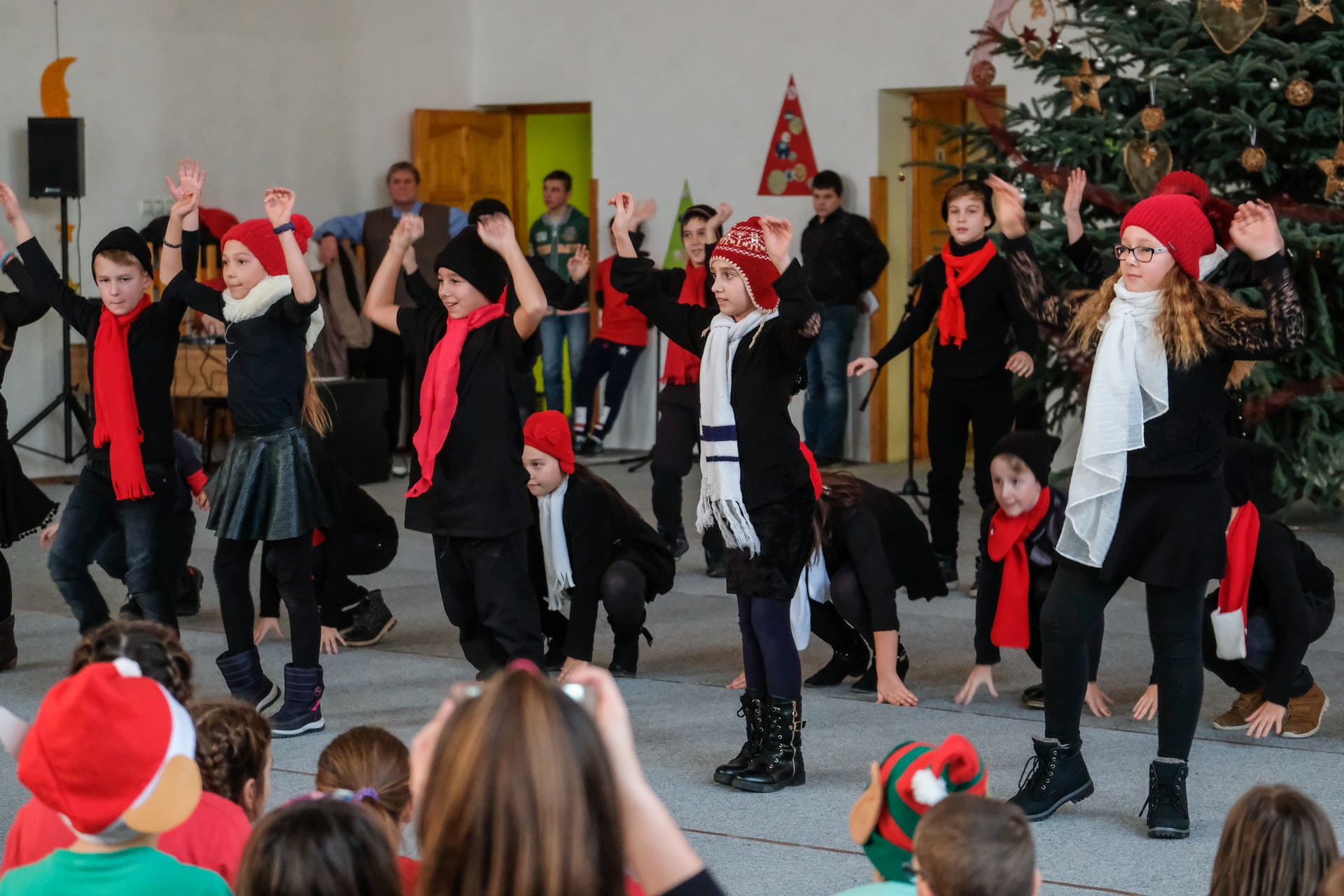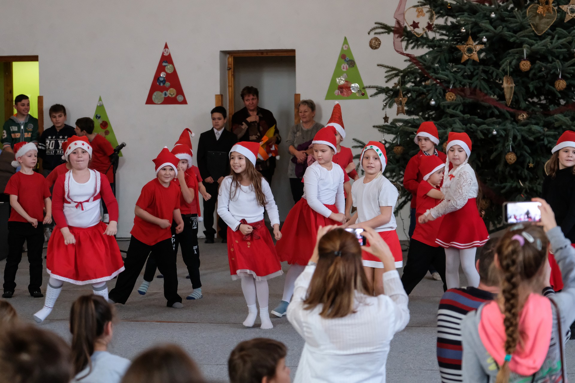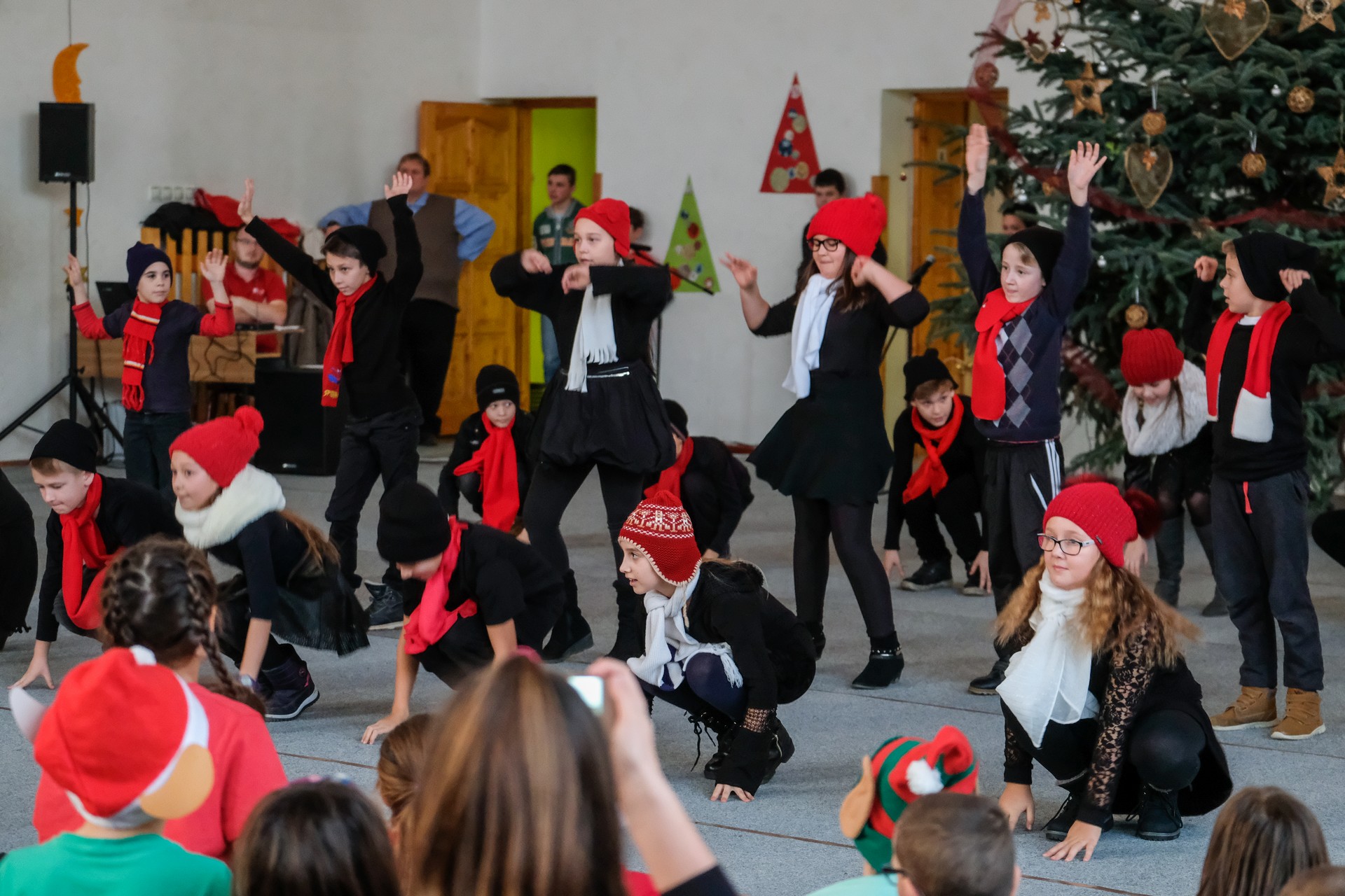 A folytatásban a manók tánca következett a 3. osztályosok előadásában, majd Aranyosi Ervin versbe foglalt karácsonyi gondolatait Serfőző Anna osztotta meg a nagyérdeművel.