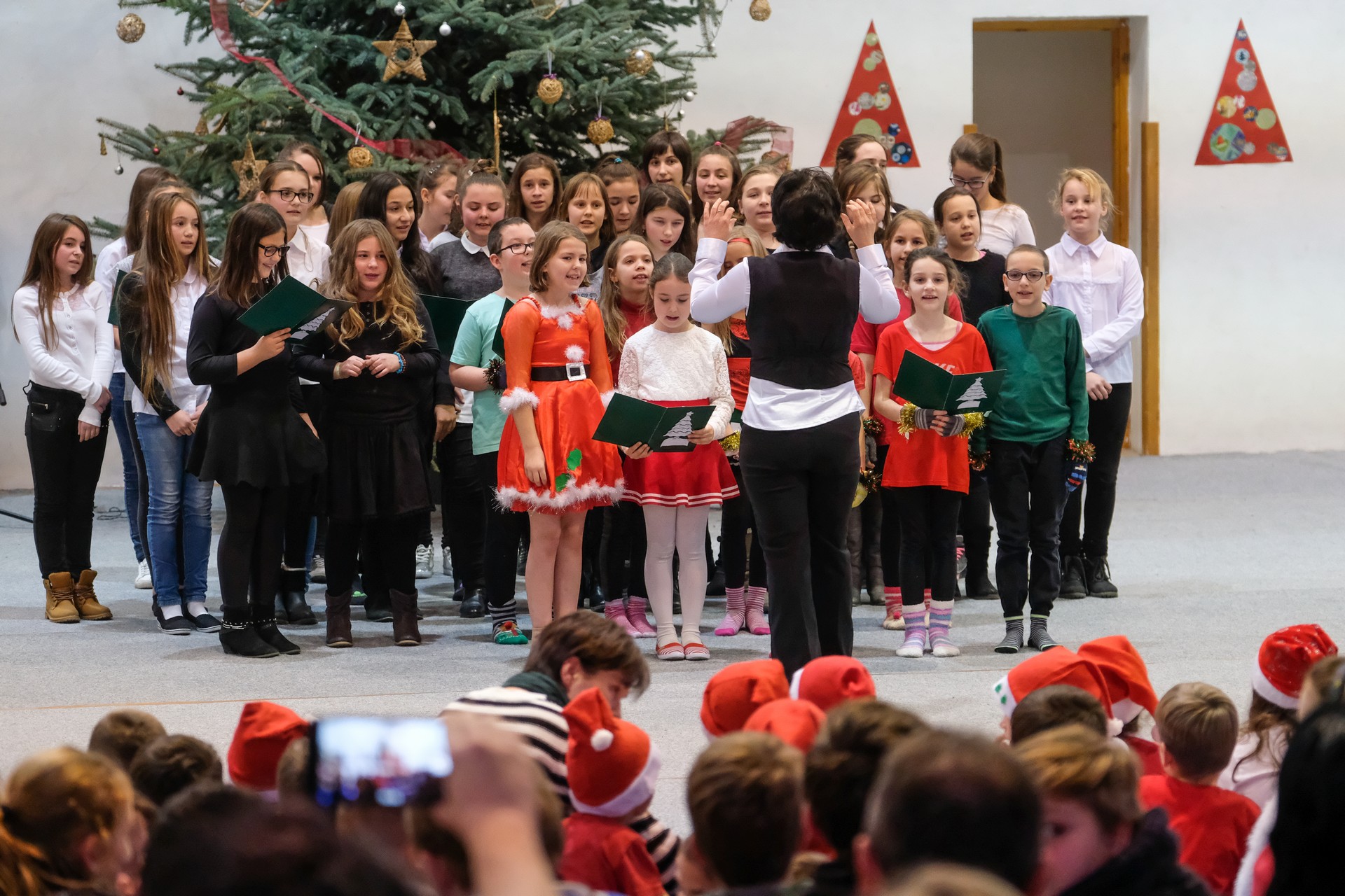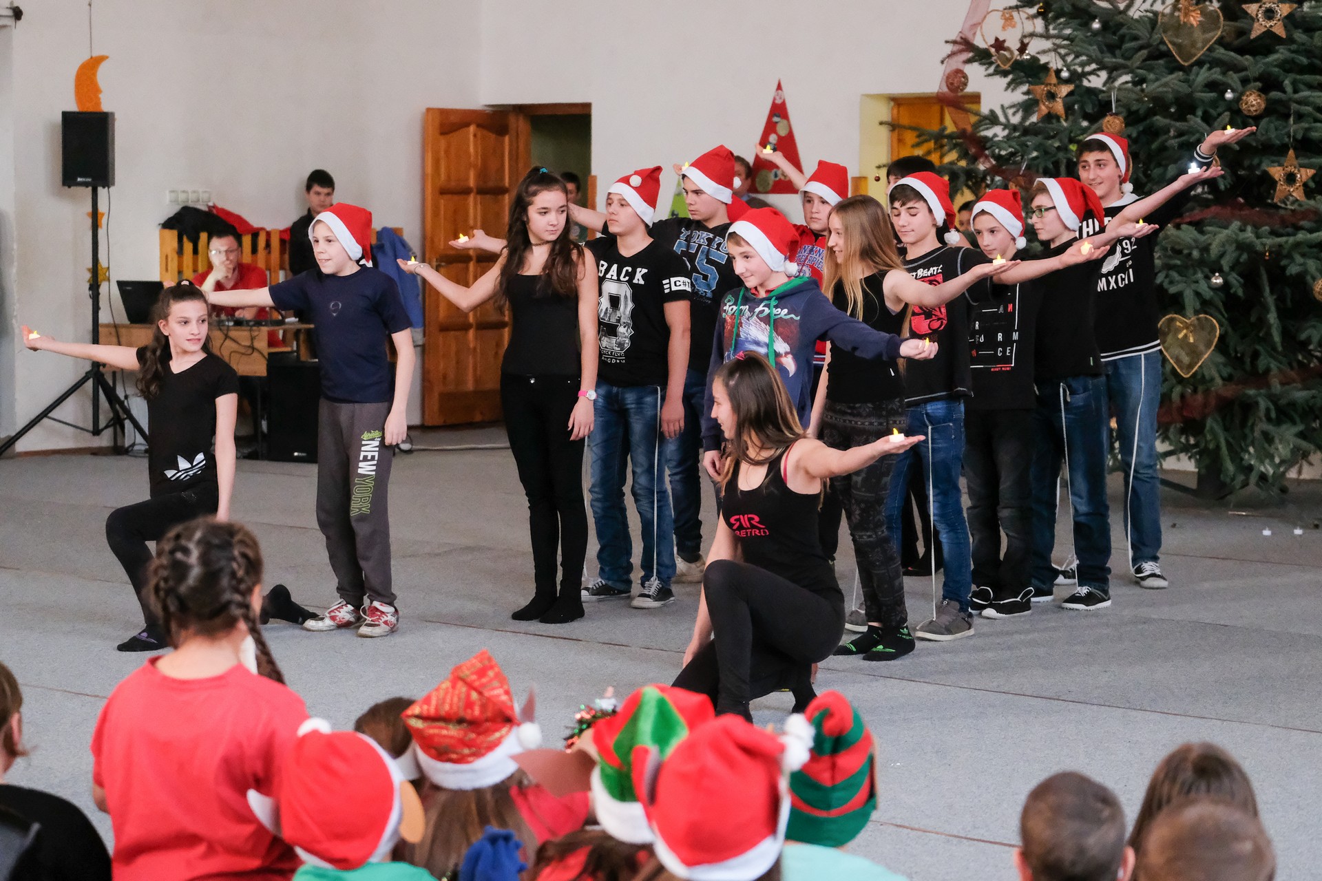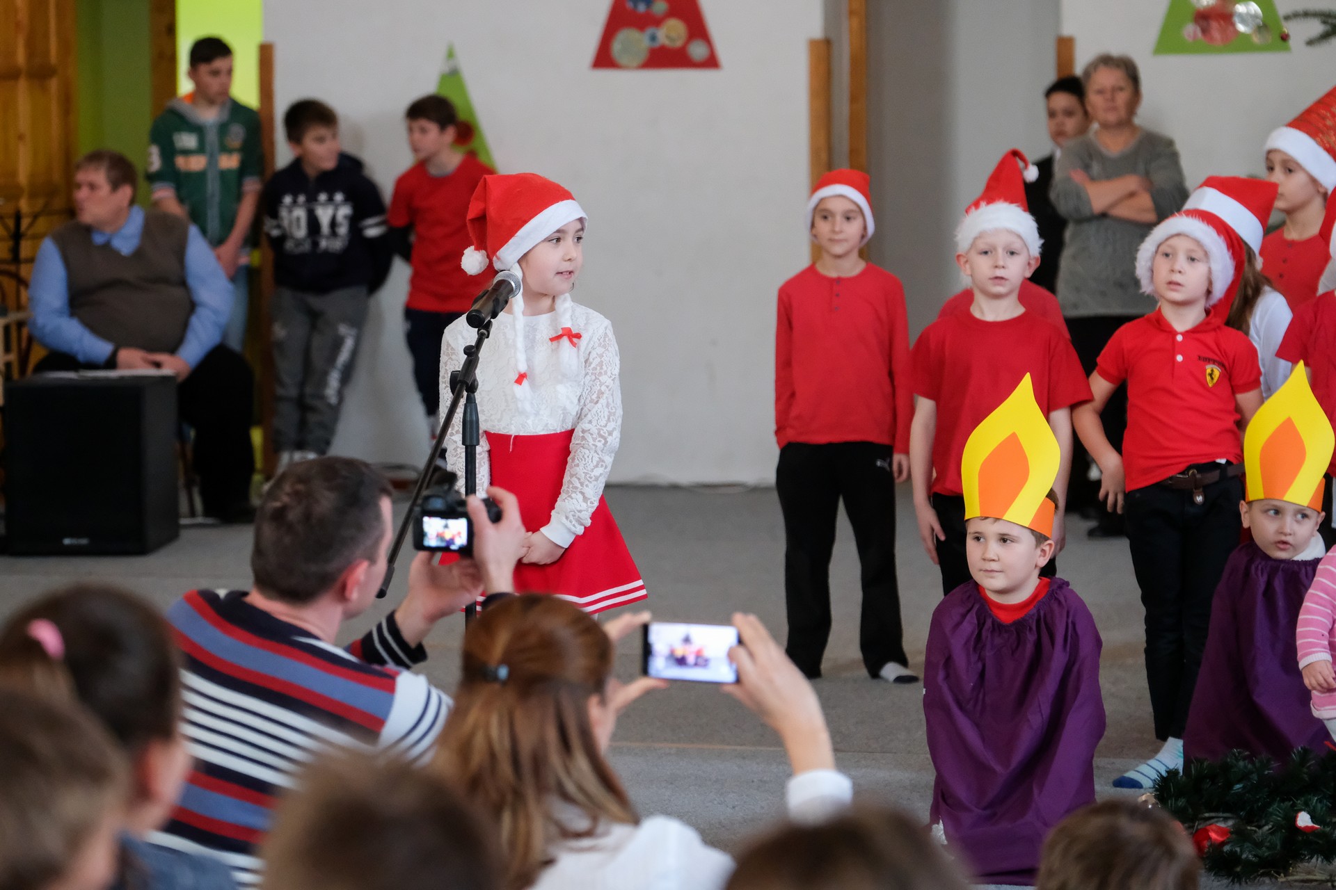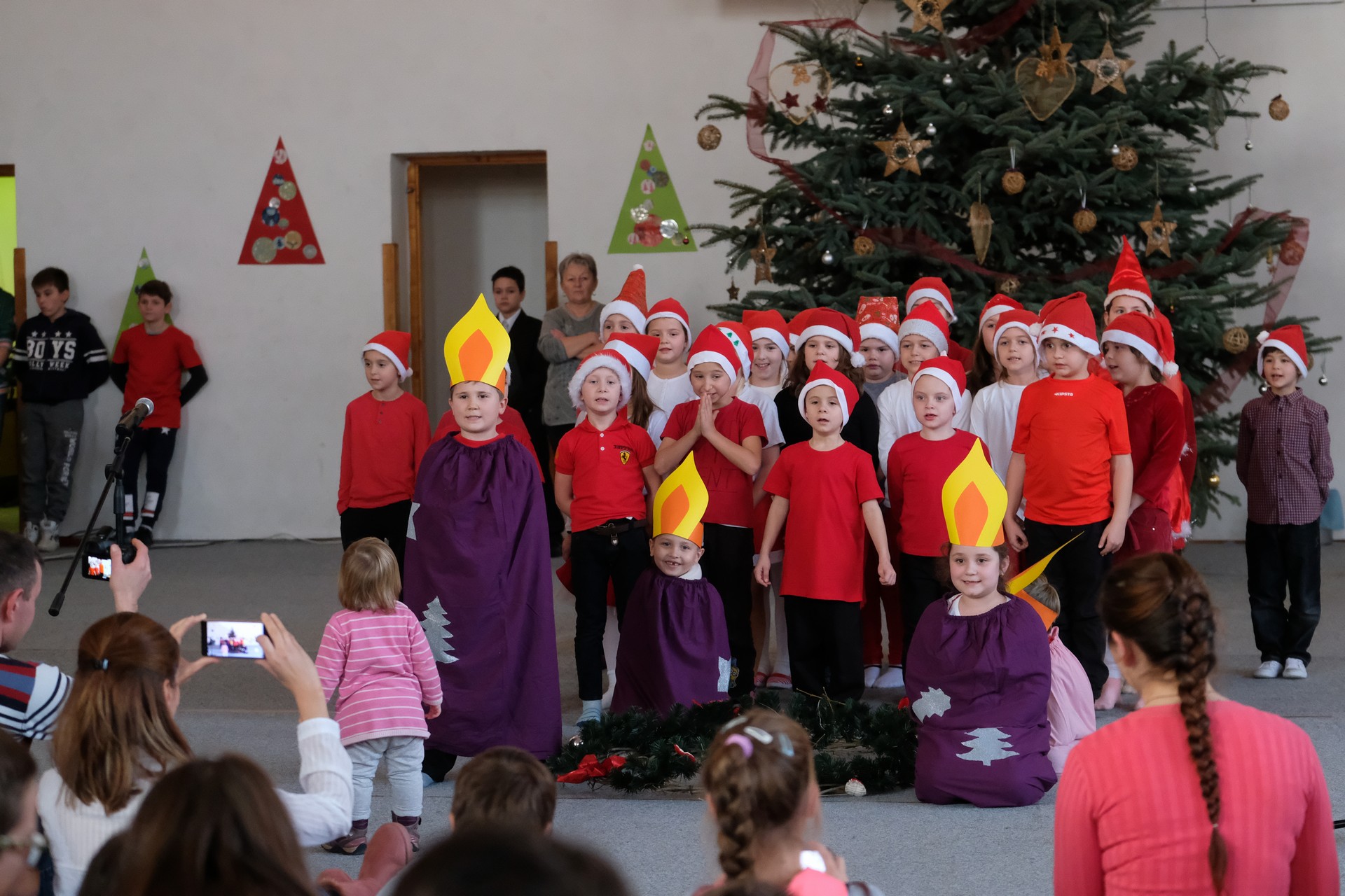 A folytatásban a manók tánca következett a 3. osztályosok előadásában, majd Aranyosi Ervin versbe foglalt karácsonyi gondolatait Serfőző Anna osztotta meg a nagyérdeművel.