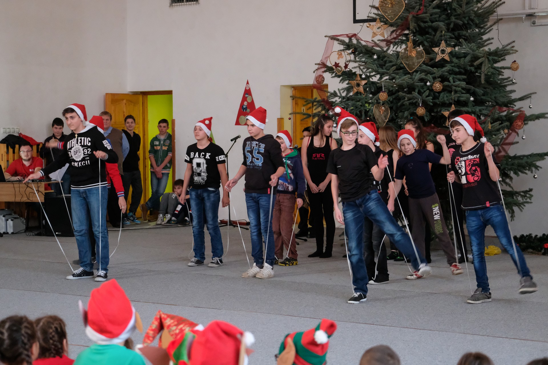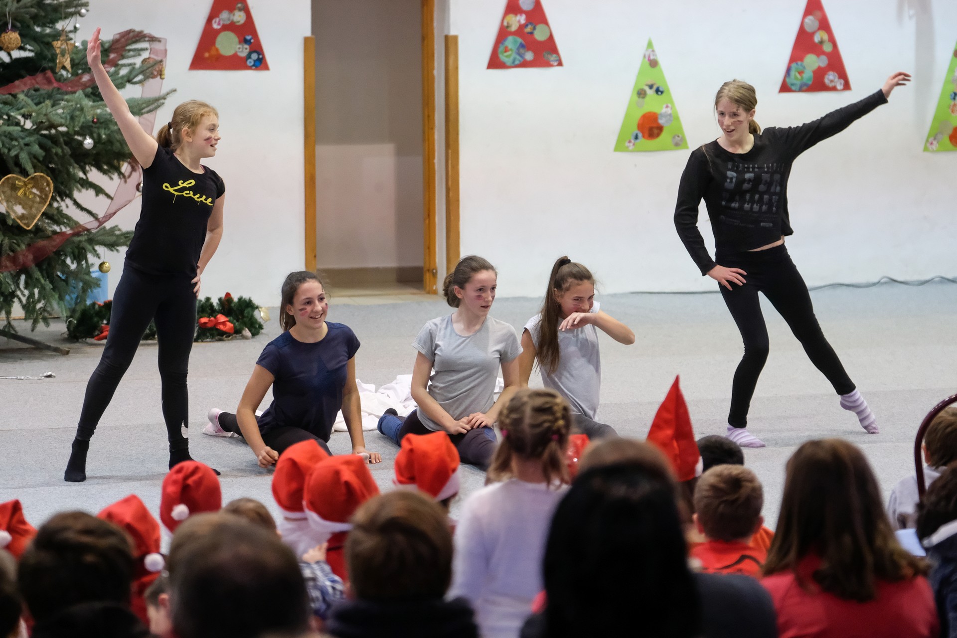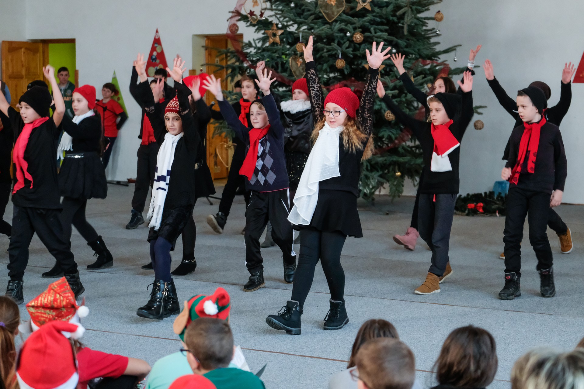 Az elsős és másodikos kisdiákok Hópihe-táncát Dobay Brigitta, Nagyné Oláh Éva és Árgyelán Lászlóné állította össze. Őket az óvodások műsora követte, majd az újdonsült felsősök, az ötödikes diákok mutattak be egy részletet az Abigél című musicalből.