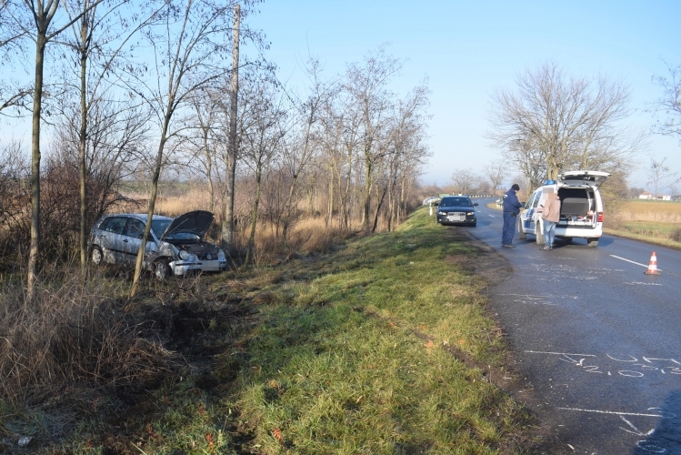 Orosháza külterületén 8 óra körül árokba csúszott egy személygépkocsi. A jármű vezetője, aki egyedül ült az autóban, könnyű sérülést szenvedett.