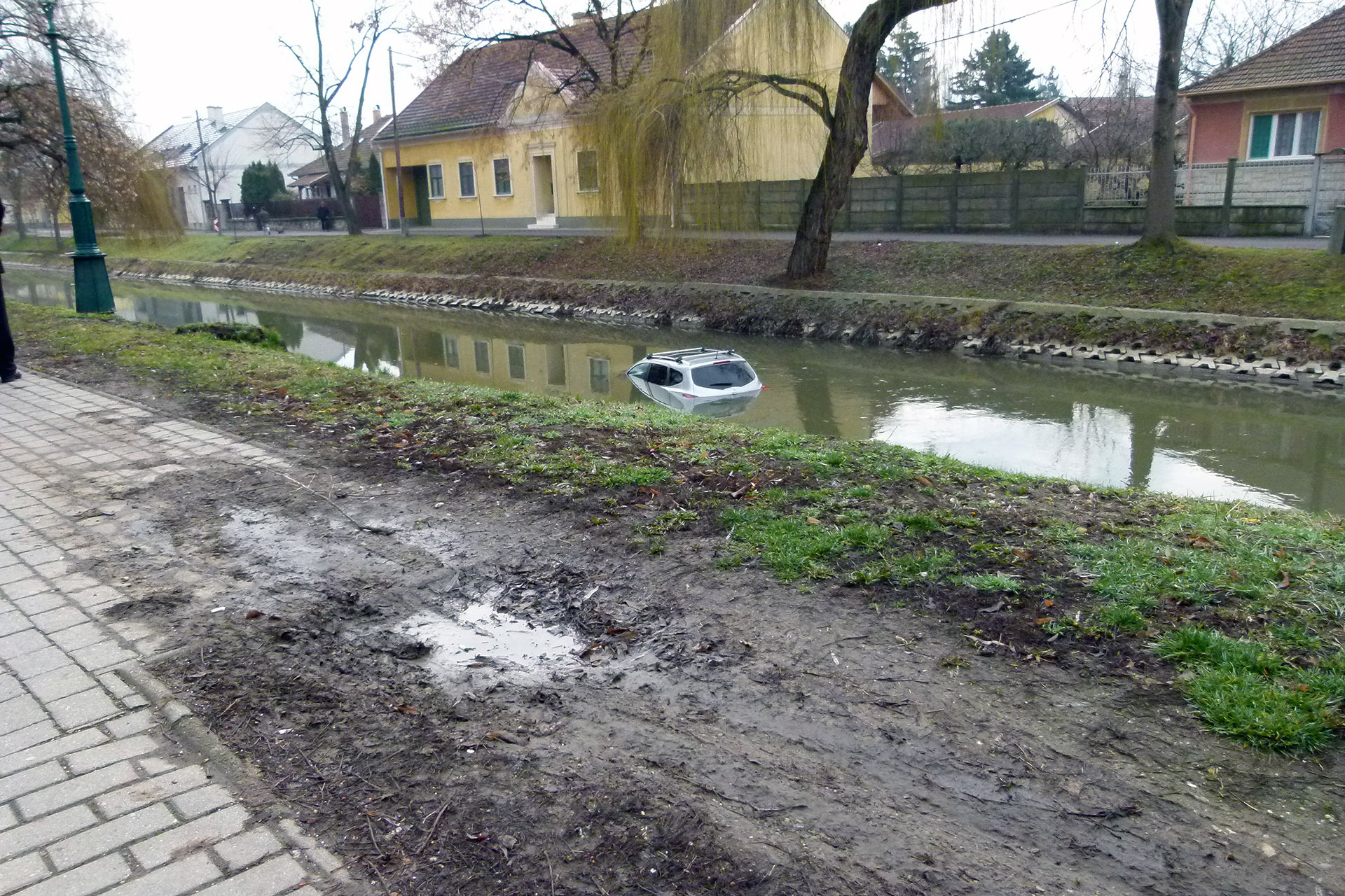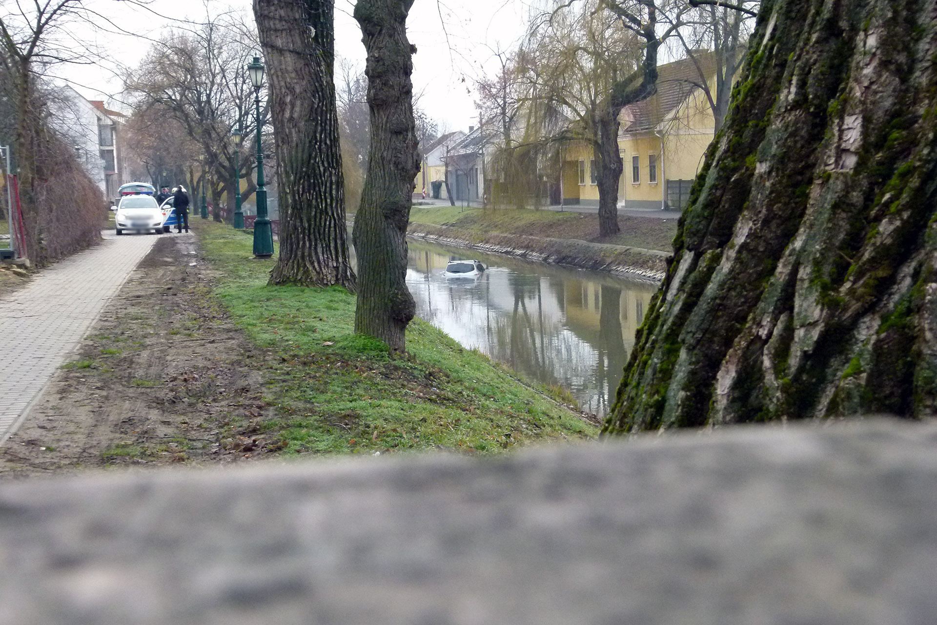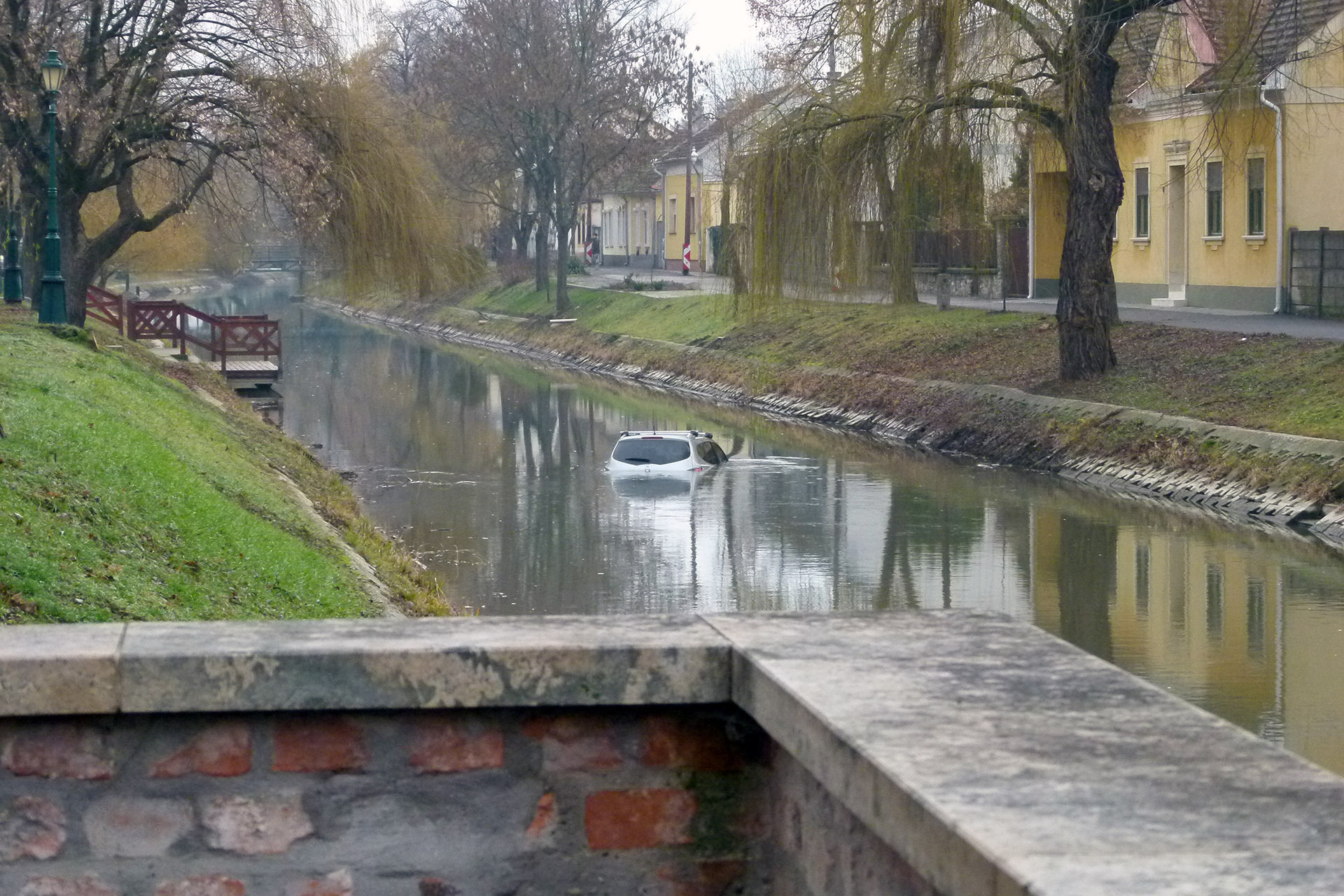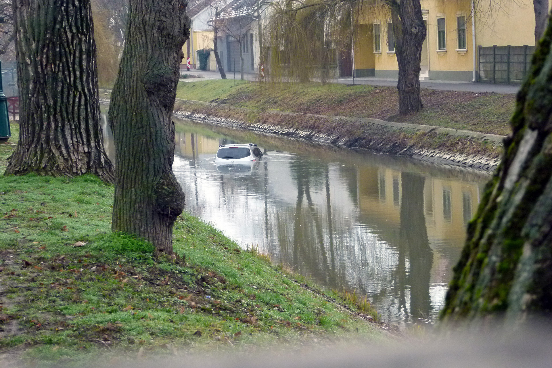 Az Élővíz-csatornába csúszott egy személygépkocsi a reggeli órákban a fürdővárosban.