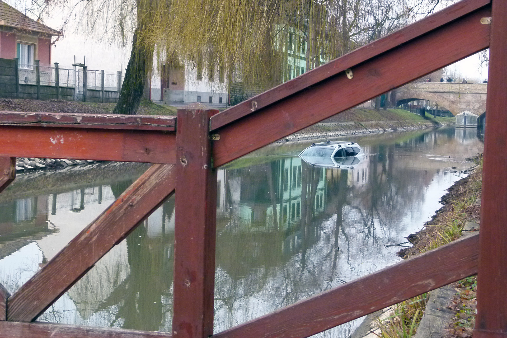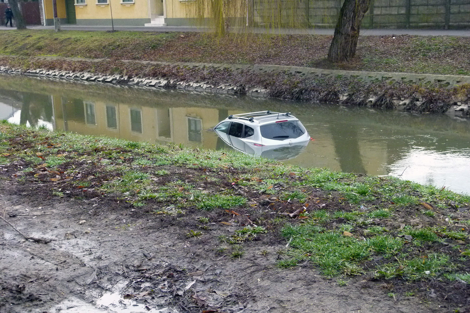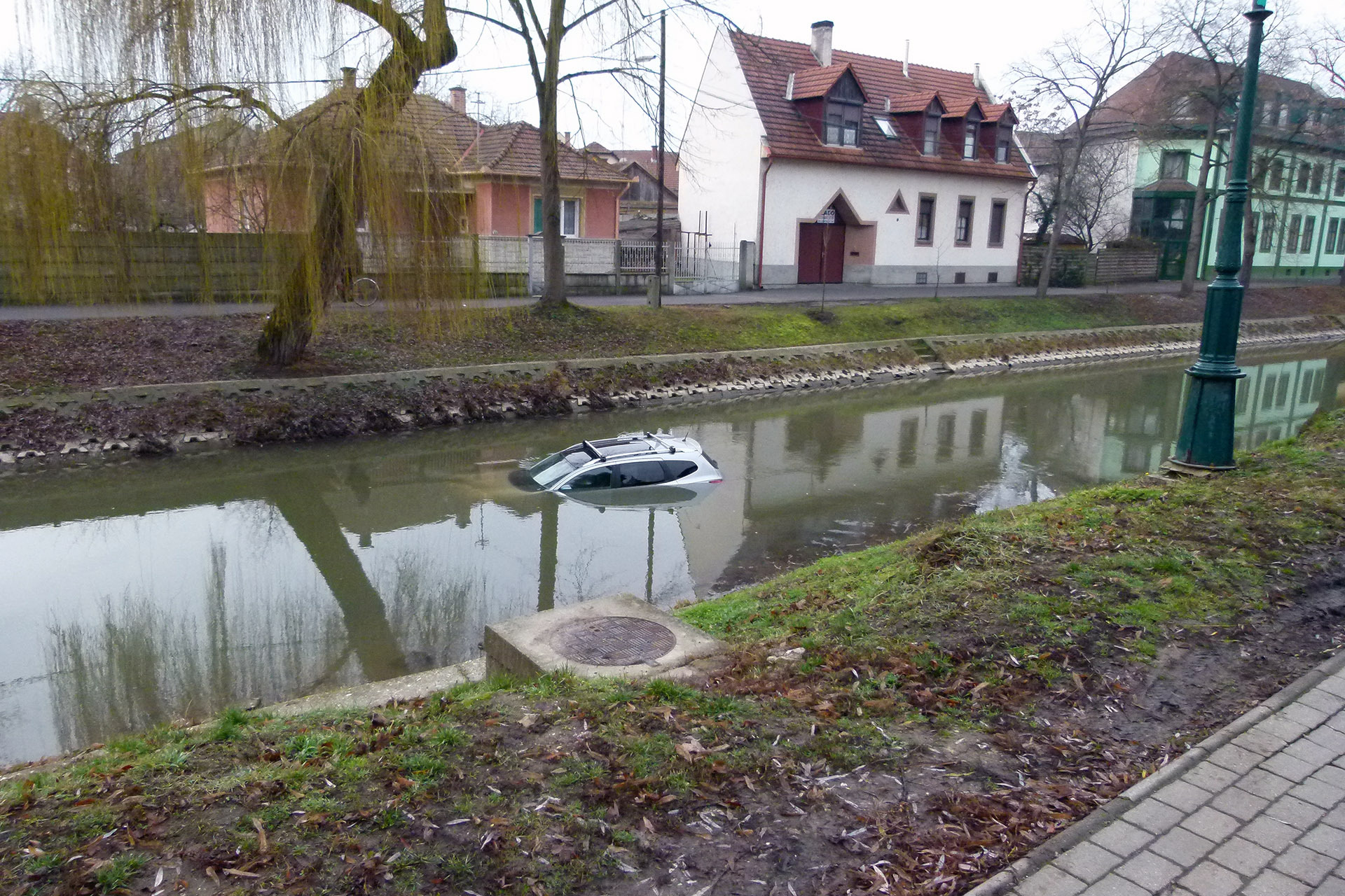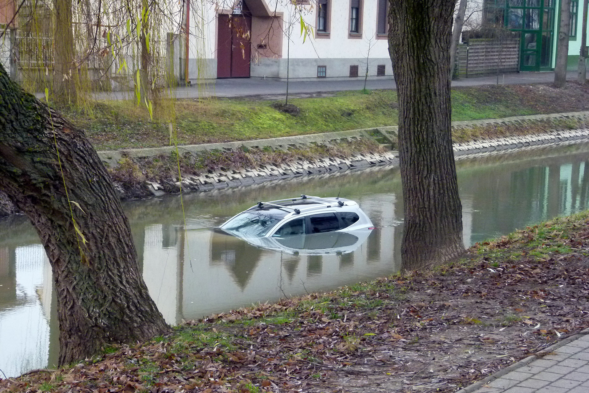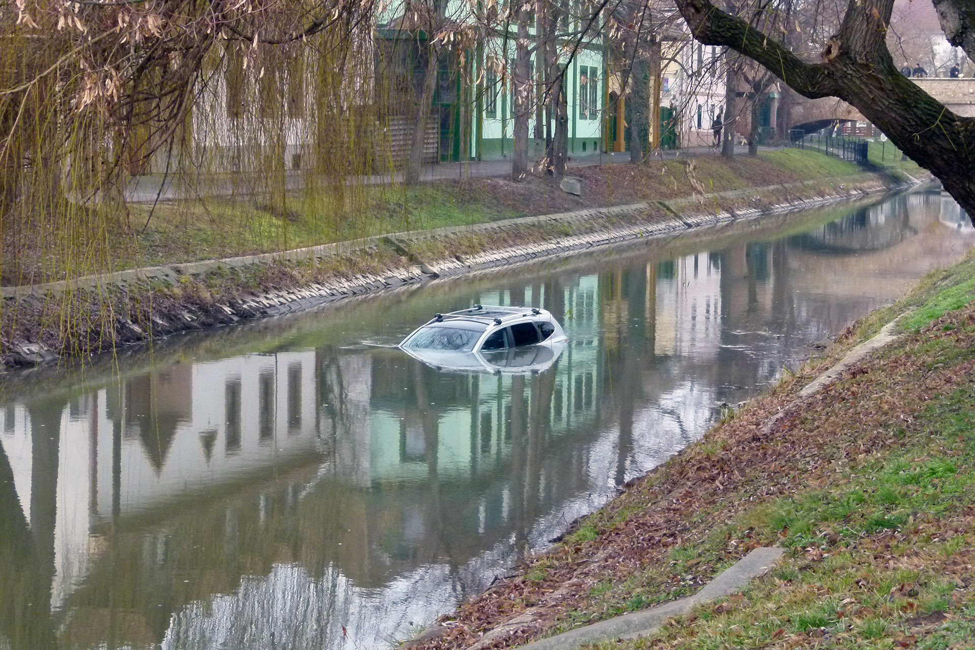 Az Élővíz-csatornába csúszott egy személygépkocsi a reggeli órákban a fürdővárosban.