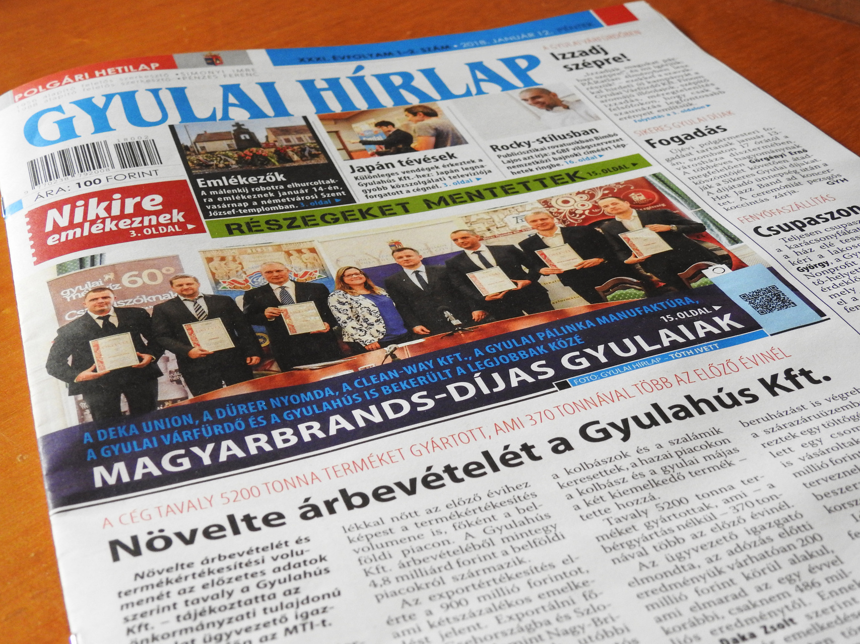A Gyulai Hírlapot saját kézbesítőink viszik el az önök által megadott lakcímre hétről hétre. Előfizetőink már szerdán este kézbe vehetik és olvashatják a friss Gyulait! Az előfizetésnek más előnye is van, arról nem is beszélve, hogy előfizetve 33 forinttal olcsóbb egy lapszám. A Gyulai Hírlapra egy kerek esztendőre csupán 3500 forintért fizethet elő. Lapunk ajándéknak sem utolsó! Ha az előfizetéssel kapcsolatosan kérdése lenne, hívja Csepregi Brigittát a 06-30-627-6889-es számon.