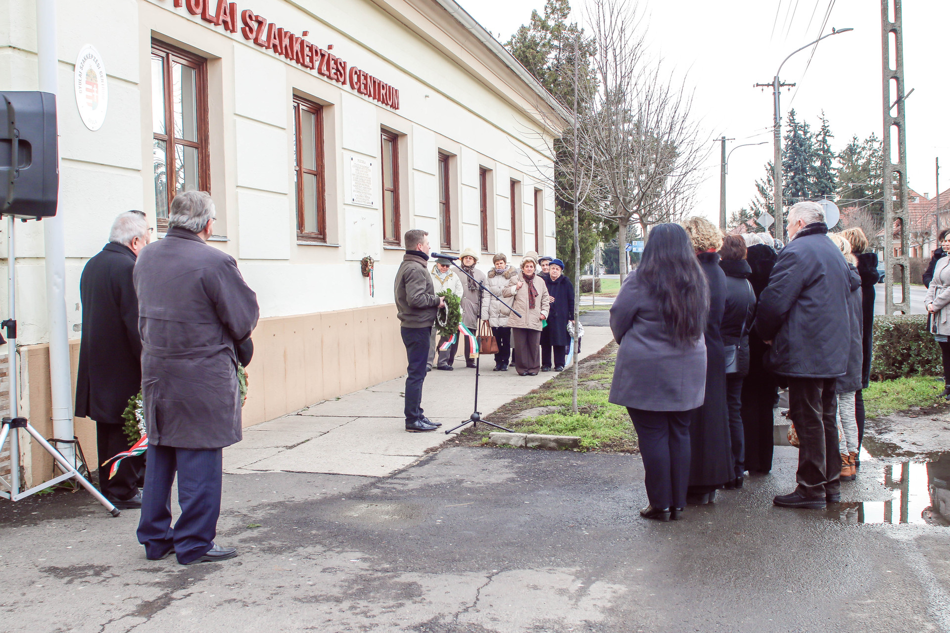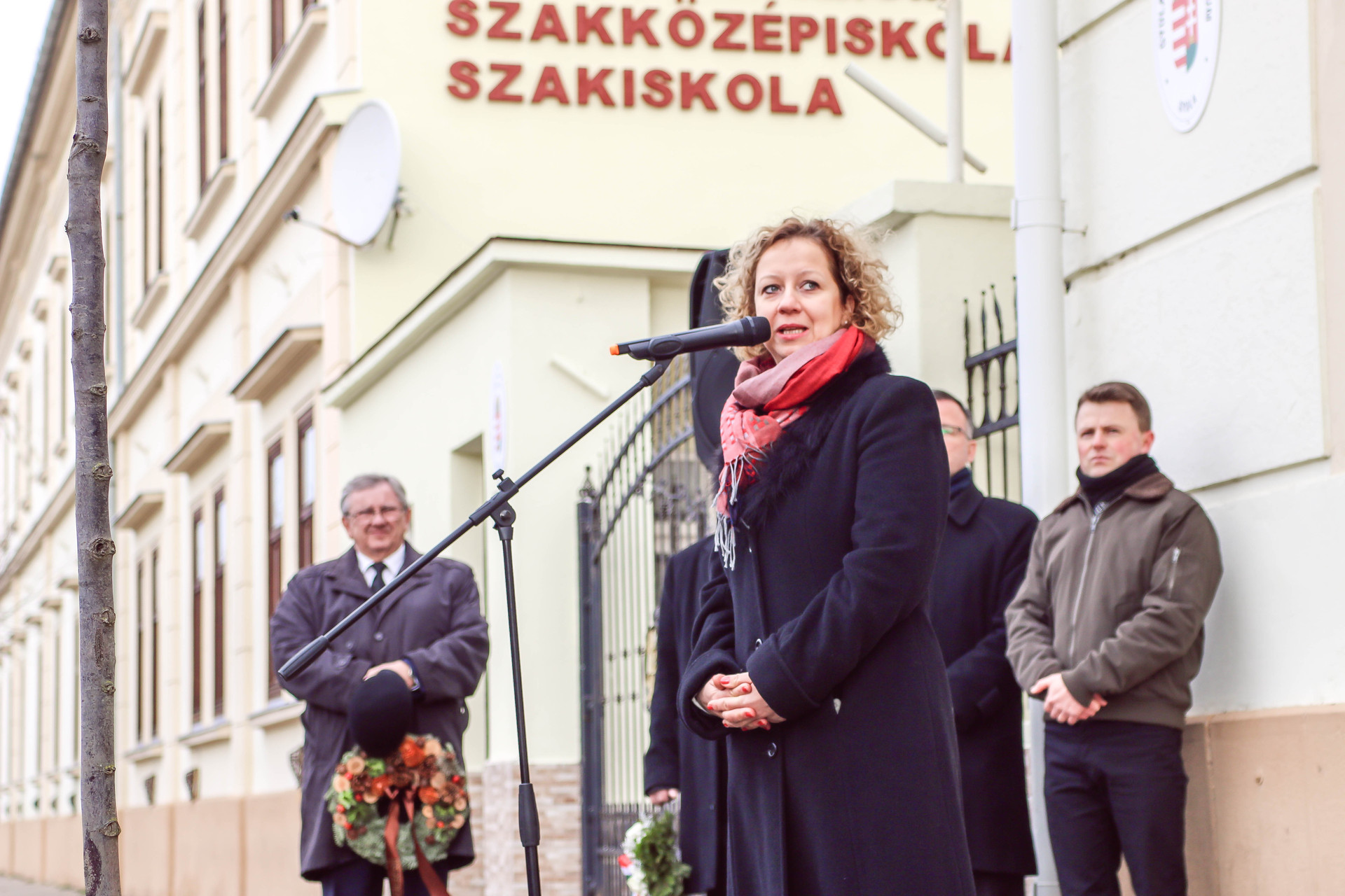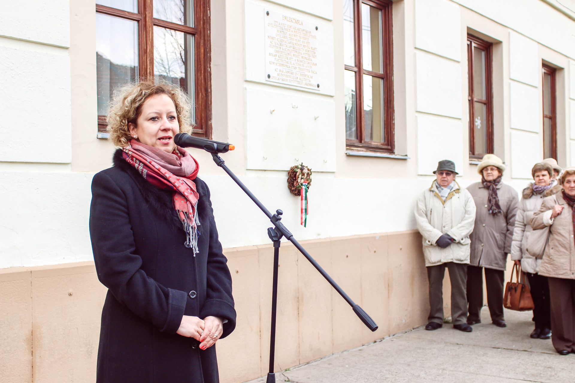 Megemlékezés a Harruckern-iskola falán állított emléktáblánál
