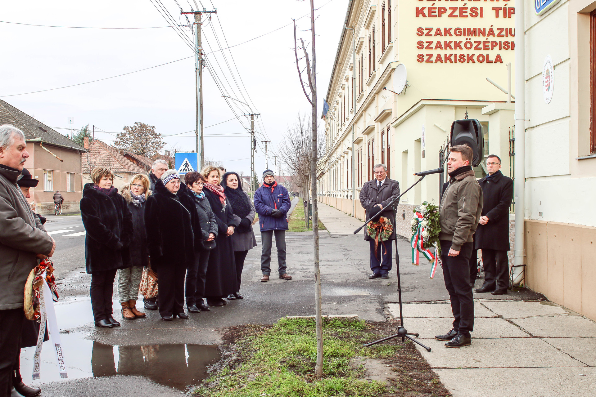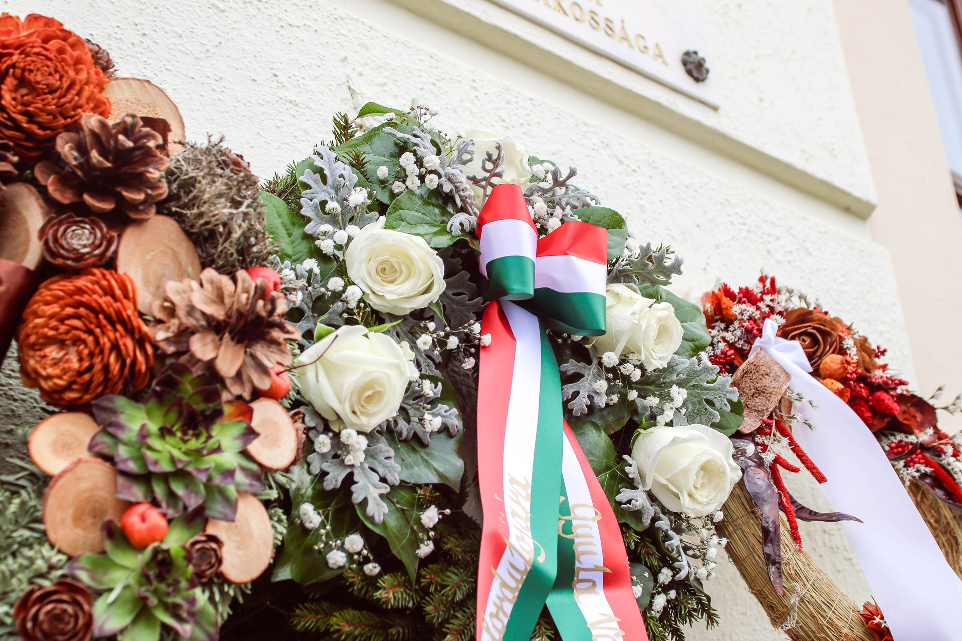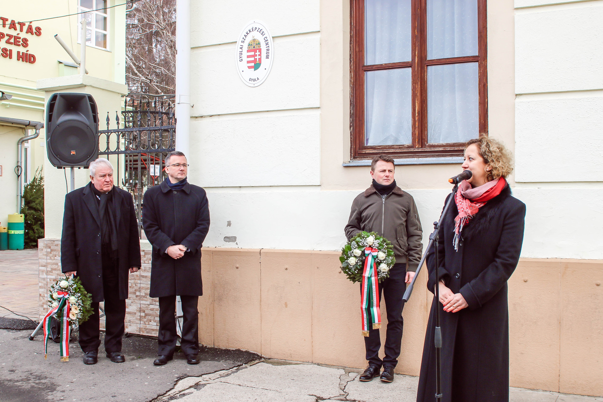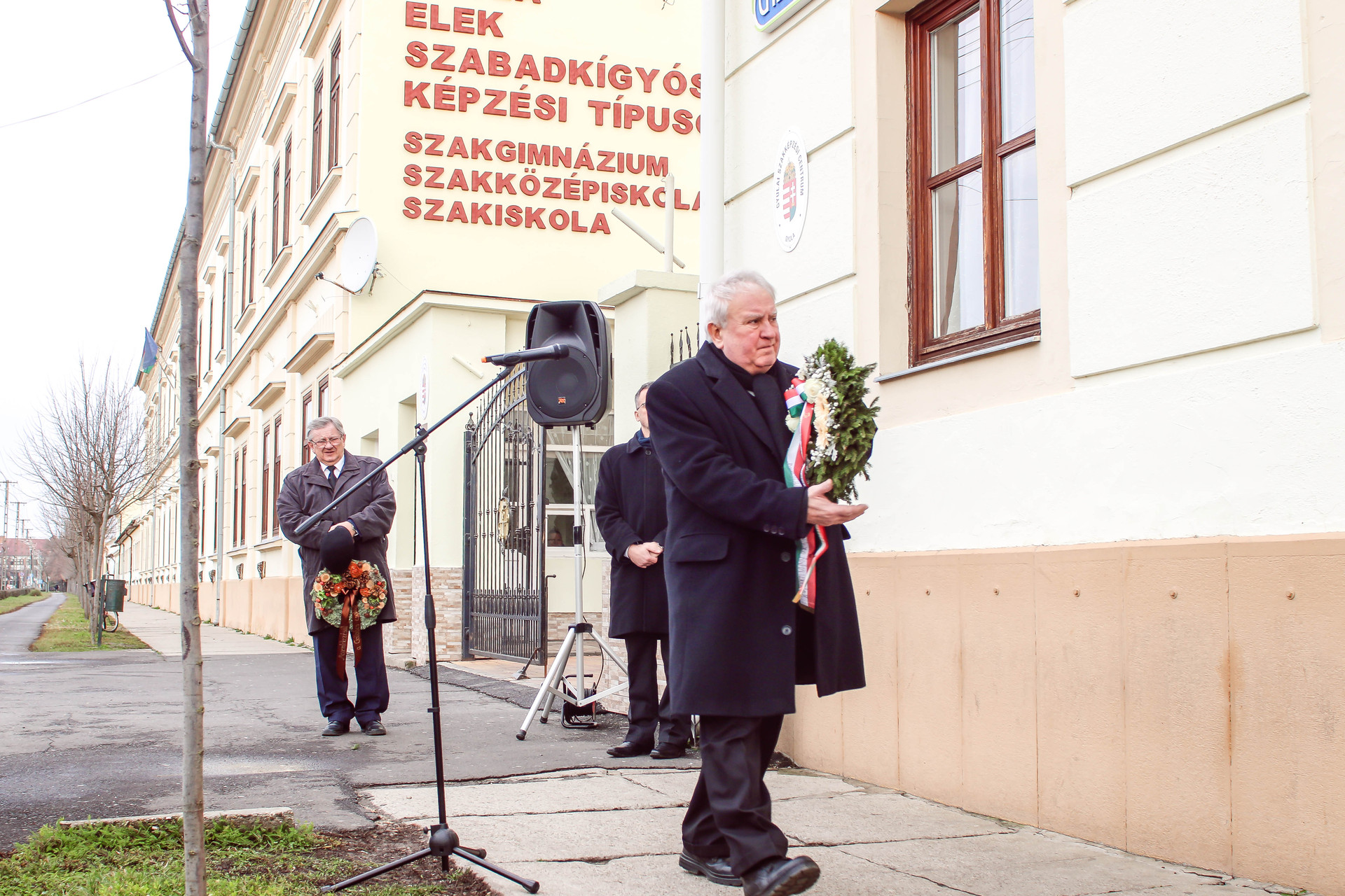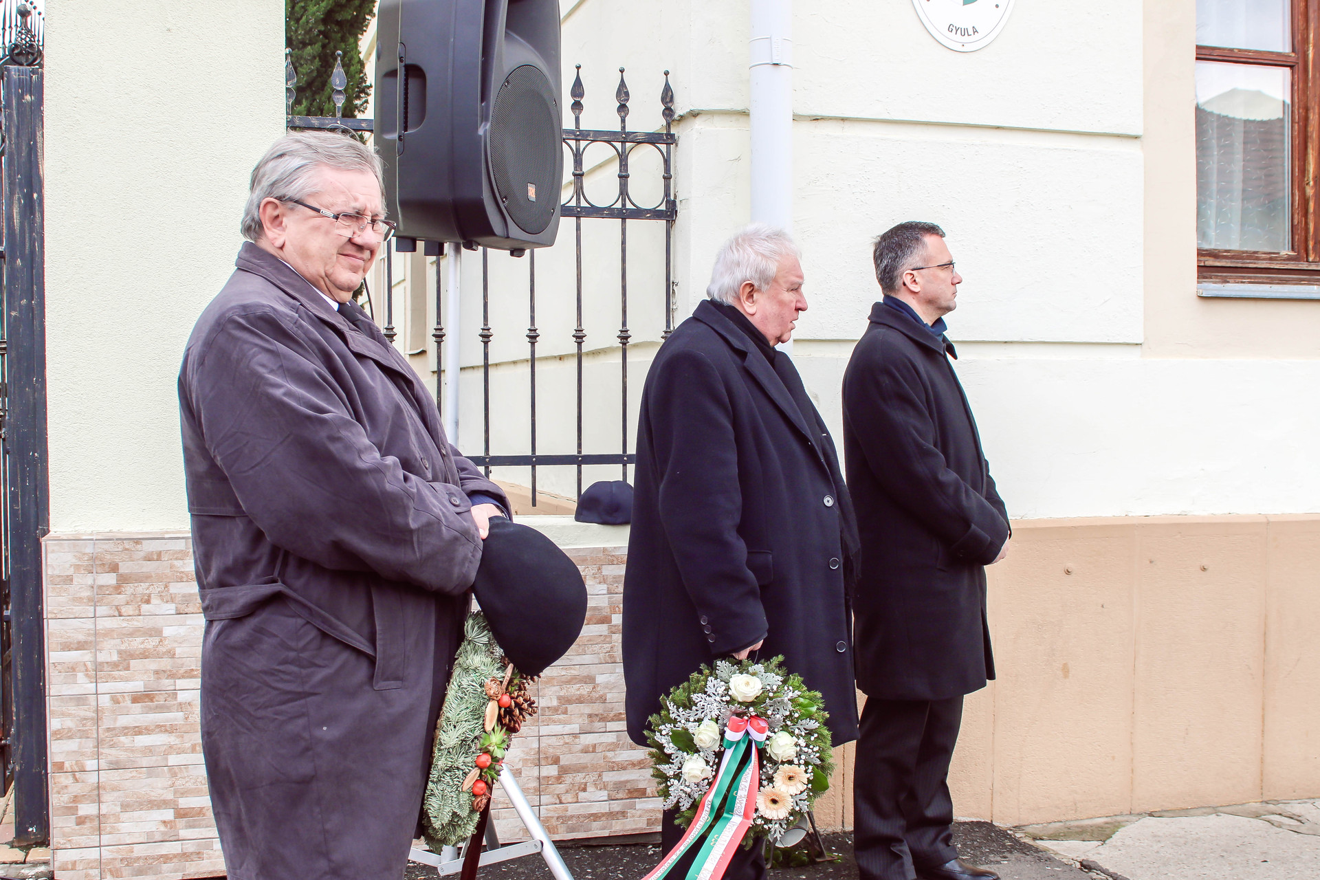 Az esemény végén az intézmény falán állított emléktáblánál koszorút helyezett el Gyula Város Önkormányzata nevében Alt Norbert, a mezőberényi és gyulai német önkormányzatok képviselői, Kovács József országgyűlési képviselő és Galbács Mihály önkormányzati képviselő.