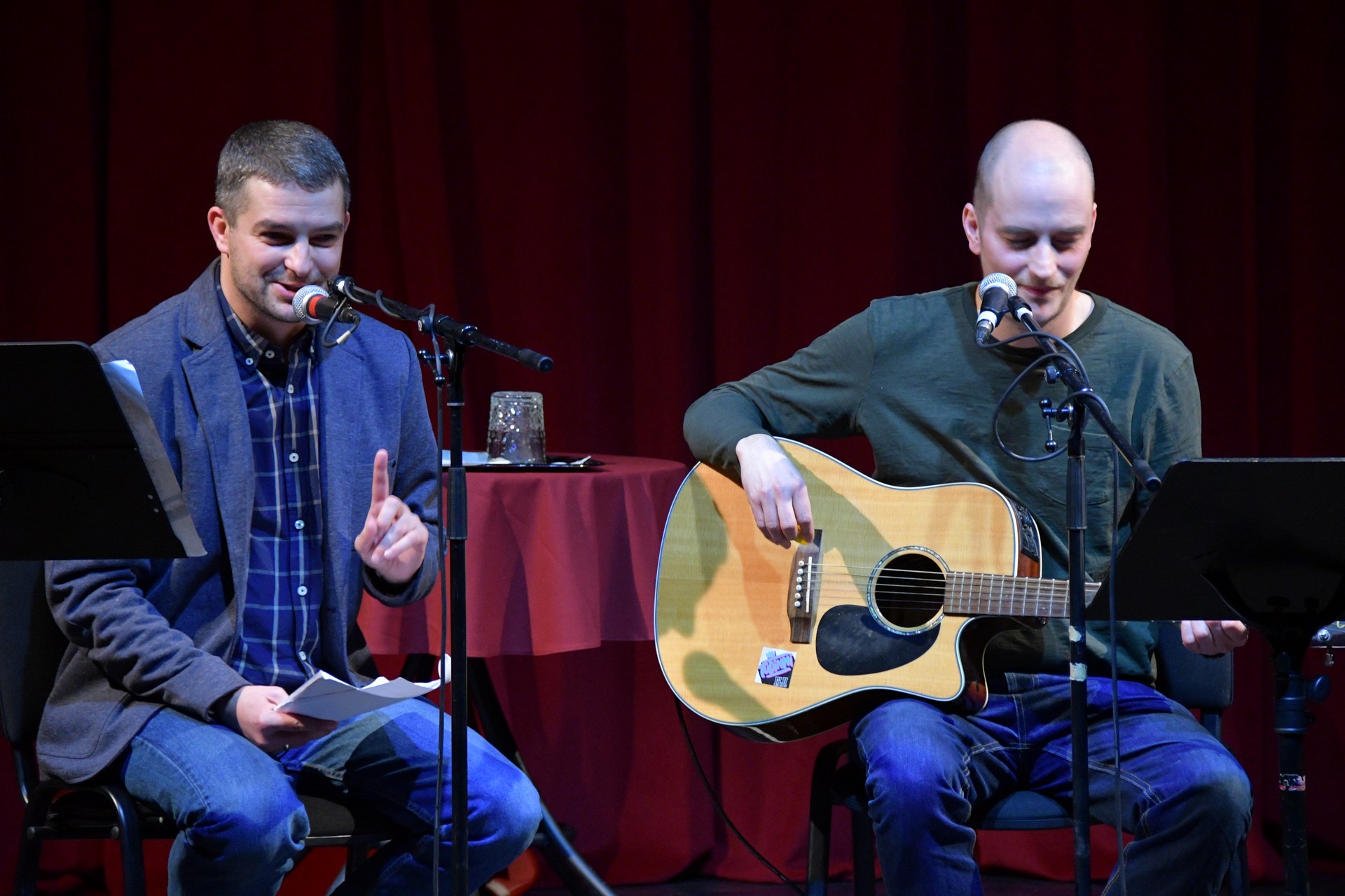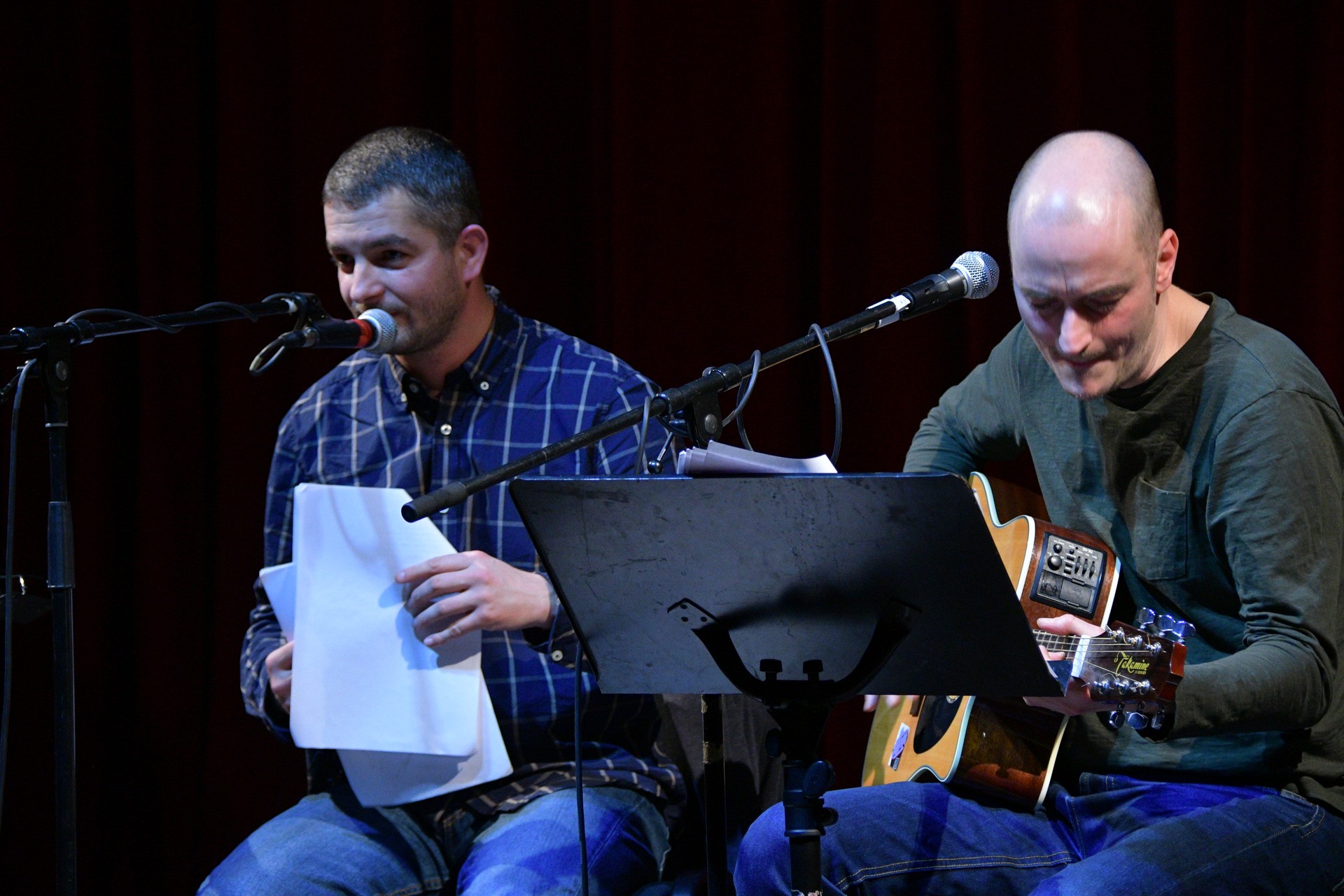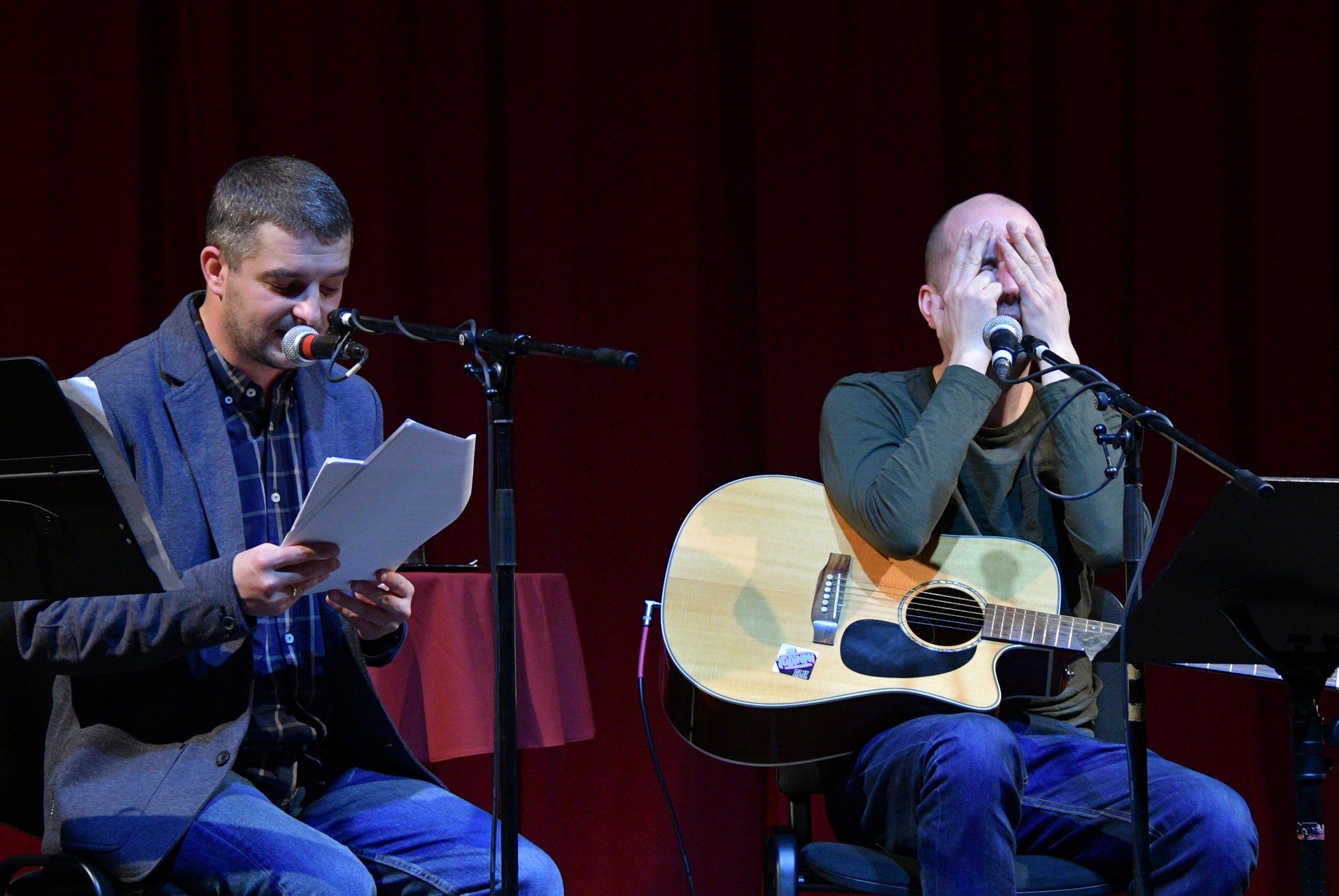 Az est szervező ereje a randomitás mellett mégis csak csoportosult valami köré, a közös mániák emlékei adtak az alapot: Petőfi Sándor, Beatles, a magyar kabaré nagyjai, mint Hacsek és Sajó. A kikényszerített humort legalább két ember mindig értette, noha az idő előrehaladtával egyre többen kapcsolódtak be az értők táborába, kacagtak, hozzászóltak, tapsoltak és énekeltek. Az emelkedettség észrevétlen kúszott be a sorok közé, egyszer csak arra lettem figyelmes, hogy a versek tartalma mélyül, a hangszeres kíséret és ének egyre profibb, a húsz éves barátság évgyűrűi szorosabban vonnak színpad felé miket, műértő nézőket.