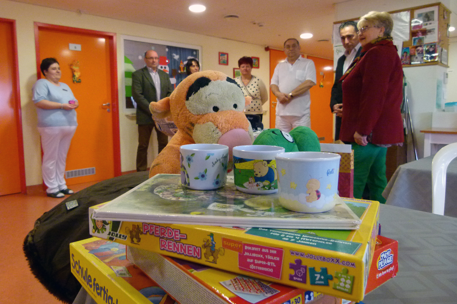 Az adományokat Becsei László főigazgató főorvos és Baji Sándor, a békéscsabai kórház gyermekosztályának vezető főorvosa vették át.