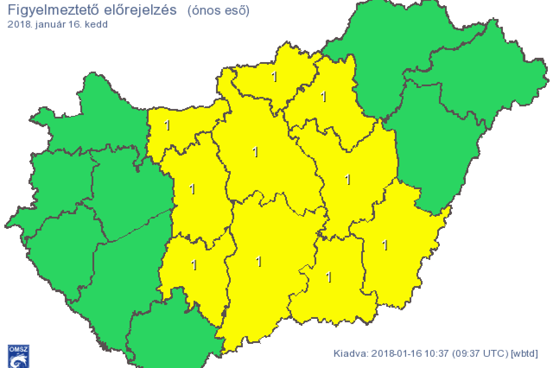 Gyenge ónos eső veszélye miatt Békés megyére is elsőfokú figyelmeztetést adott ki mára az Országos Meteorológiai Szolgálat.