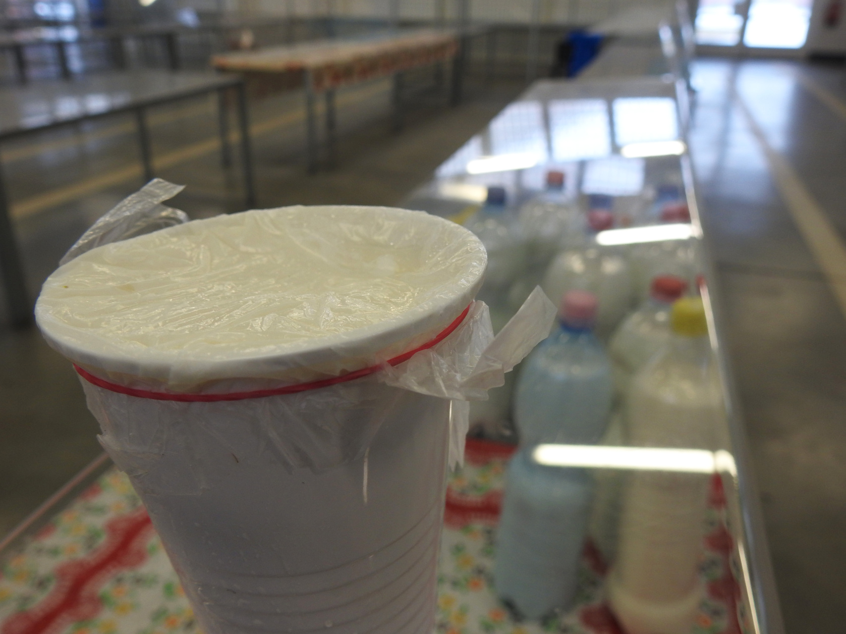 – Az aludttej tetejéről leszedjük a zsiradékot, és átszűrjük friss tejjel – ismertette az elkészítés módját az árus.
