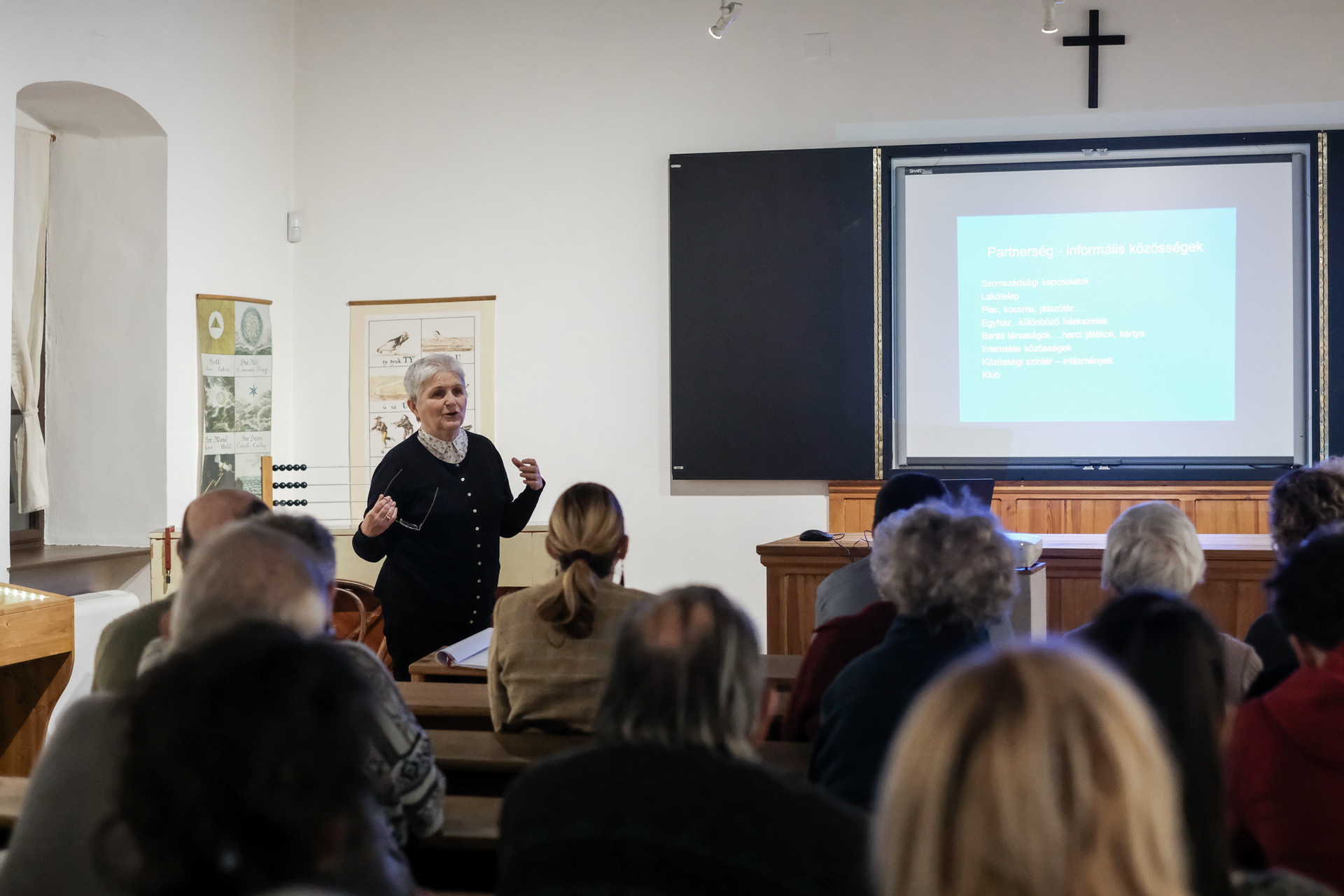 A projektnyitó esemény végén Pocsajiné Fábián Magdolna, a Közösségfejlesztők Békés Megyei Egyesületének titkára értekezett a közösségfejlesztési módszerekről, majd teával és tradicionális német süteménnyel kínálták a vendégeket.