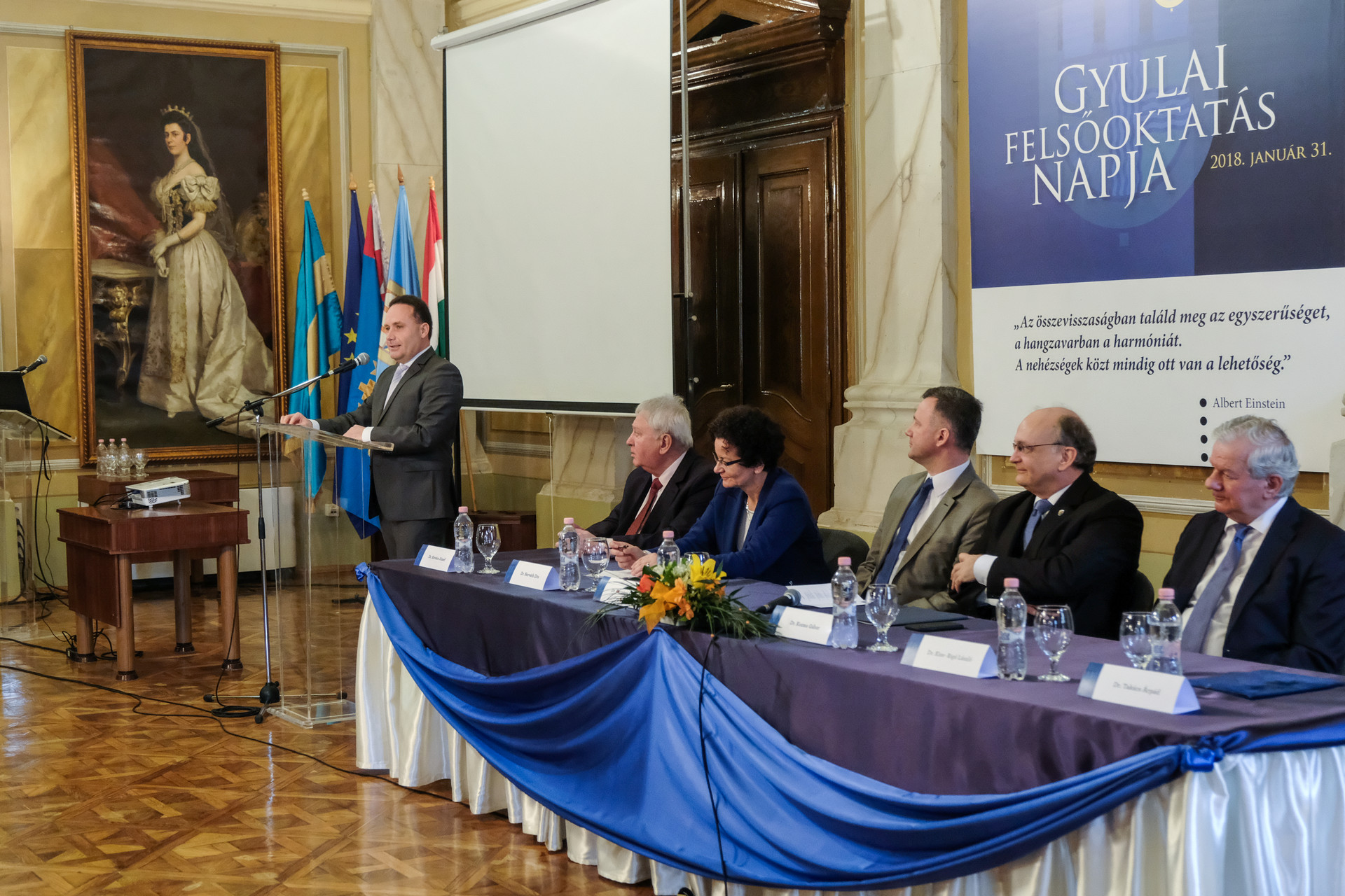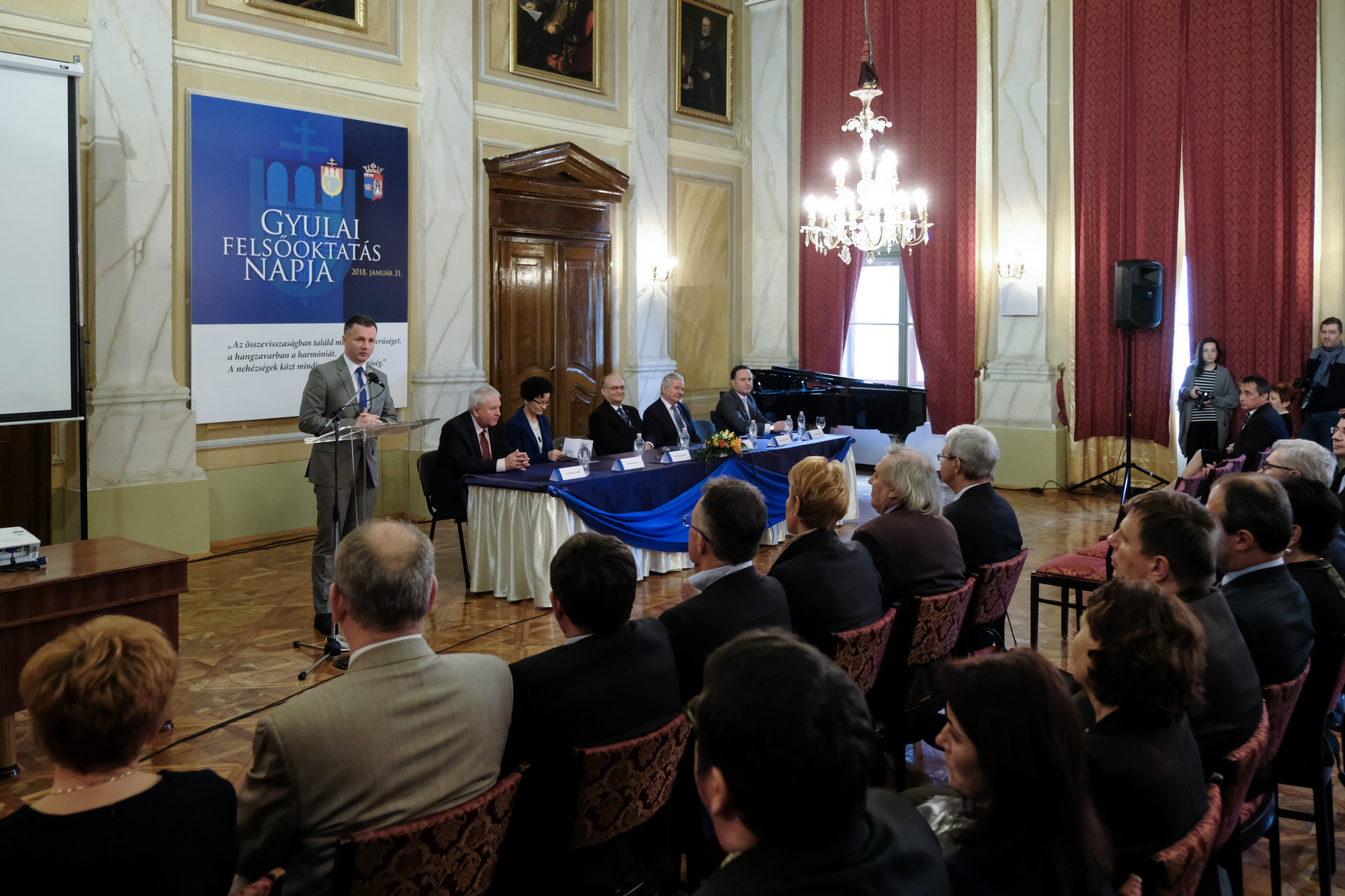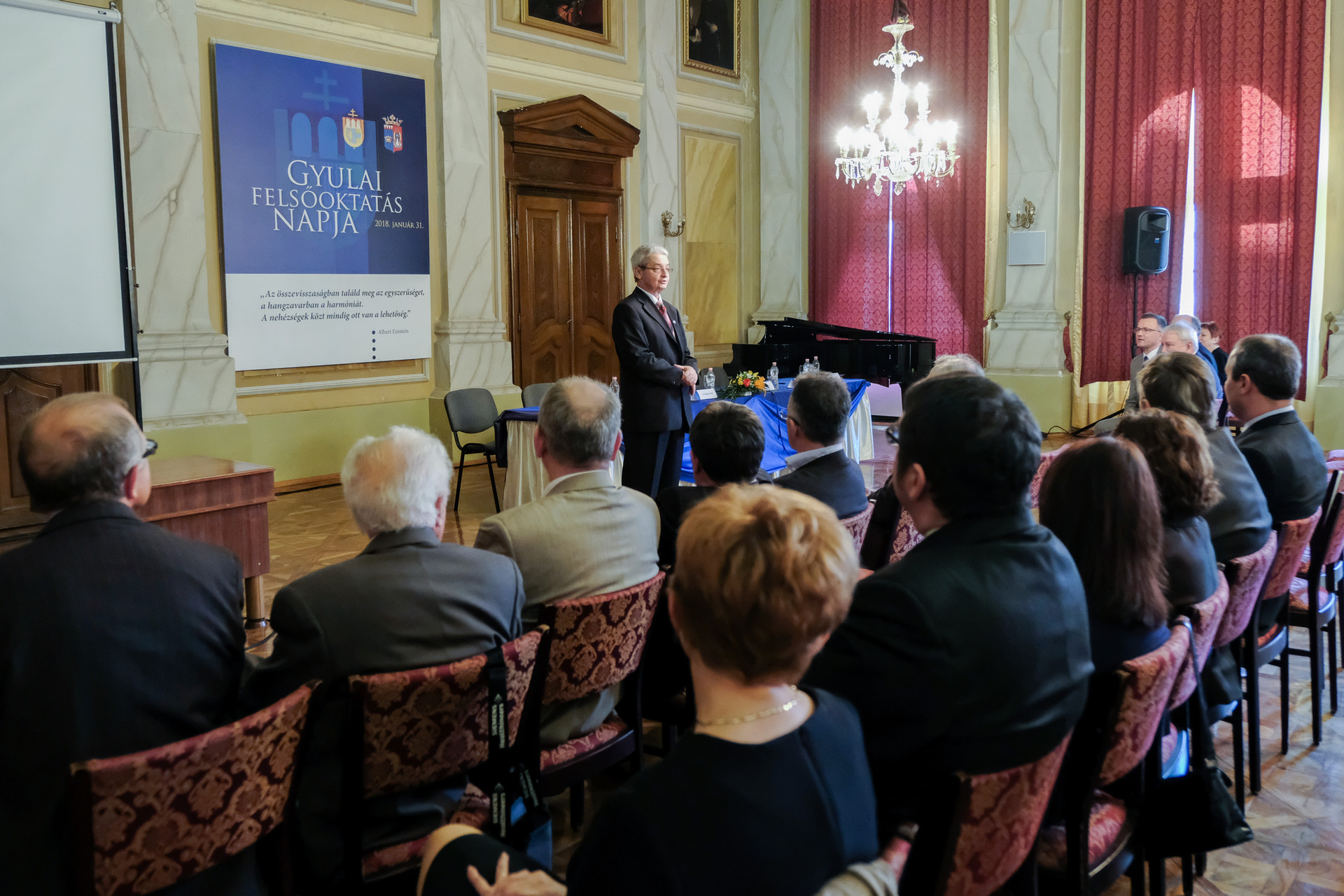 – Mindenekelőtt Gyula városát kell köszöntenem, mert ez a nap a város ünnepe, mindazoké, akik kötődnek hozzá – fogalmazott dr. Kozma Gábor. A Gál Ferenc Főiskola rektora emlékeztetett arra, hogy a gyulai képviselő-testület azért január 31-ét nyilvánította a gyulai felsőoktatás napjává, mert egy évvel korábban a Gál Ferenc Főiskola átvette, majd karrá szervezte a település egyetlen felsőoktatási intézményét.