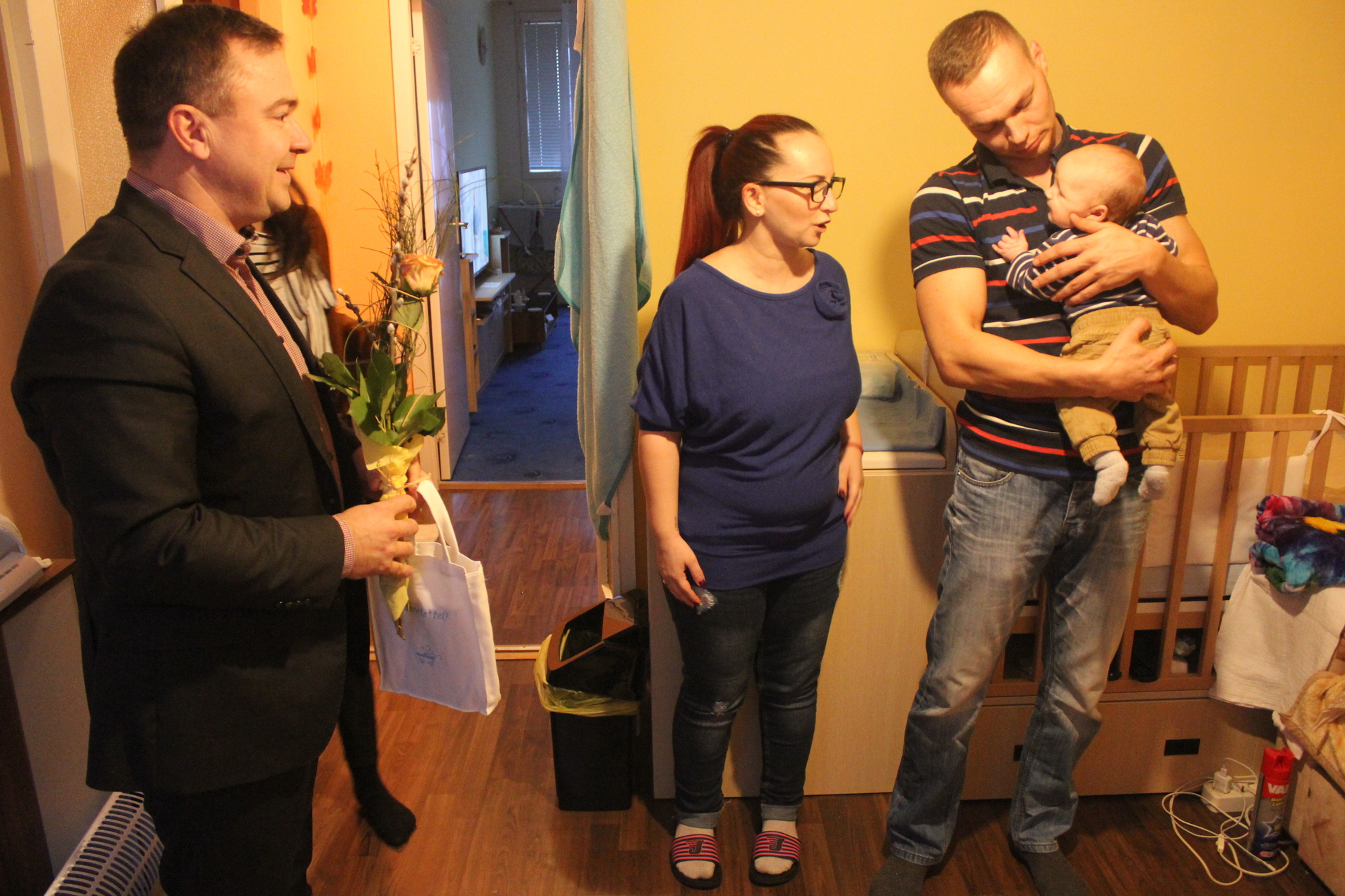 Február első napján Kónya István alpolgármester köszöntötte Gyepes Bencét, édesapját és édesanyját, Gyepes-Jován Katalint a gyulai Babaruha program keretében.