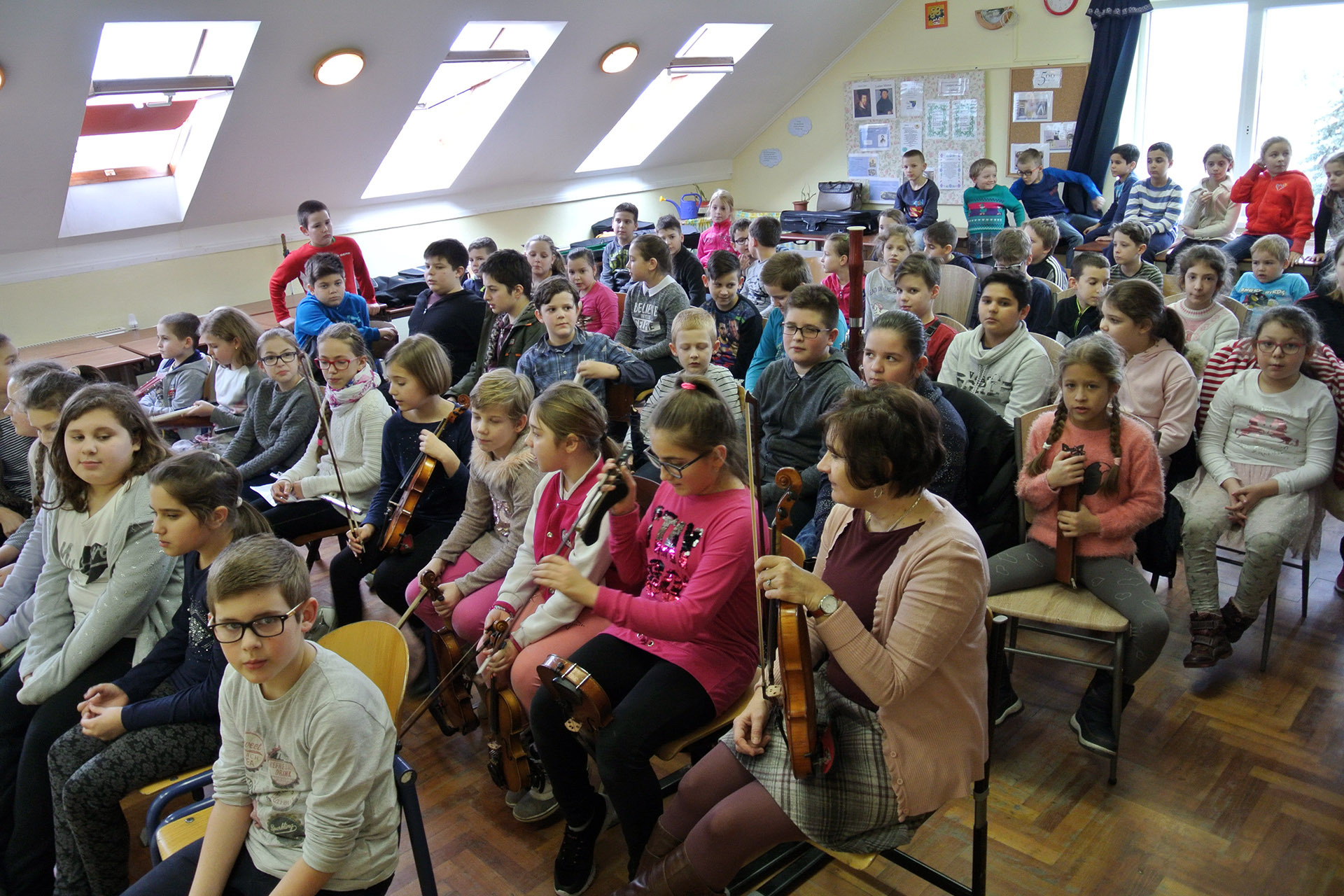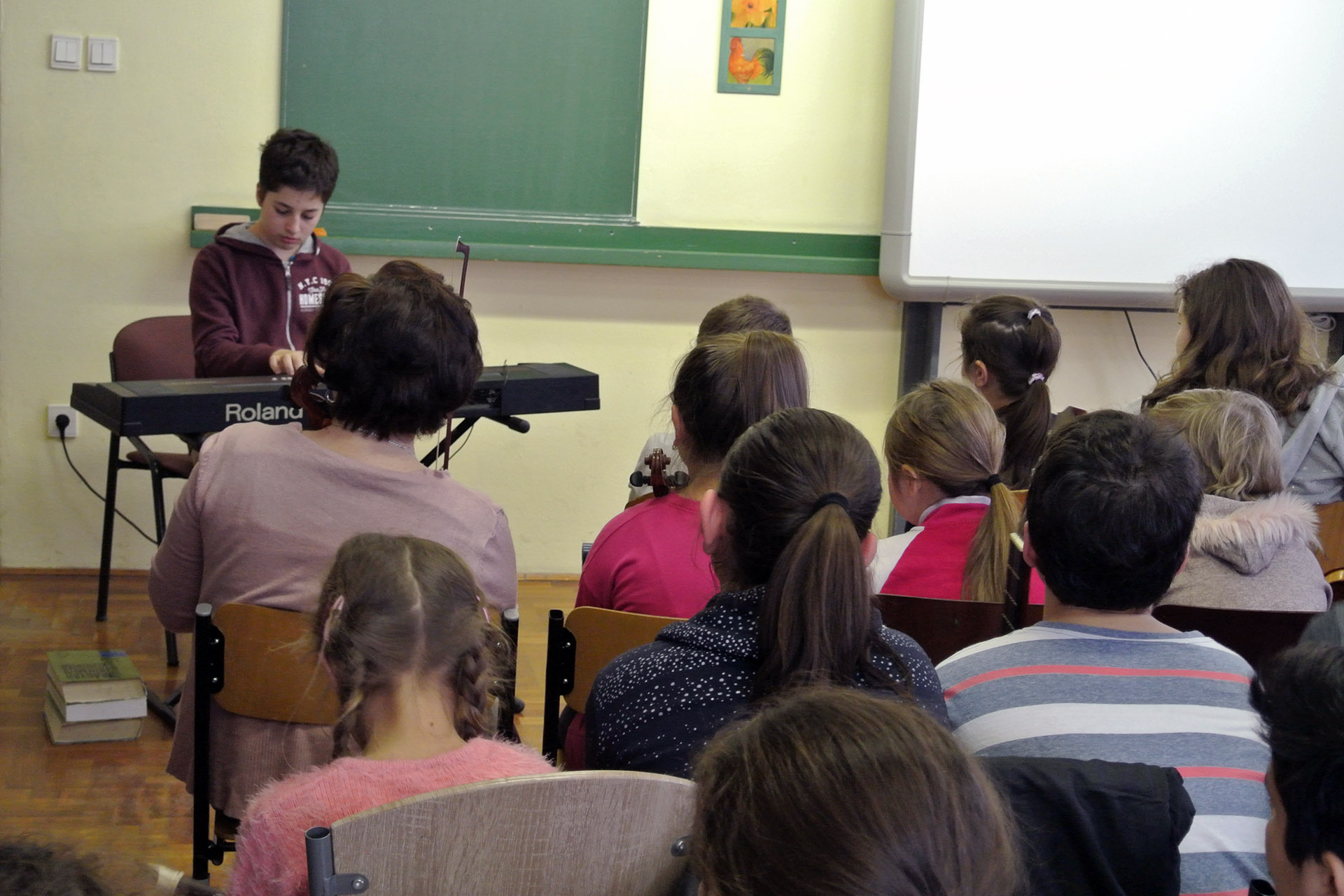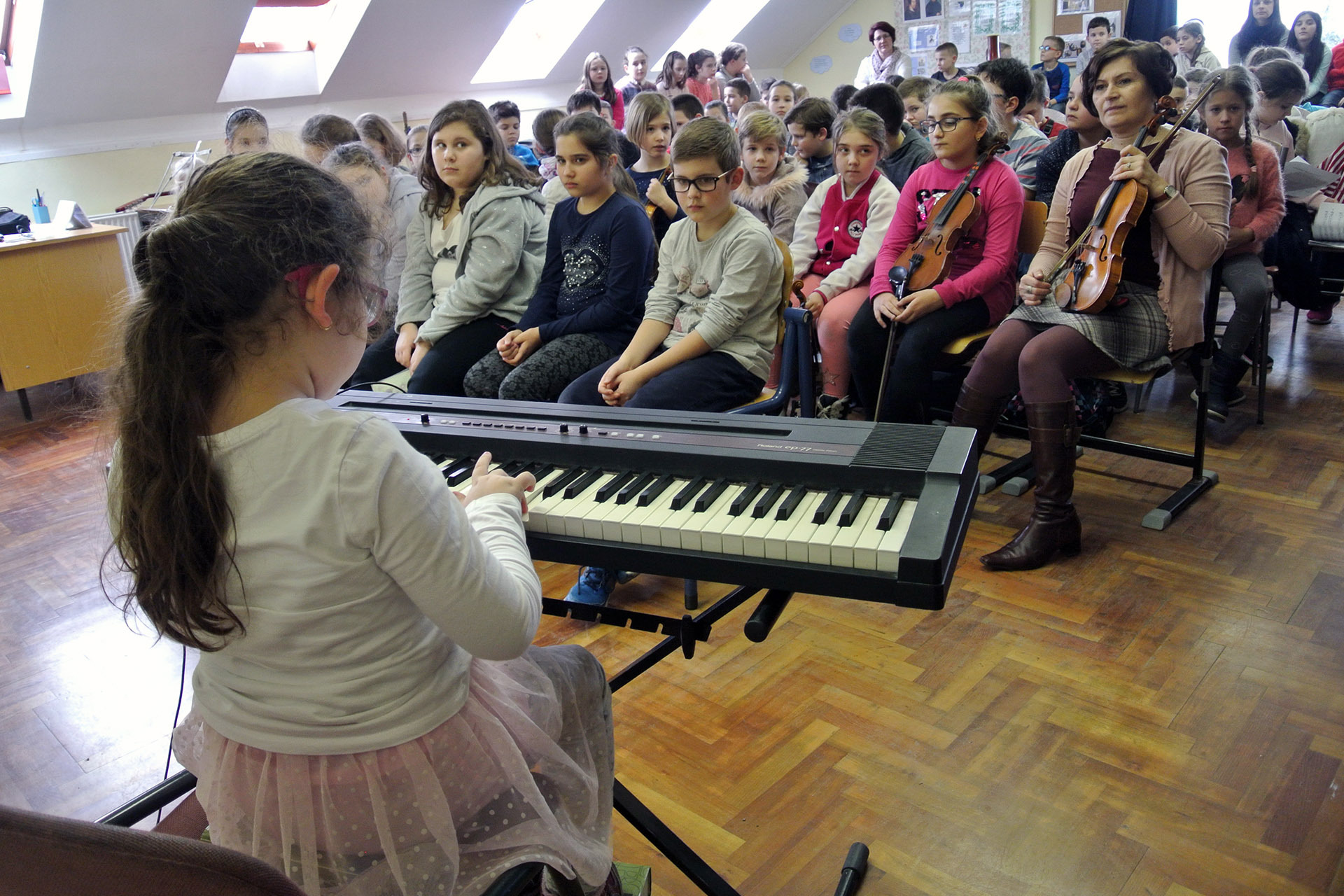 A furulyán, hegedűn és zongorán játszó nebulók mellett voltak, akik dalokkal készültek a zenei eseményre. A legkülönlegesebb előadások azok voltak, amelyekben több hangszer szólalt meg egyszerre.