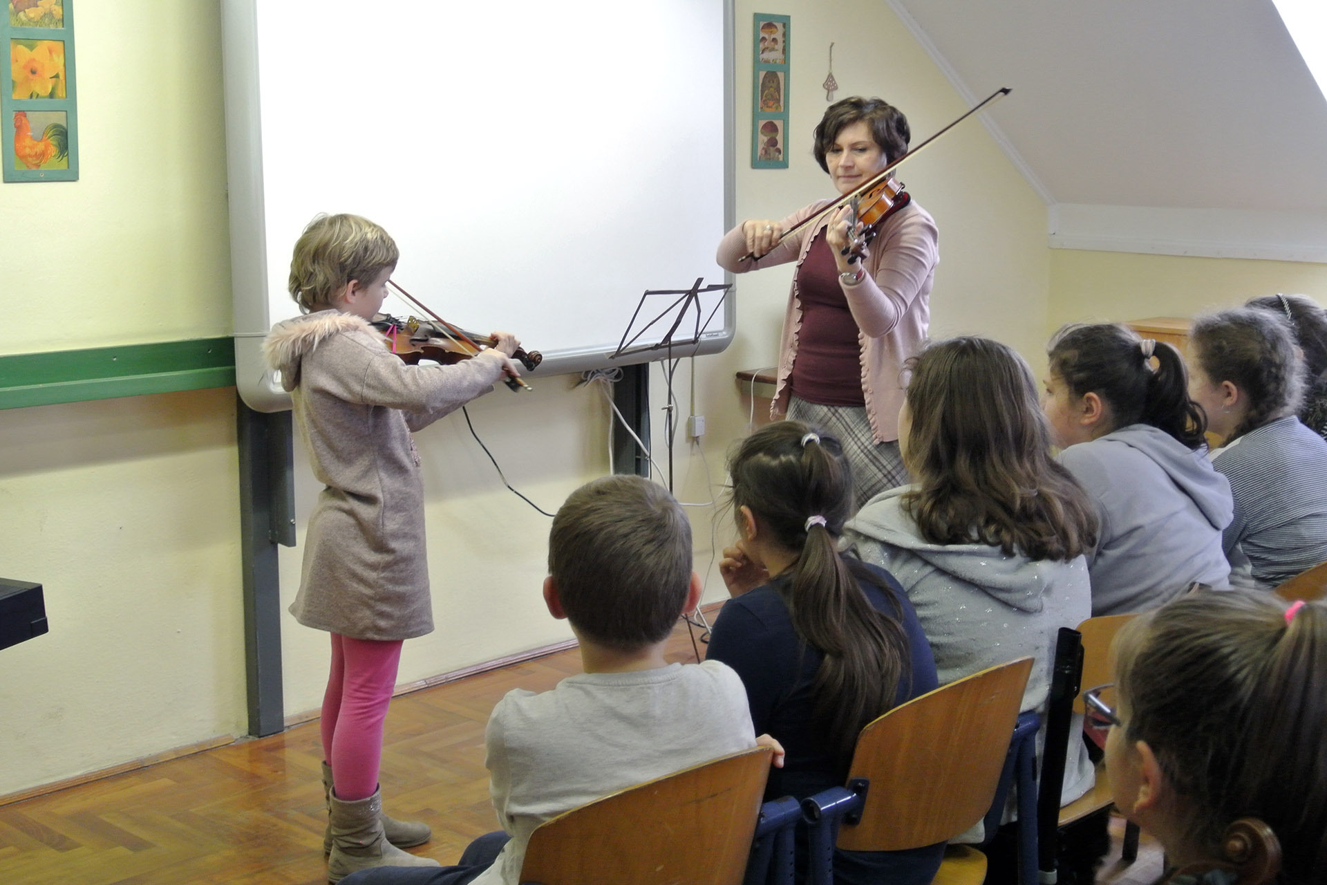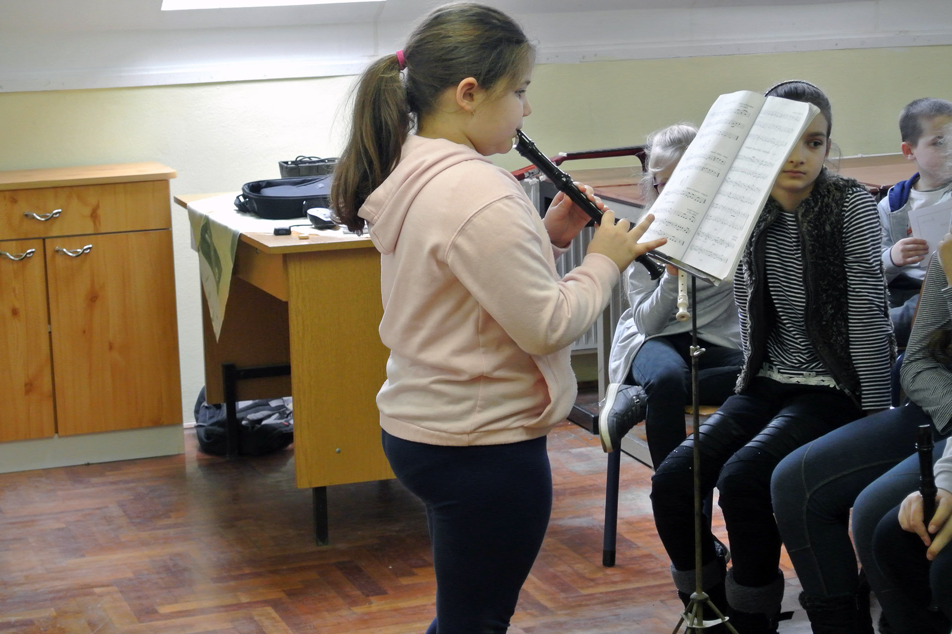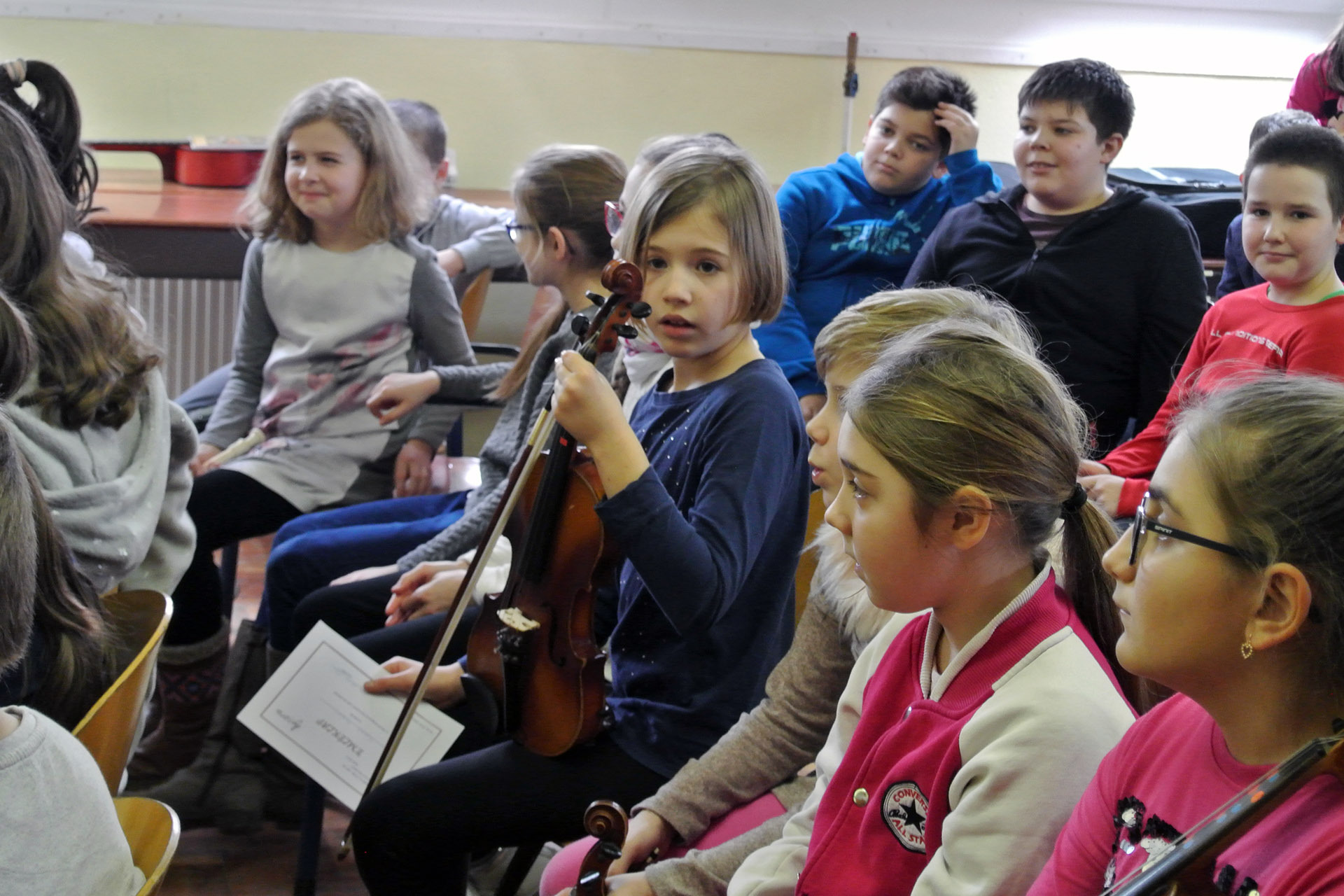 A furulyán, hegedűn és zongorán játszó nebulók mellett voltak, akik dalokkal készültek a zenei eseményre. A legkülönlegesebb előadások azok voltak, amelyekben több hangszer szólalt meg egyszerre.