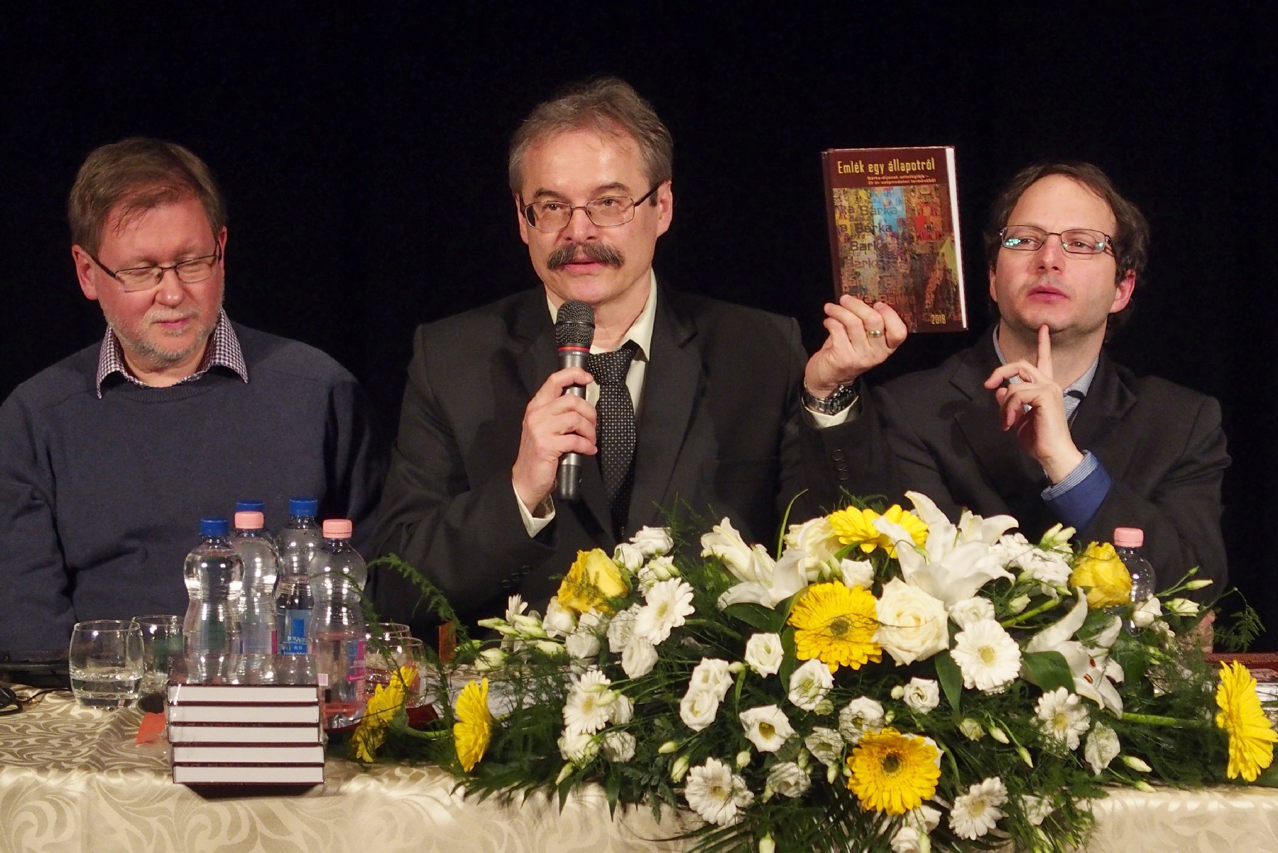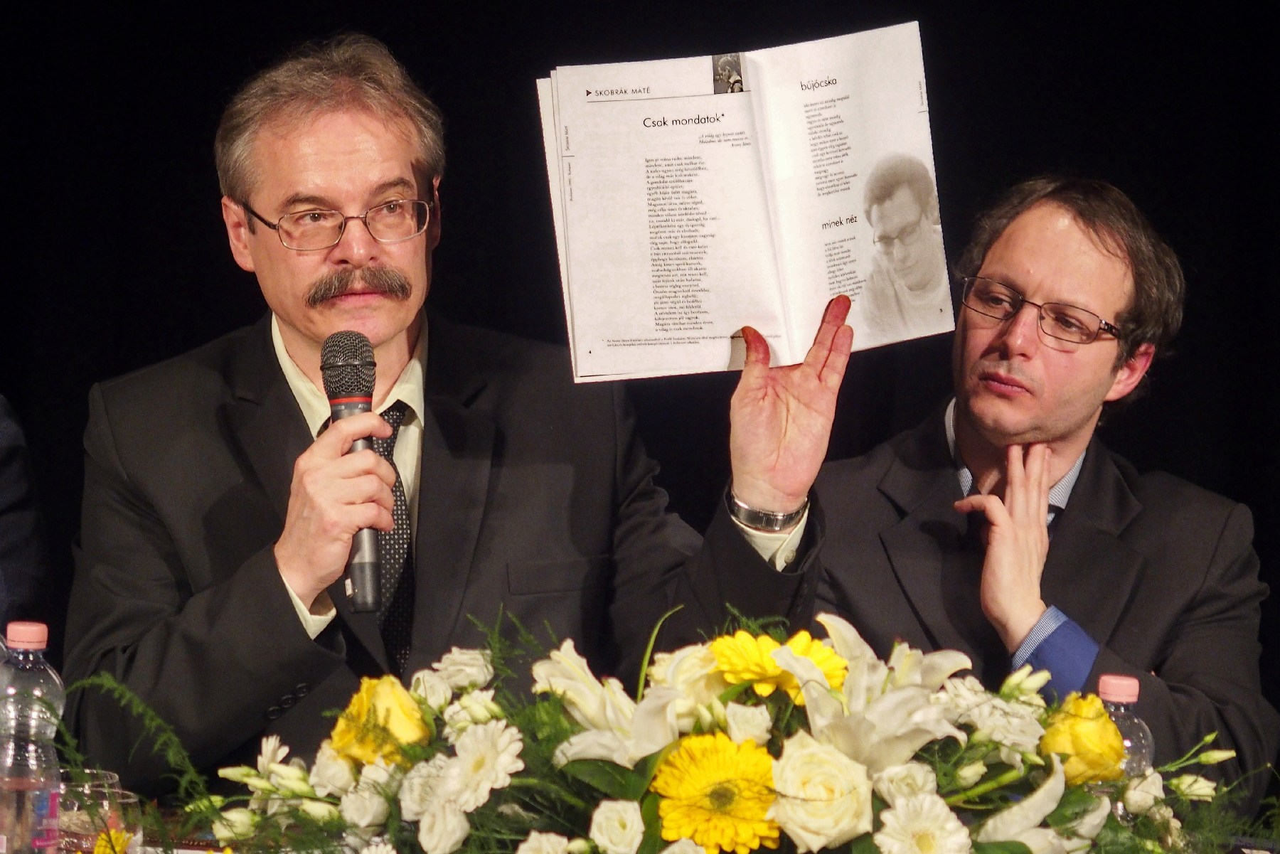 DR. Elek Tibor, a folyóirat főszerkesztője, a Bárka-díjasok – Vörös István, Pécsi Györgyi és Garaczi László –, valamint Seregi Zoltán