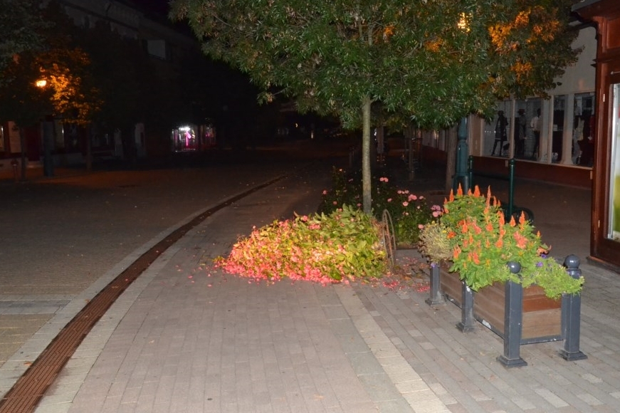 Több szemetest megrongált, néhányat közülük az útra lökött egy férfi 2017. szeptember 27-én, éjfél után Gyulán. Egy italozóból tartott hazafelé és a szemetesek mellett több virágállványt is felborított, dísznövényeket tépett ki a földből.
