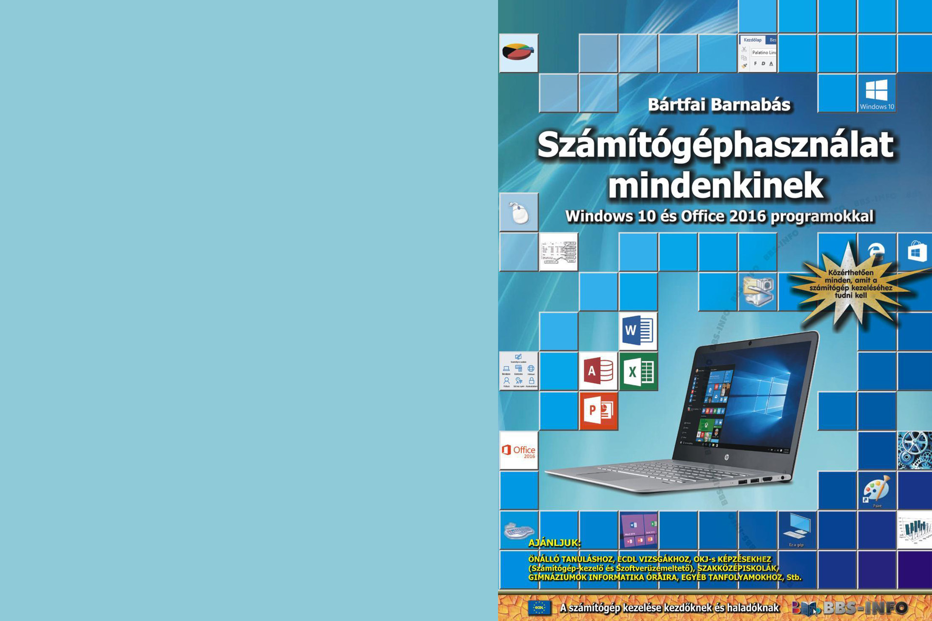 A könyv segítségével a Windows 10 és Office 2016 programokkal kapcsolatos ismeretek sajátíthatók el. Az alapoktól indulva vezeti olvasóját az általános műveltséghez tartozó ismereteken át a gyakorlati tudnivalókig. A könyv a kezdő felhasználók számára is könnyedén érthető, követhető. A szerző mottója: a felhasználónak azt kell megmutatni, hogy egy elvégezni kívánt tevékenységet, milyen programfunkció segítségével tud megoldani úgy, hogy a megtanultakat a mindennapi életben is kamatoztathassa.