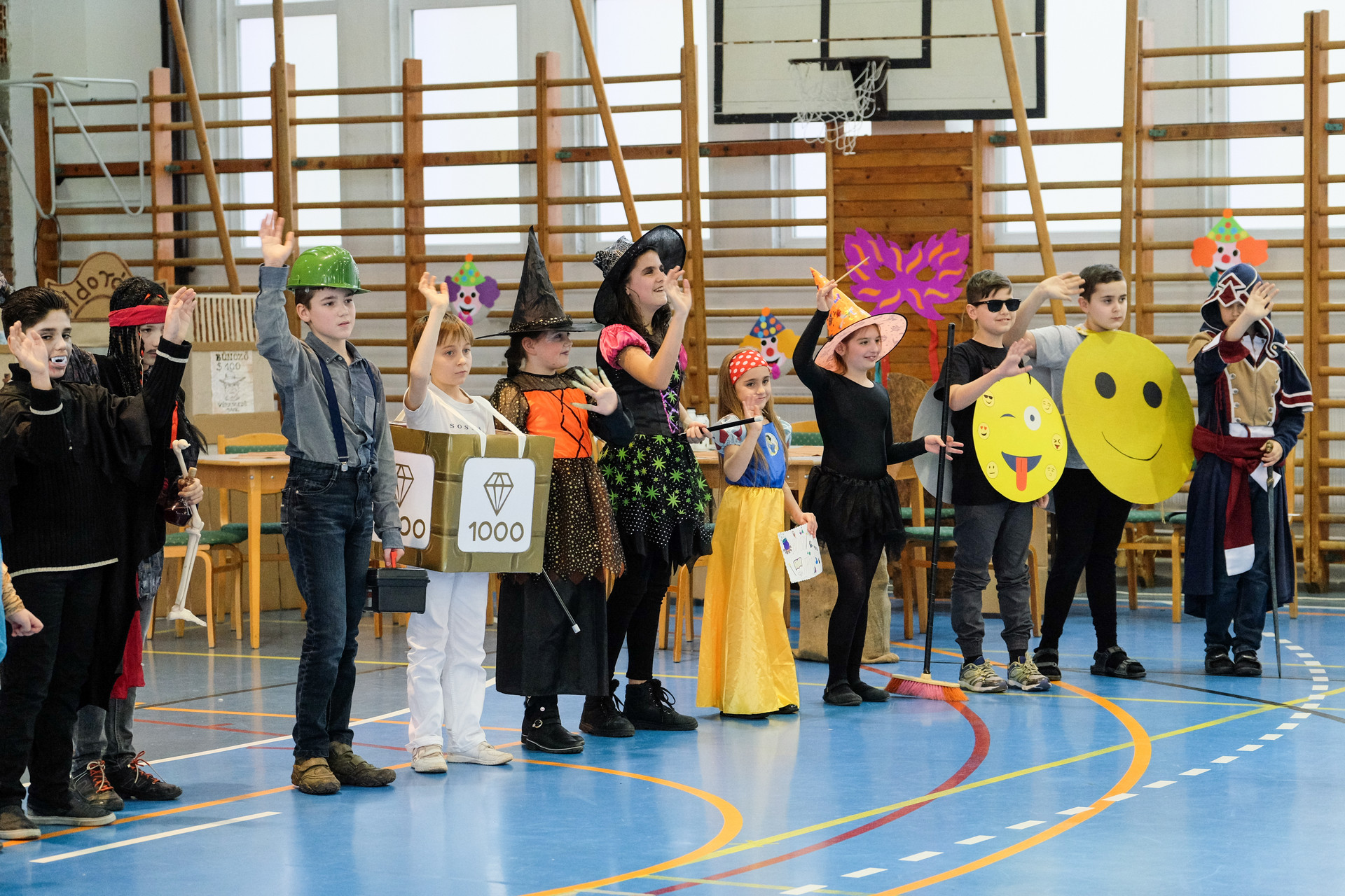 A legkisebbek farsangja a második évfolyamosok műsorával kezdődött, majd az osztályok felvonulásával folytatódott. A rendezvényt ezúttal is hatalmas buli és közös tánc zárta, és természetesen a finom farsangi falatok sem maradtak el. Idén az iskolai programon közönségként részt vettek a Béke sugárúti óvoda, a németvárosi óvoda és a törökzugi óvoda csemetéi is.