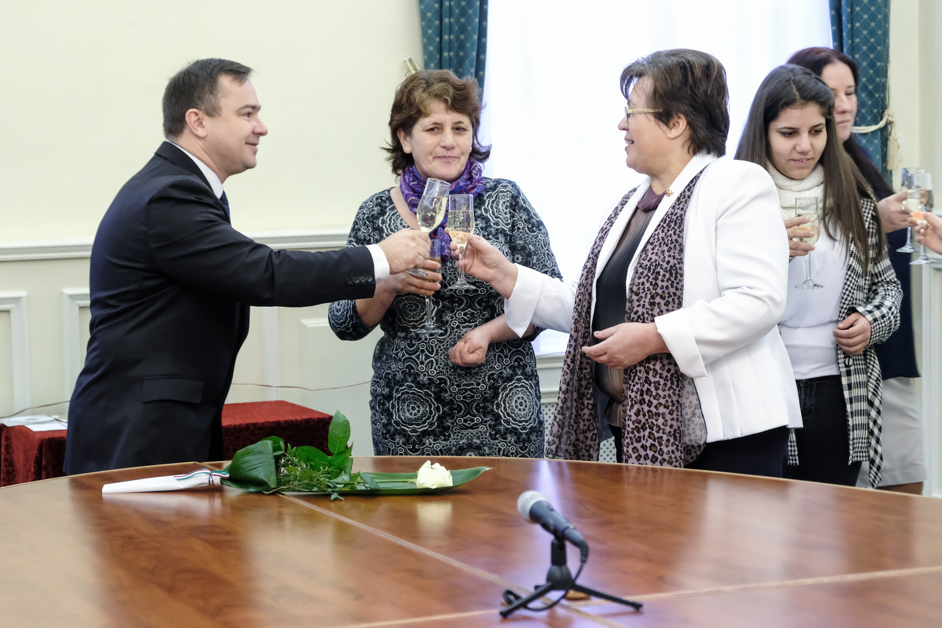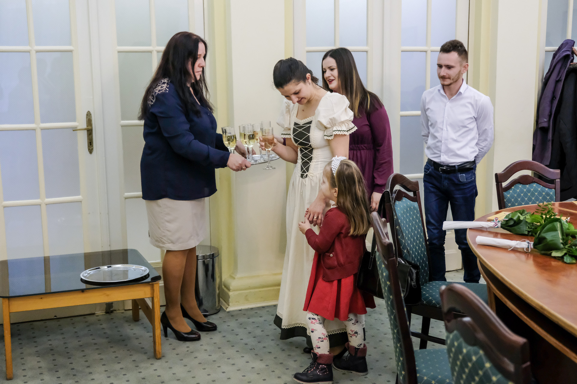 A fogadalomtétel után az új magyar állampolgárok egyenként átvették a honosítási okiratokat, majd az ünnepi esemény alkalmából pezsgővel koccintottak a résztvevők.