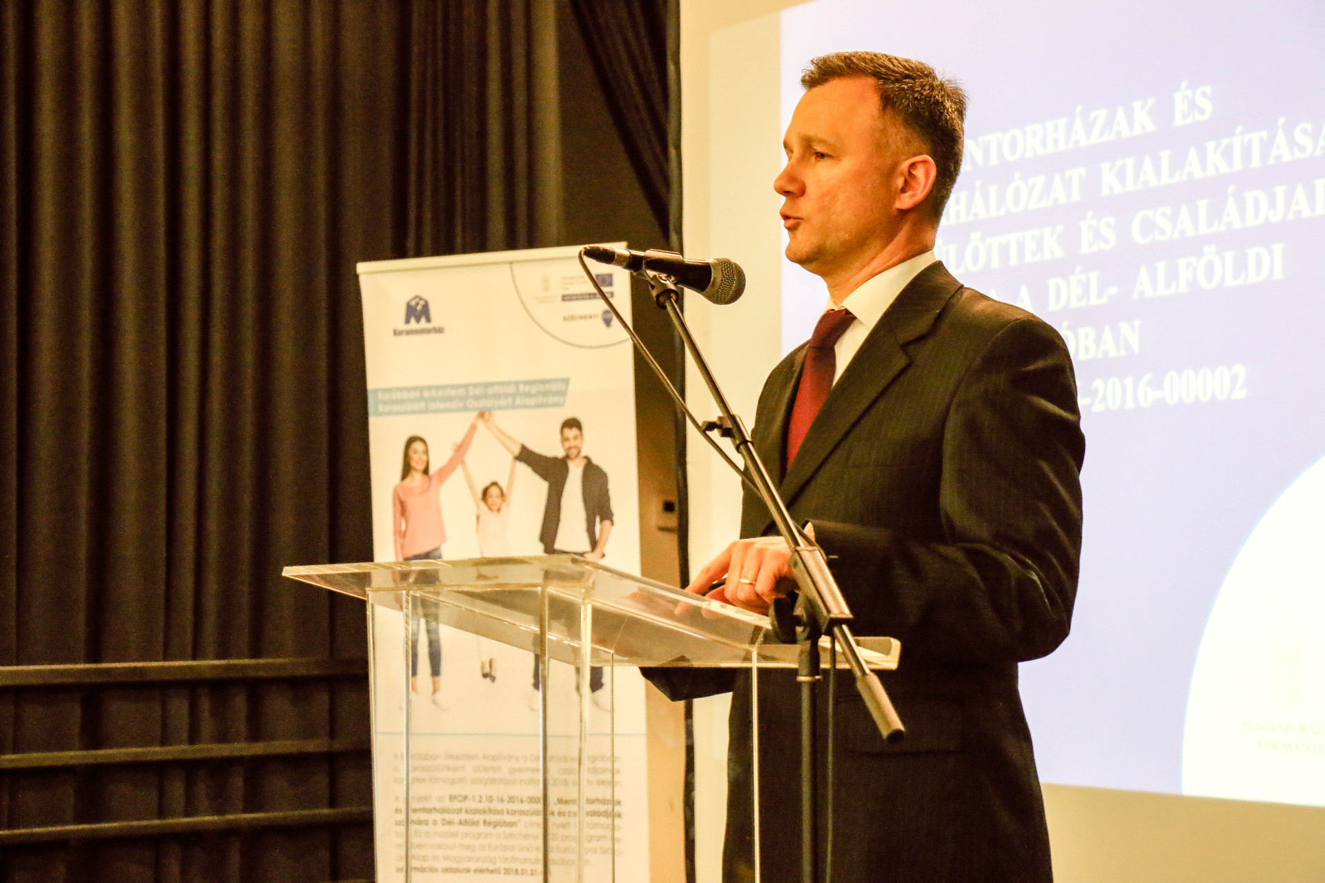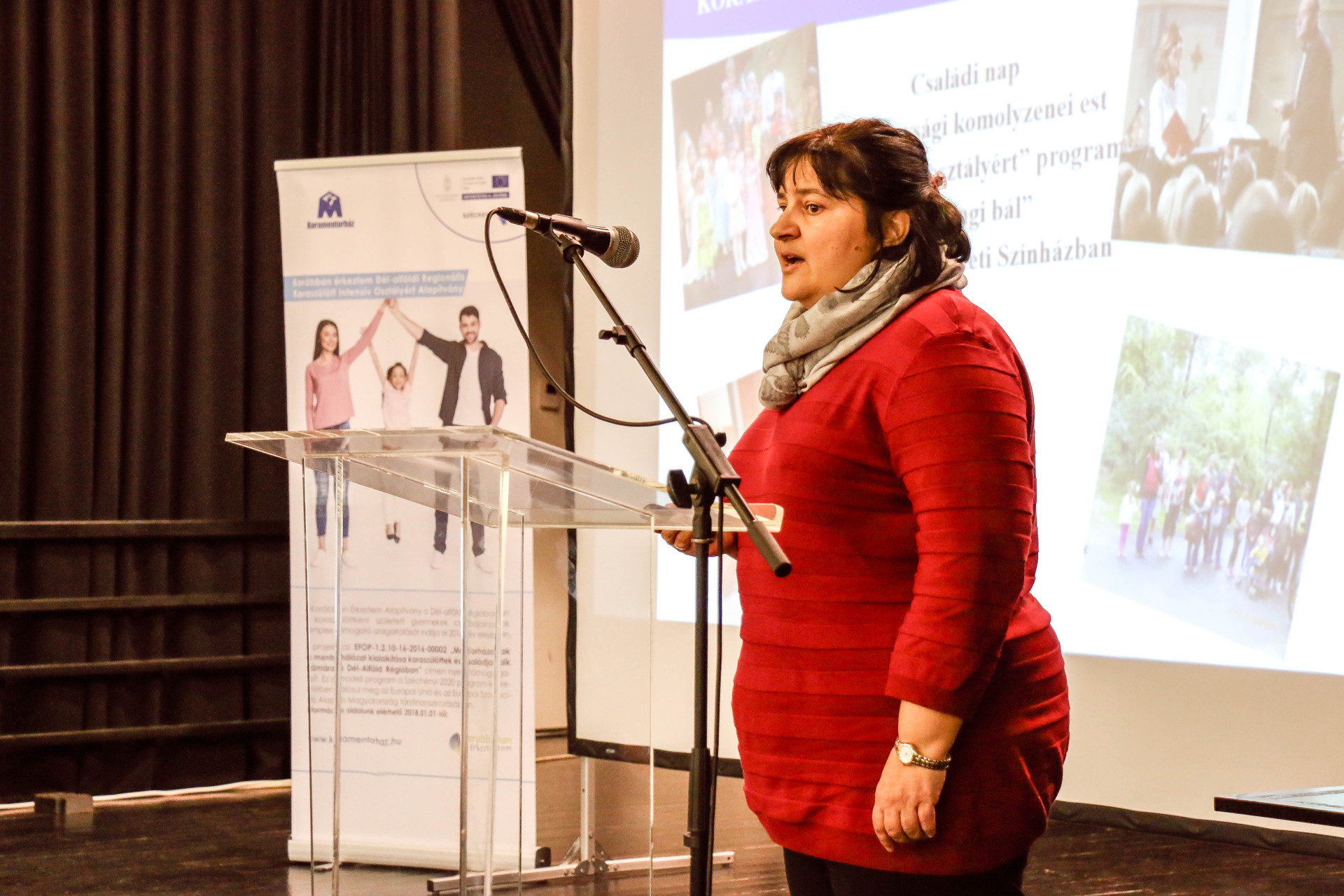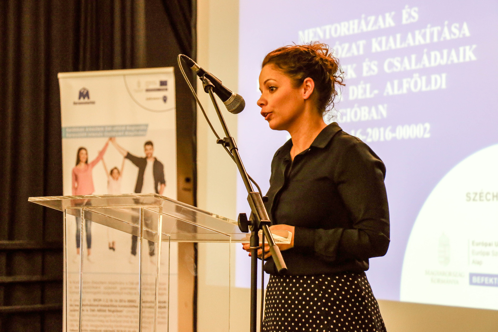 A projekt átfogó tartalmát Monostor Dóra ismertette. Elmondta, 2012 óta az alapítványnak rengeteg aktivitása van, többek között komfortos szállásokat rendezett be az érintettek részére. Beszélt családtámogató szolgáltatásaikról, és utalt arra, hogy tevékenységük kísérleti jellegű, hisz Magyarországon még nem volt ilyen. Most három régió kapott rá alkalmat, köztük Békés megye, ennek köszönhetően a veszélyeztetett várandósok támogatása Gyulán már elérhető, és ez egyedülálló az országban.