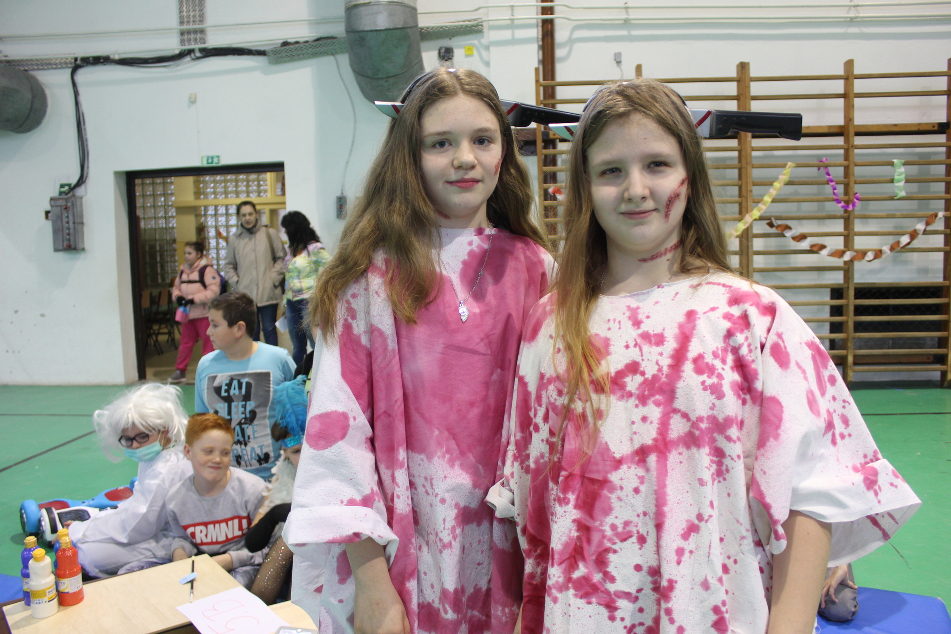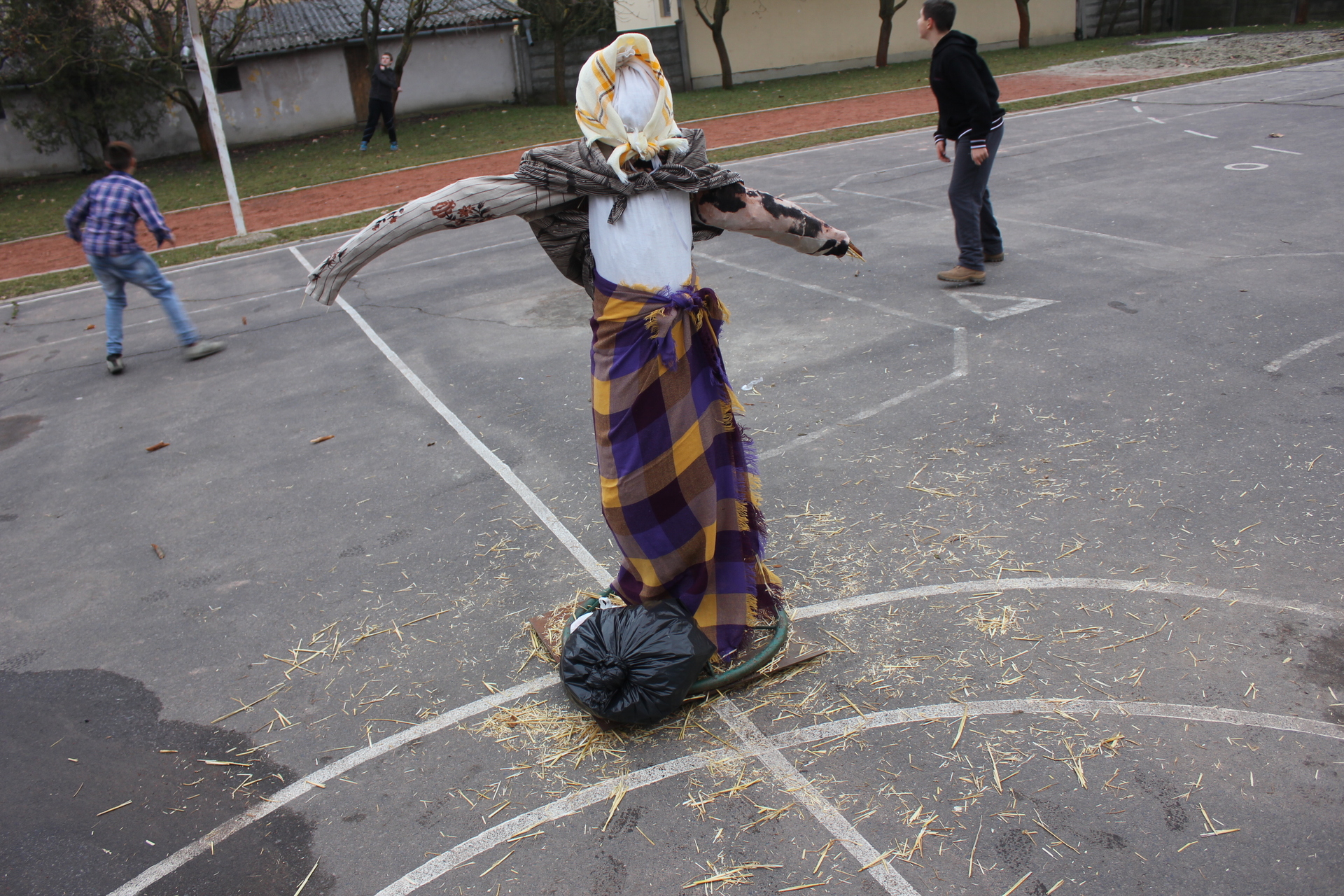 A bevonulás után a farsangi hagyományról osztotta meg gondolatait Balogh Imréné DÖK-öt segítő pedagógus, majd megkezdődött az osztályok közötti verseny: álarcfestés, kvíz, versírás, puzzle várta a tanulókat. Közben kiszebábut készítettek az udvaron: az emberformát szalmával kellett megtömni, és ruhadarabokkal felöltöztetni.