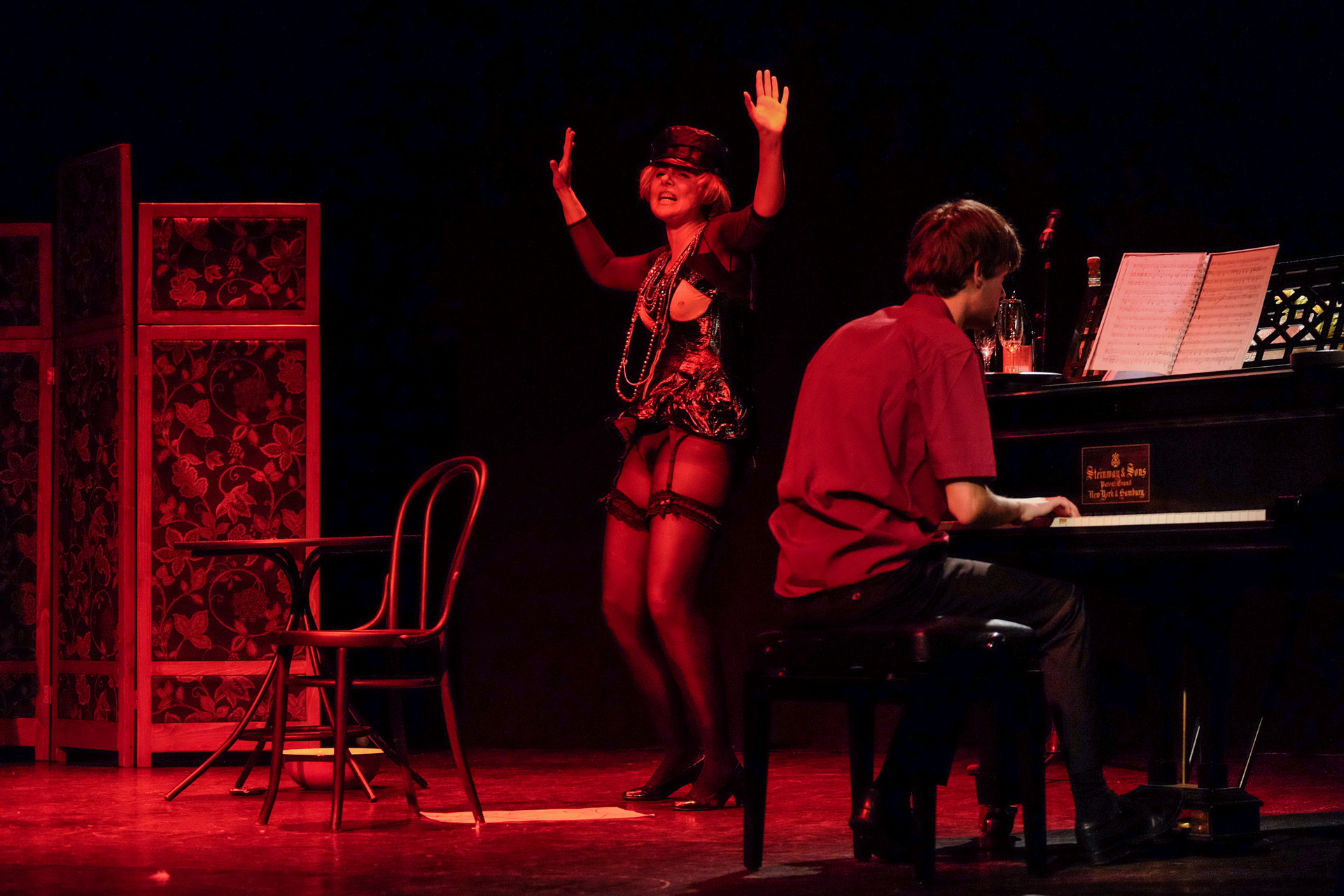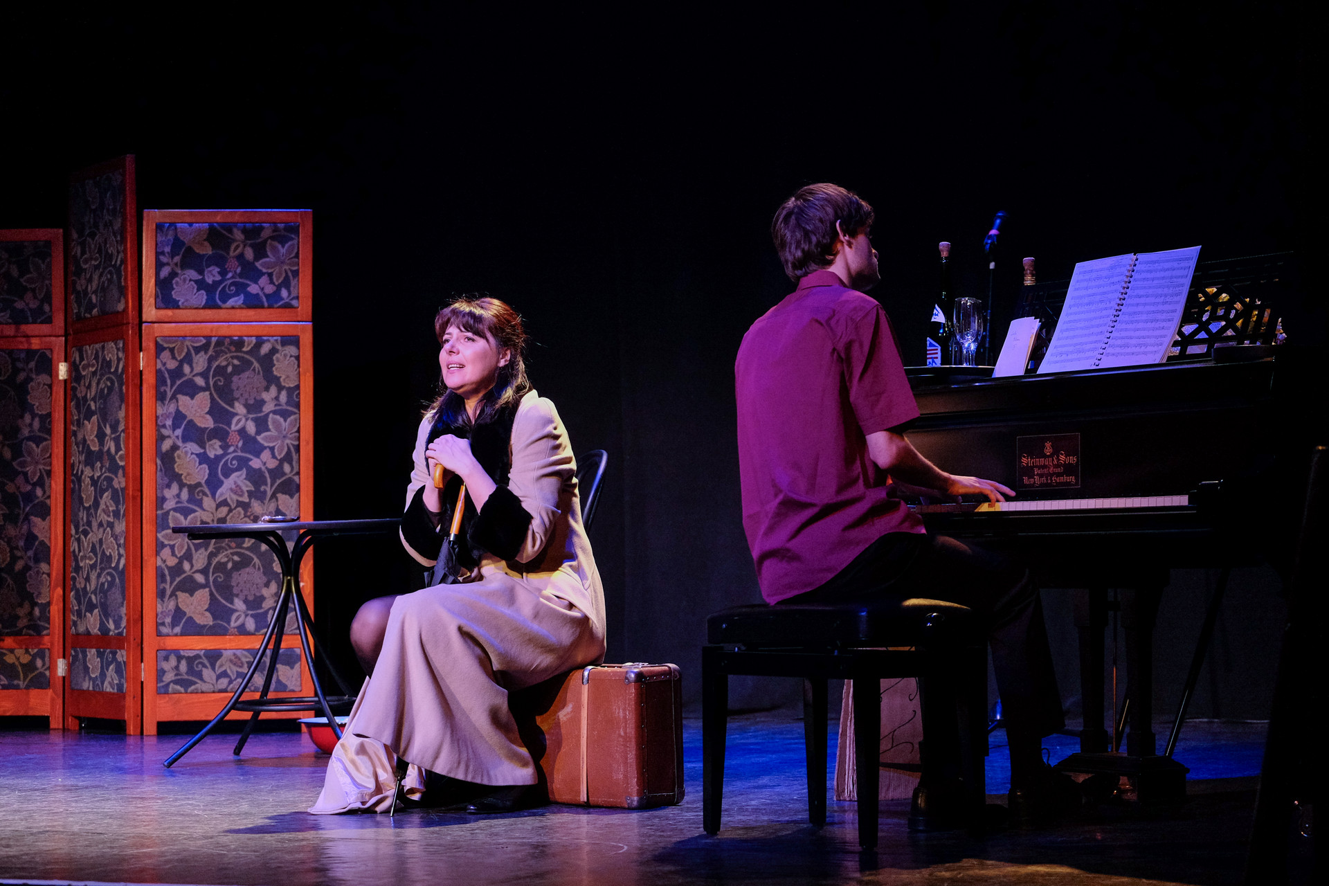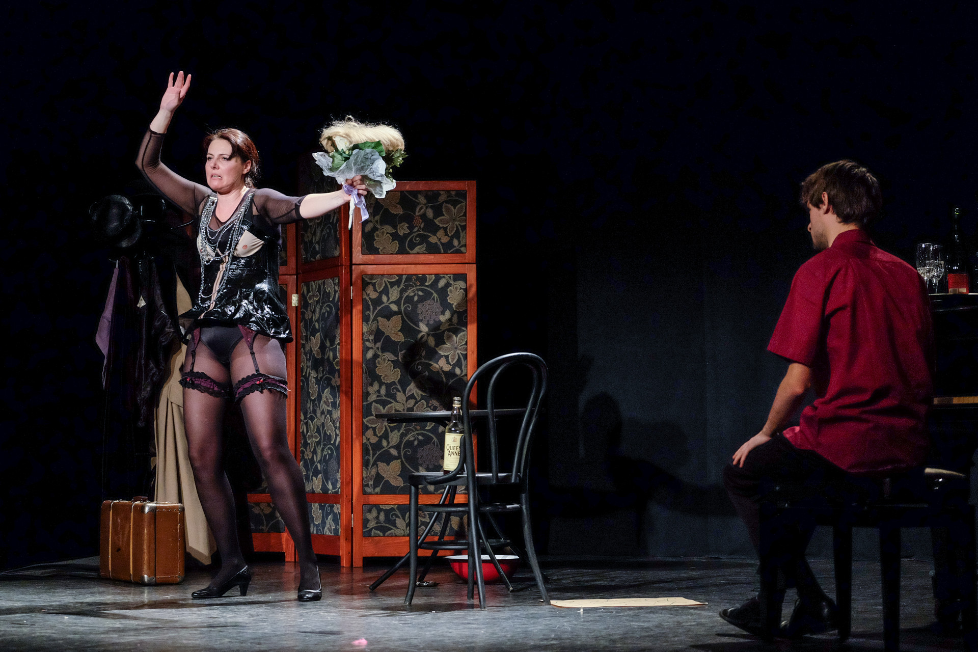 Merthogy nem a telóját nyomkodó nemzedék, az biztos. De még a miénk sem. A rengeteg manír és közhely (hogy közhelyesen fogalmazzunk), a nagy múltú, mára viszont kikopott színpadi megoldások (a kellemetlen tartalmú iratot megeszik, a dugót a fogaival húzza ki a nő az üvegből, a széket felrúgja, amikor dühös, az utazást pedig azzal jelzi, hogy egy lavórban vízre bocsát egy kis papírhajót) és a ripacskodás (a zongorista, Szép András remekül ért a hangszeréhez, de sajnos néha felállítják, és belekomponálják a szöveges részbe) már az elején kimondatta velünk, hogy nem, ez sajnos nem a mi műfajunk. Ettől függetlenül a jeleneteken jól mulató diákok gyűrűjében nem lehetett nem élvezni a látottakat.