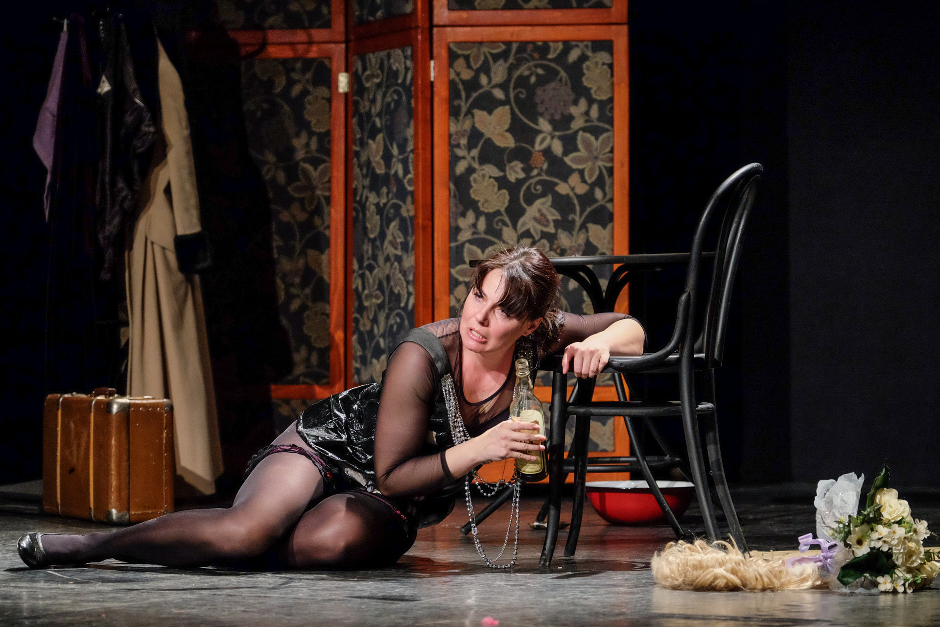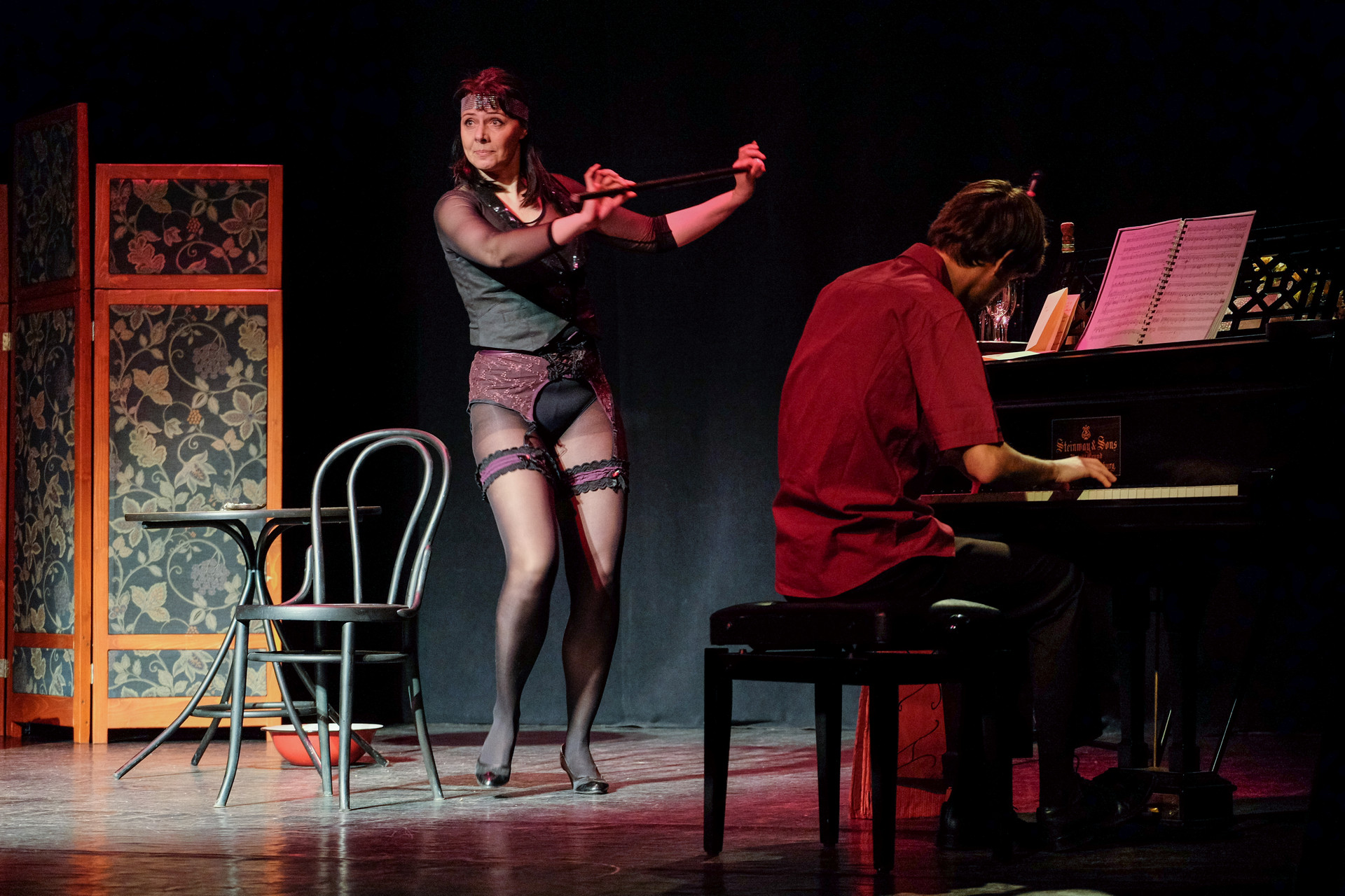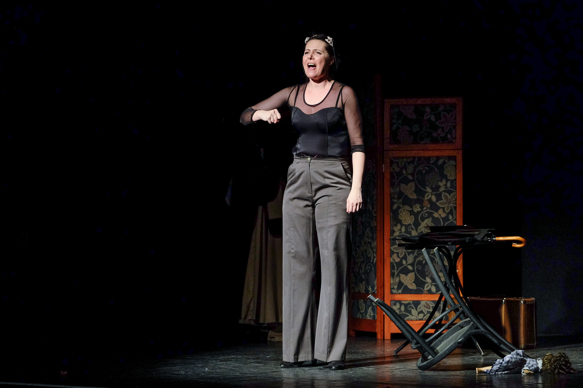 Merthogy nem a telóját nyomkodó nemzedék, az biztos. De még a miénk sem. A rengeteg manír és közhely (hogy közhelyesen fogalmazzunk), a nagy múltú, mára viszont kikopott színpadi megoldások (a kellemetlen tartalmú iratot megeszik, a dugót a fogaival húzza ki a nő az üvegből, a széket felrúgja, amikor dühös, az utazást pedig azzal jelzi, hogy egy lavórban vízre bocsát egy kis papírhajót) és a ripacskodás (a zongorista, Szép András remekül ért a hangszeréhez, de sajnos néha felállítják, és belekomponálják a szöveges részbe) már az elején kimondatta velünk, hogy nem, ez sajnos nem a mi műfajunk. Ettől függetlenül a jeleneteken jól mulató diákok gyűrűjében nem lehetett nem élvezni a látottakat.