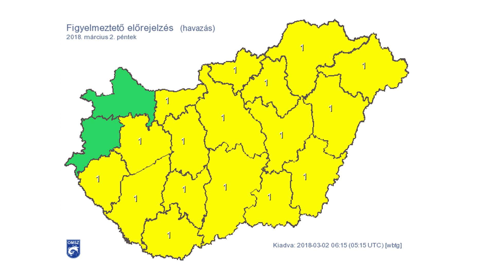 Ma éjfélig várhatóan az ország nagyobb részén 5 cm körüli vagy afeletti hó hullhat. Az ország délkeleti, déli megyéiben 10-15 cm feletti hómennyiség is eshet.