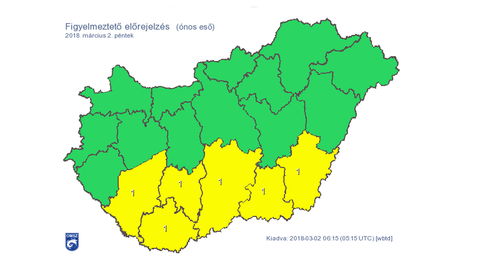 Délnyugaton, délen – bizonytalan módon – a havazást időszakosan fagyott eső, helyenként ónos eső válthatja fel. A nap első felében a havazás mellett általában inkább fagyott esőnek, a nap második felében inkább ónos esőnek van nagyobb valószínűsége – írja a met.hu.