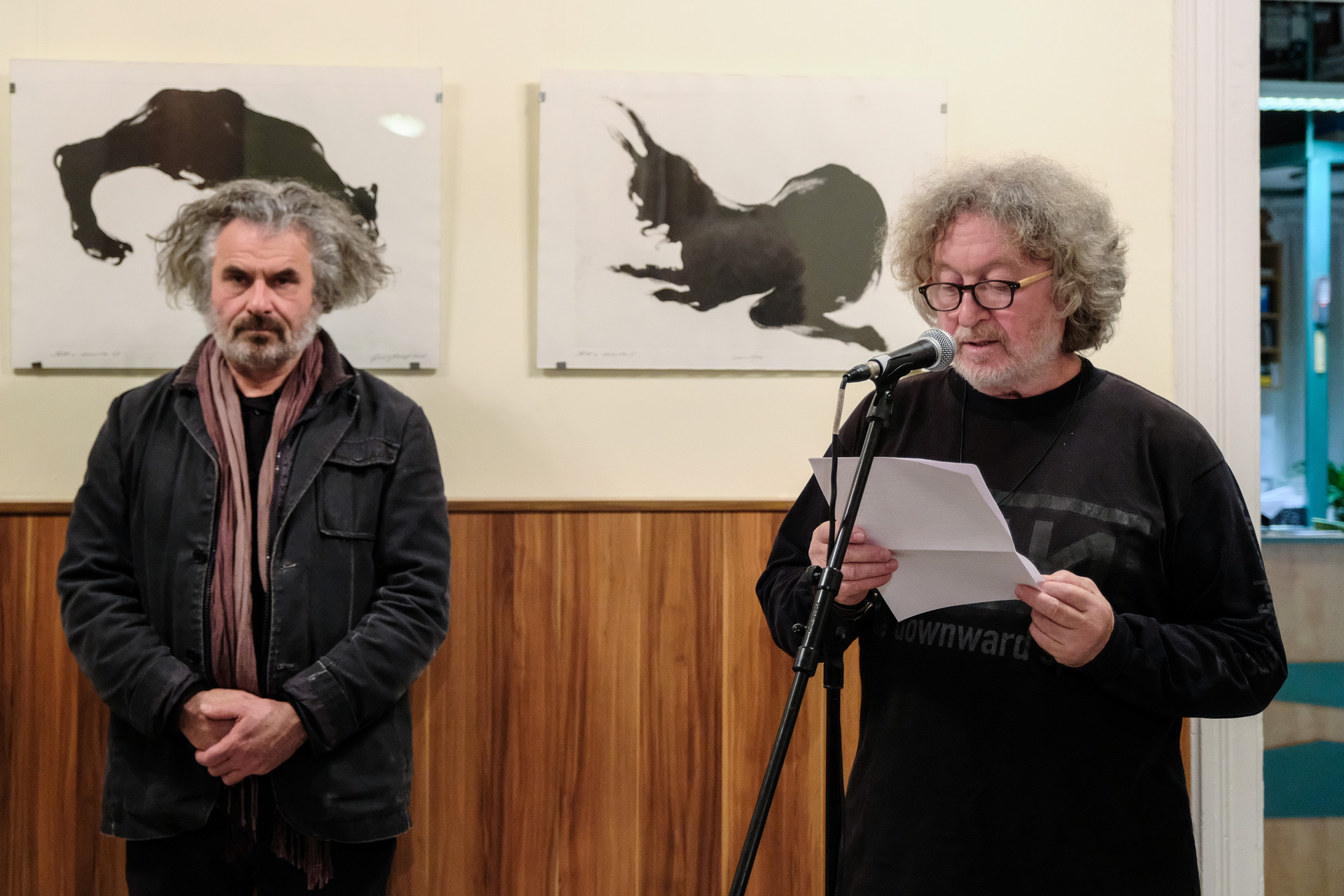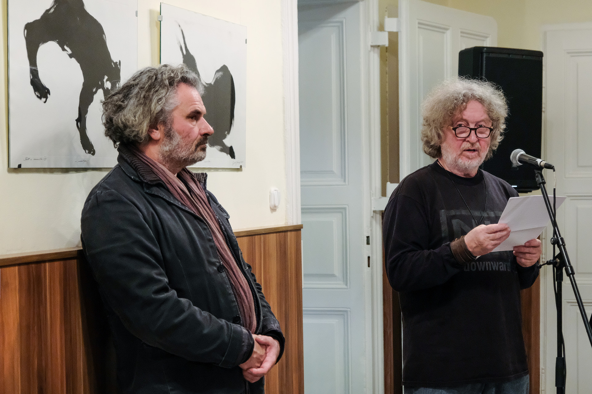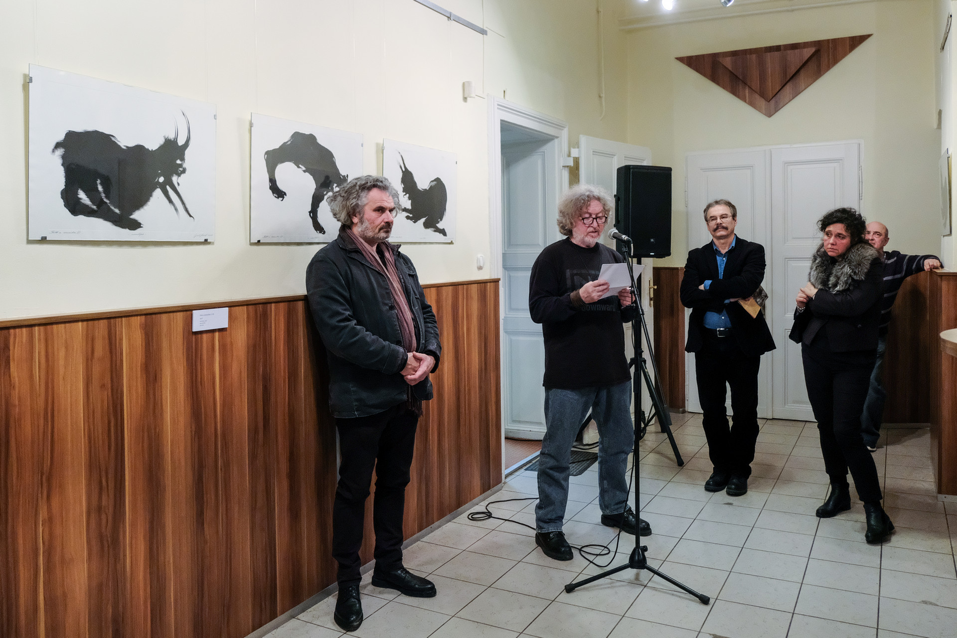 A Munkácsy-díjas alkotó a maga során megköszönte a lehetőséget, hogy munkáit Gyulára is elhozhatta, majd kiemelte, ebben a konstellációban, amely egy teljesen új párbeszédet jelent, még nem mutathatta be képeit.