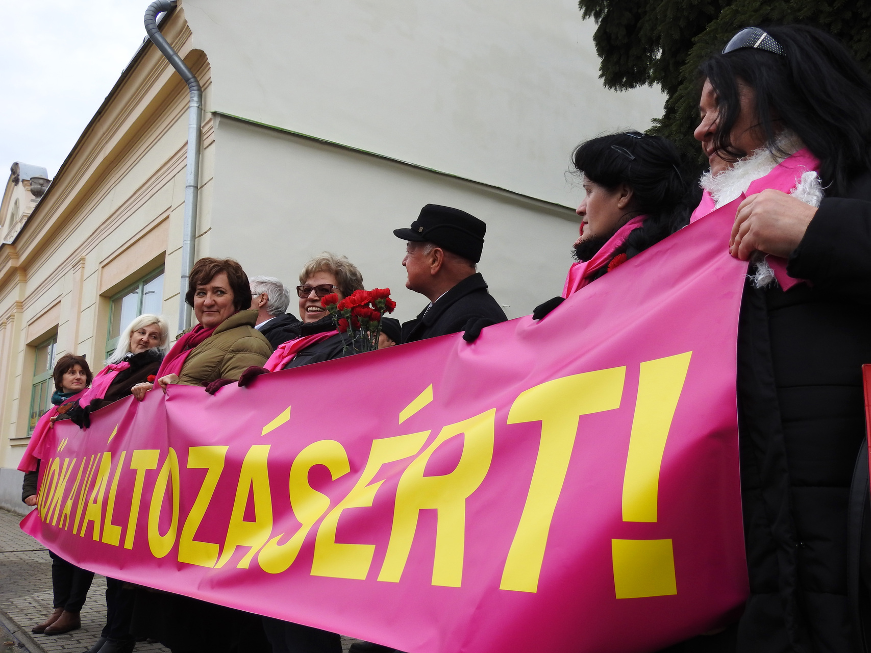A résztvevők megkoszorúzták Pfiffner Paulina emléktábláját, majd rózsaszín sálban, Nők a változásért! felirattal a kezükben vonultak fel a belvárosban, ahol szegfűt osztottak a járókelőknek a holnapi nőnap alkalmából. A demonstrációval arra biztatták a nőket, hogy menjenek el szavazni.