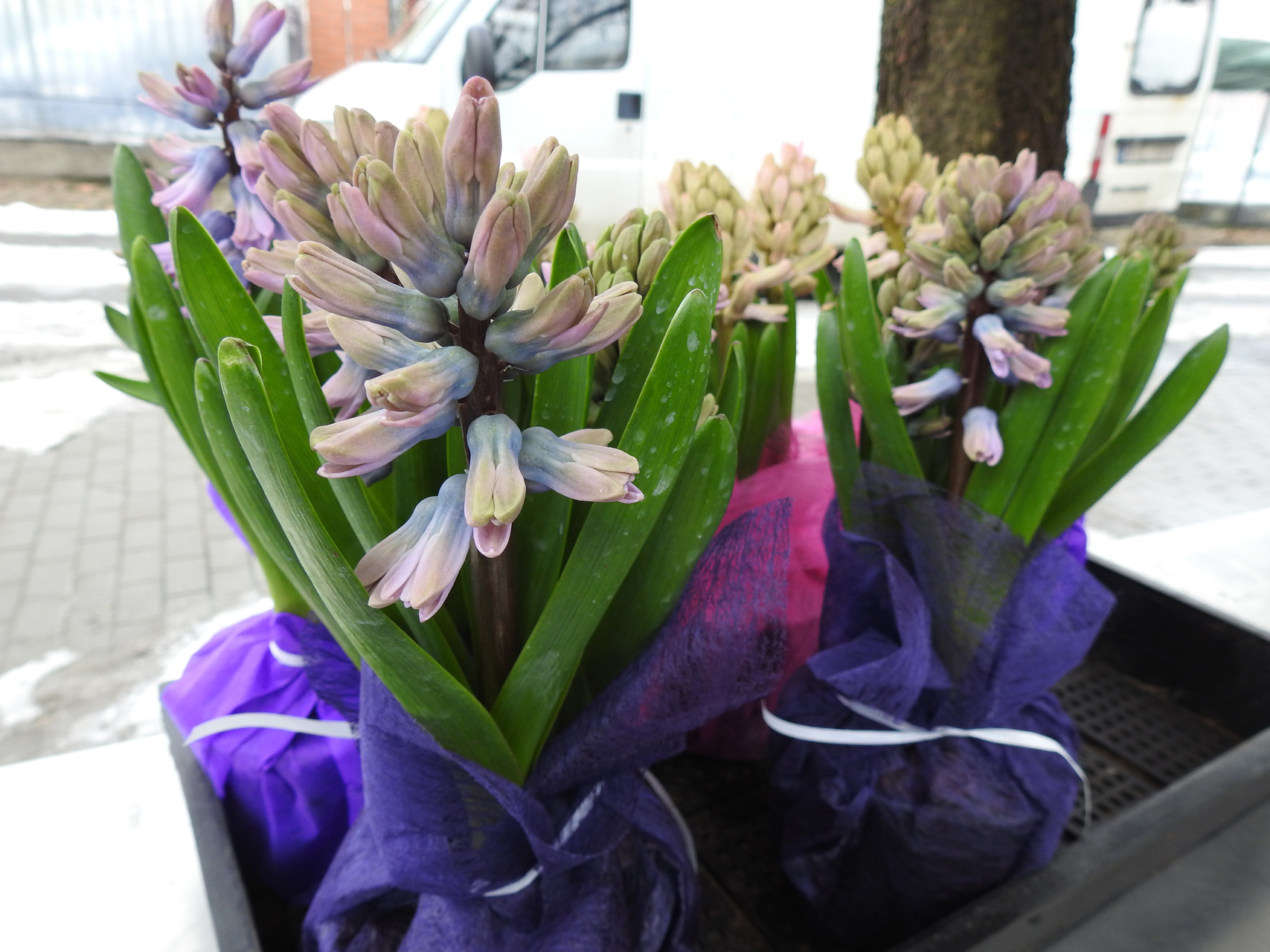 A primula, a százszorszép és a viola néhány hét óta kapható az elárusítóasztaloknál, a jácint azonban múlt héten jelent meg először a piacon. Előbbieket ottjártunkkor 250–300 forintért kínálták, utóbbi pedig – a virághagymák számától függően – 500–750 forintba került díszcsomagolásban. A több tavaszi virágból összeállított cserepes kompozíciókat 1000–1700 forintért árulták.