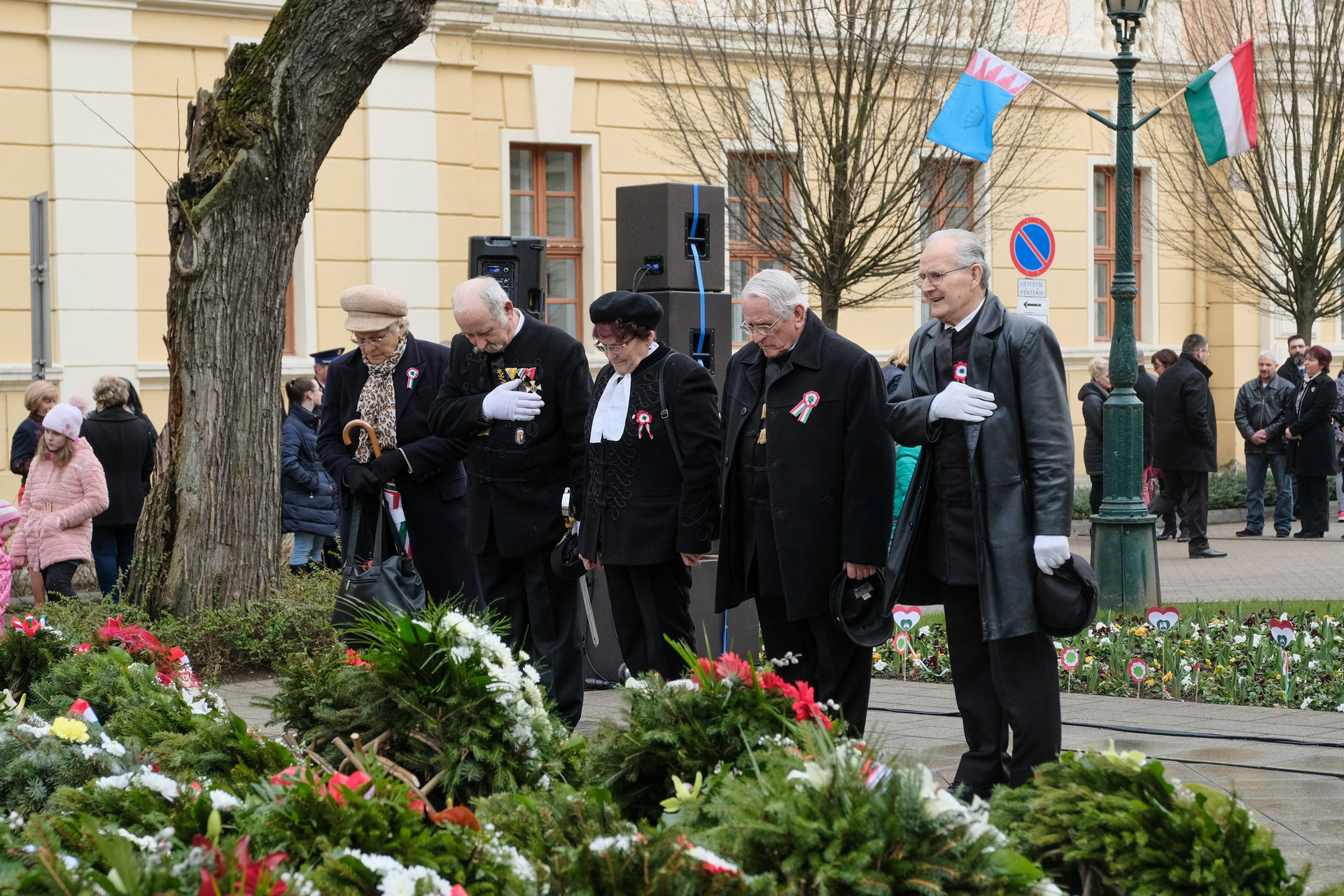 A beszéd után a Kormorán együttes és Kőszegi Ákos Jászai Mari-díjas színművész adott ünnepi műsort az egybegyűlteknek, majd Görgényi Ernő polgármester egy oklevelet adott át a zenekarnak, amelyet testvérvárosunknak, Aradnak címeztek. Az ünnepség a koszorúk elhelyezésével és a Szózat közös eléneklésével zárult.