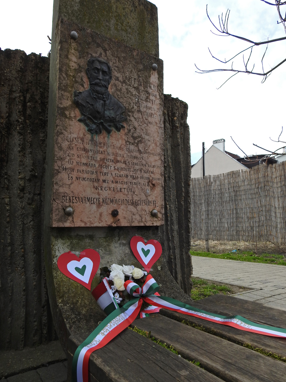 Az elnök beszédében emlékeztetett rá: a civil szervezet idén negyedik alkalommal szervezett koszorúzást a Pálffy utcai emléktáblánál. Felidézte, a Márczius Tizenötödike című lap kiadója és szerkesztője, Petőfi Sándor jó barátja 1820-ban született Gyulán, a család háza a mai Ewoldt Eliz óvoda helyén állt.