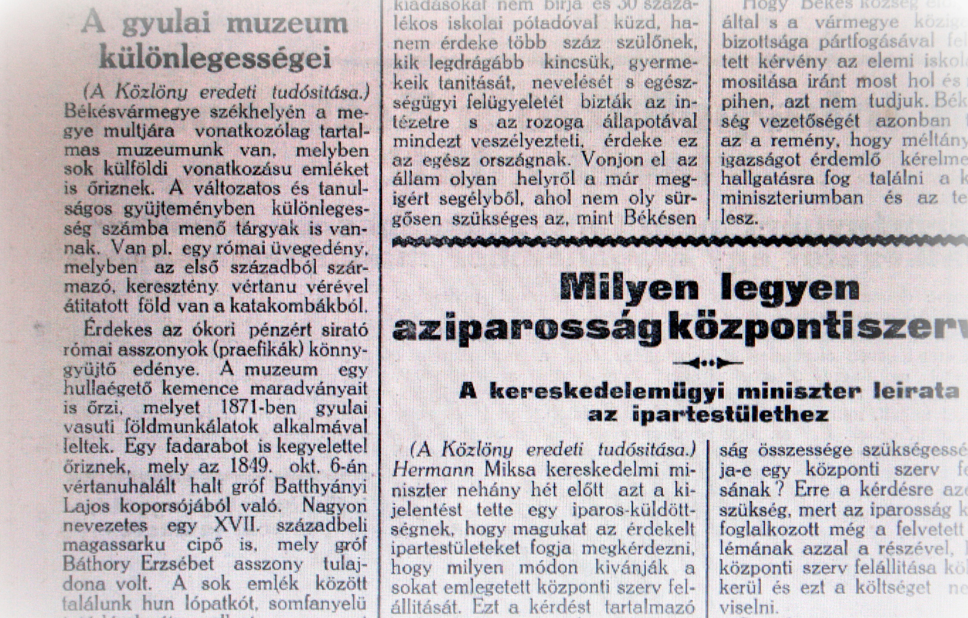 Nemzeti ünnepünk és a gyulai múzeum megalapításának 150. évfordulója alkalmából visszamentünk néhány évtizedet az időben, és beleolvastunk a régmúlt idők hírlapjaiba és levéltári anyagába. Ezt most néhány szóban foglaljuk össze.